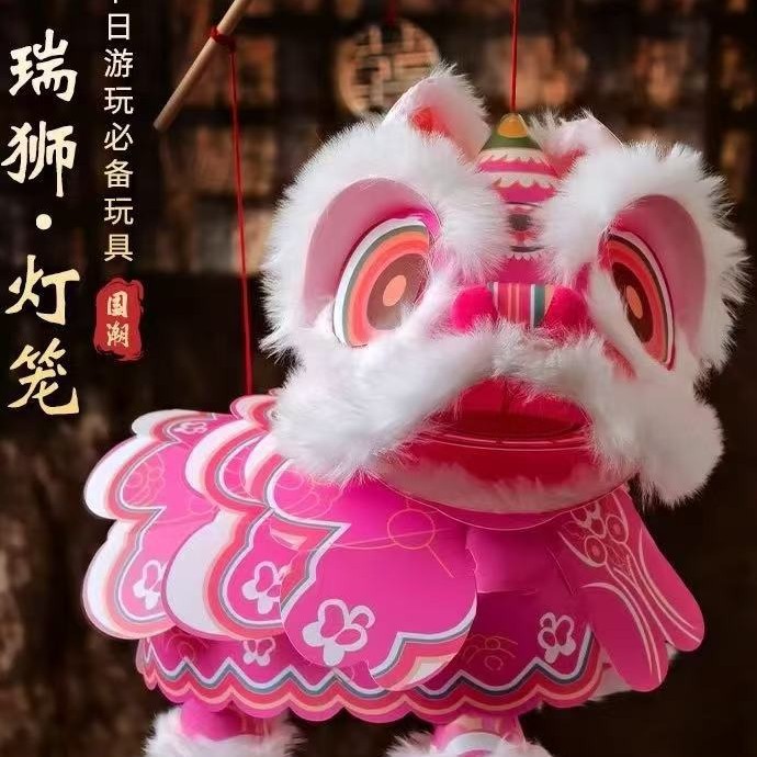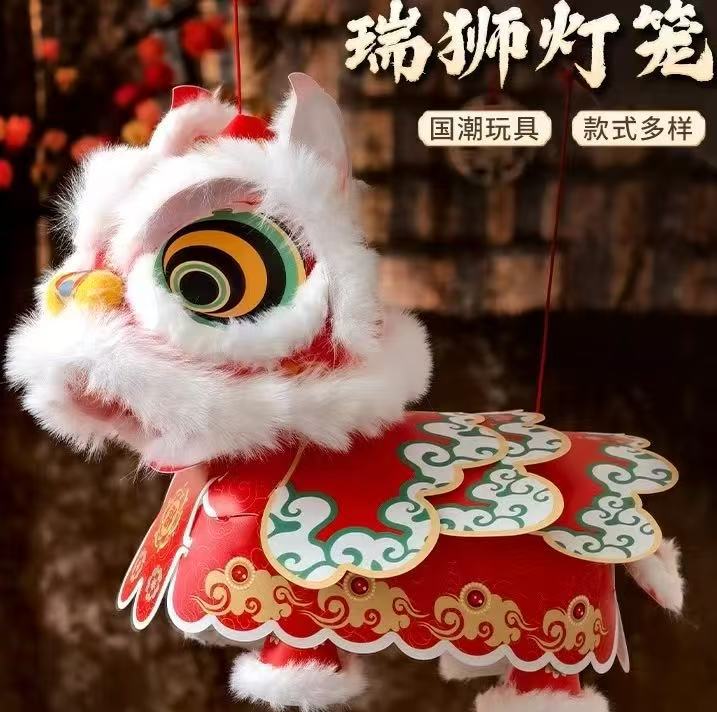 新春马年瑞宝醒狮灯笼手工DIY材料幼儿园古风花灯舞狮手提玩偶
