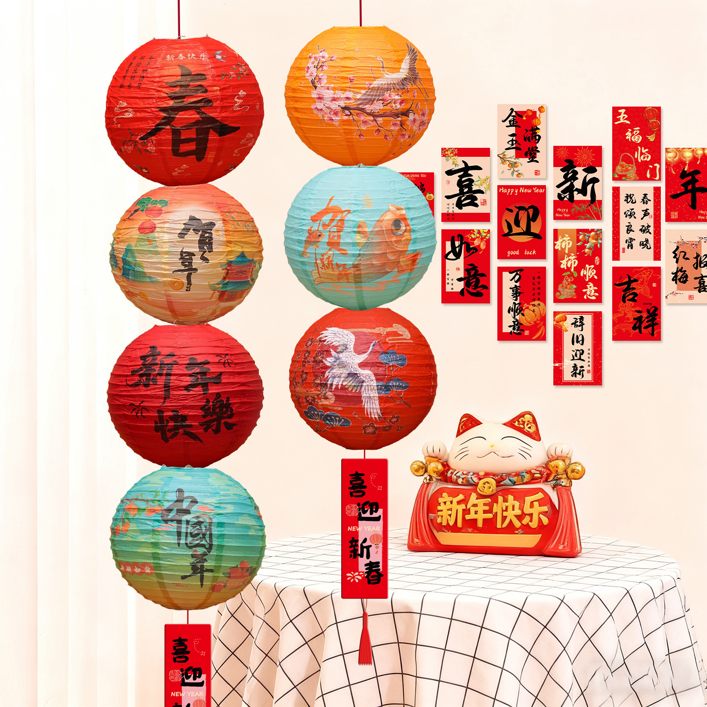 新年景区户外装饰国风福字灯笼春节过年学校场景氛围布置印花灯笼