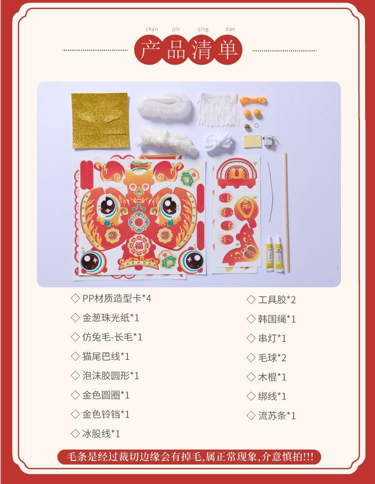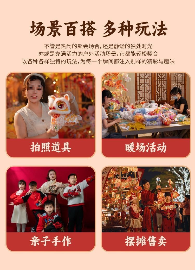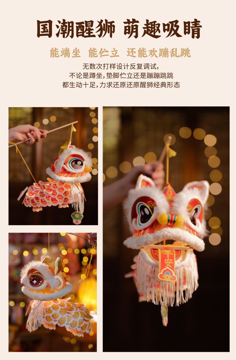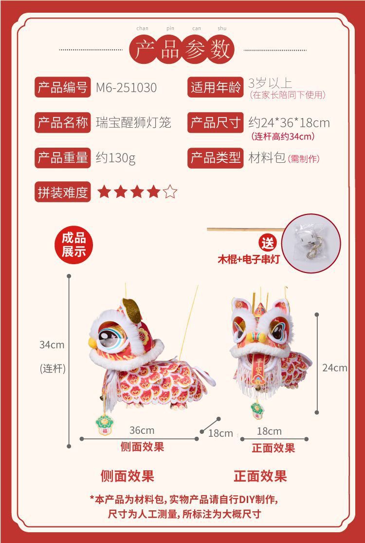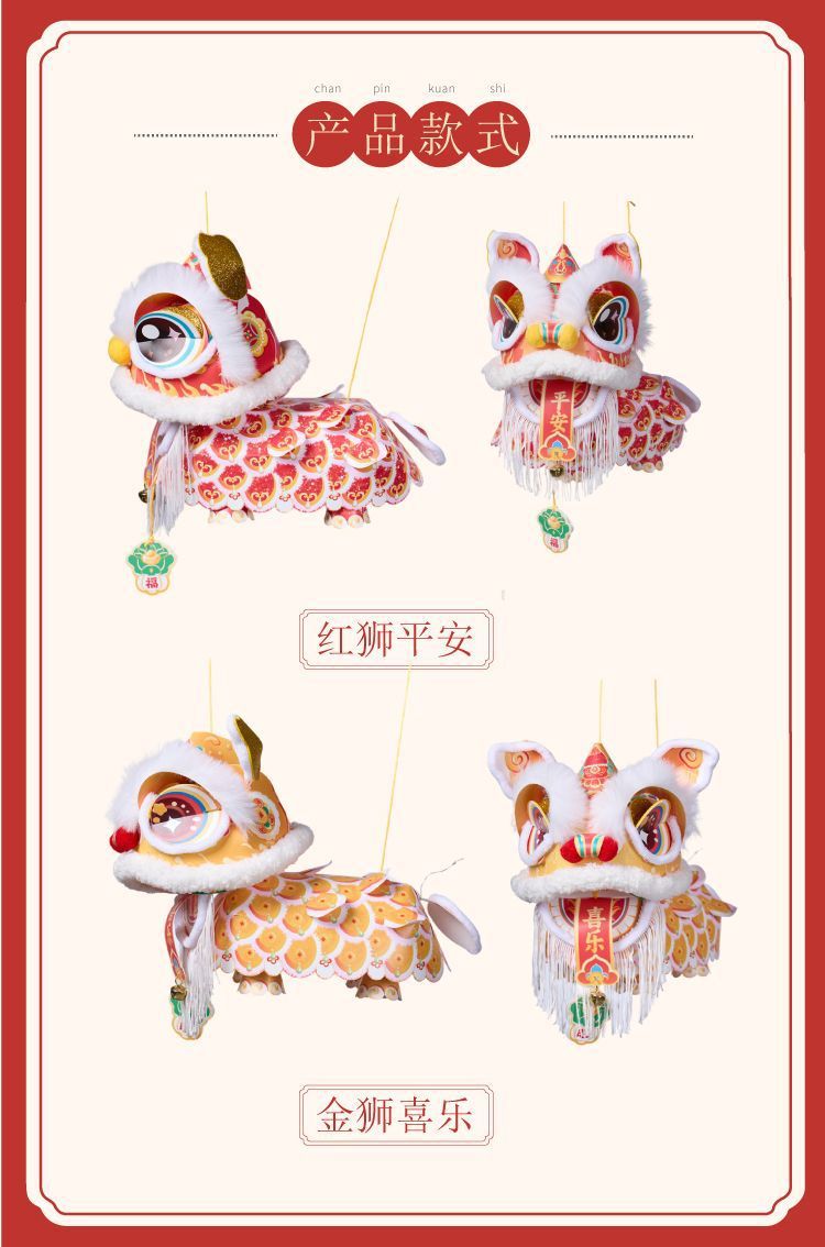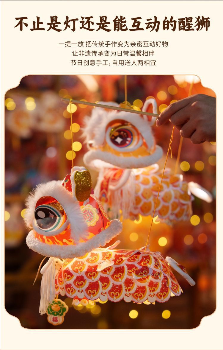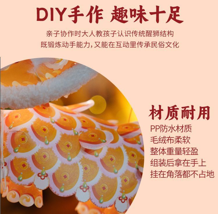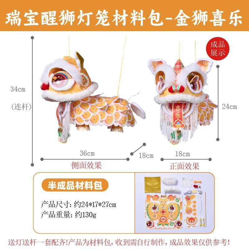 2026新款新年元旦瑞宝醒狮灯笼手工diy儿童制作材料古风狮子花灯