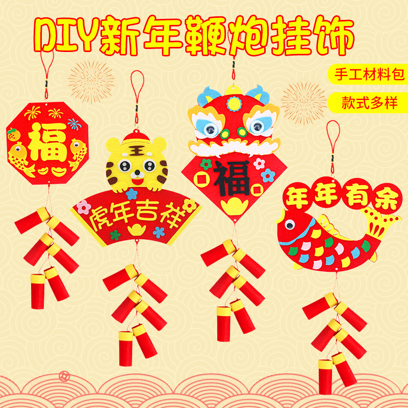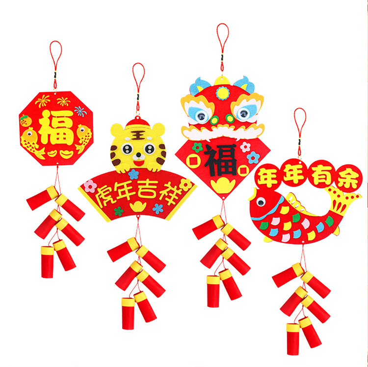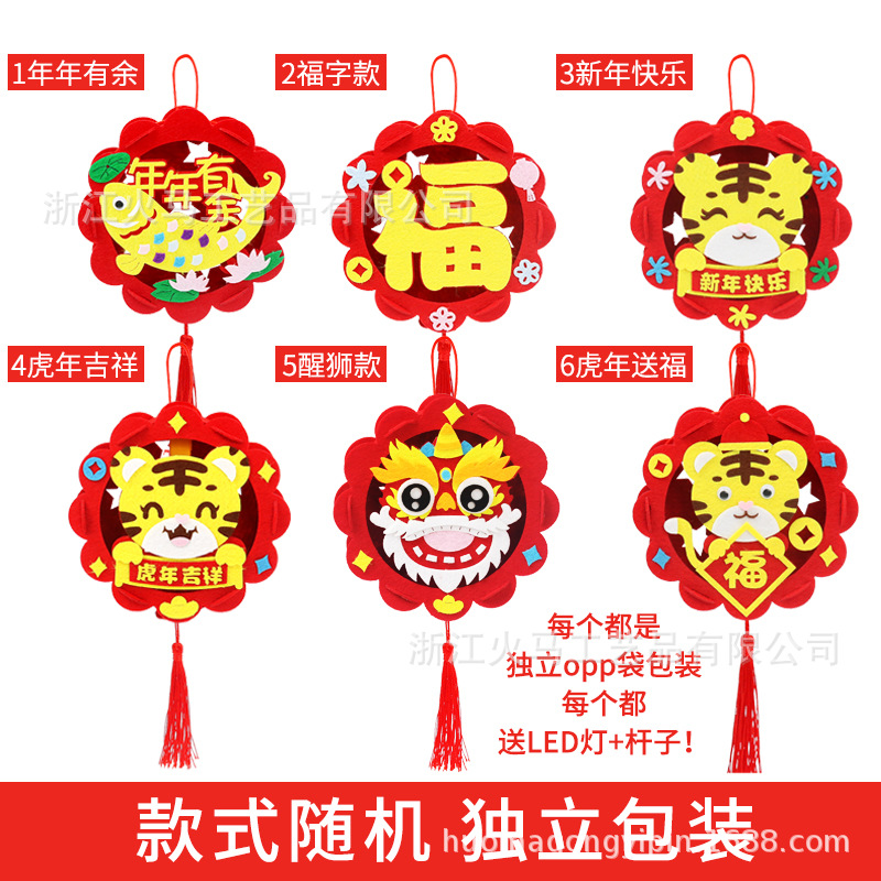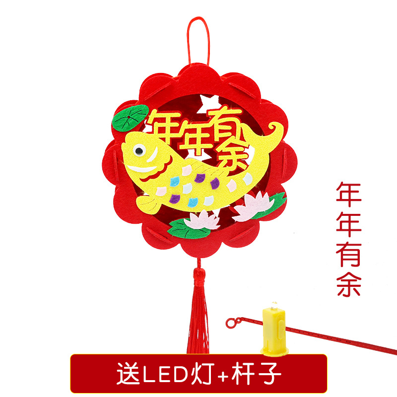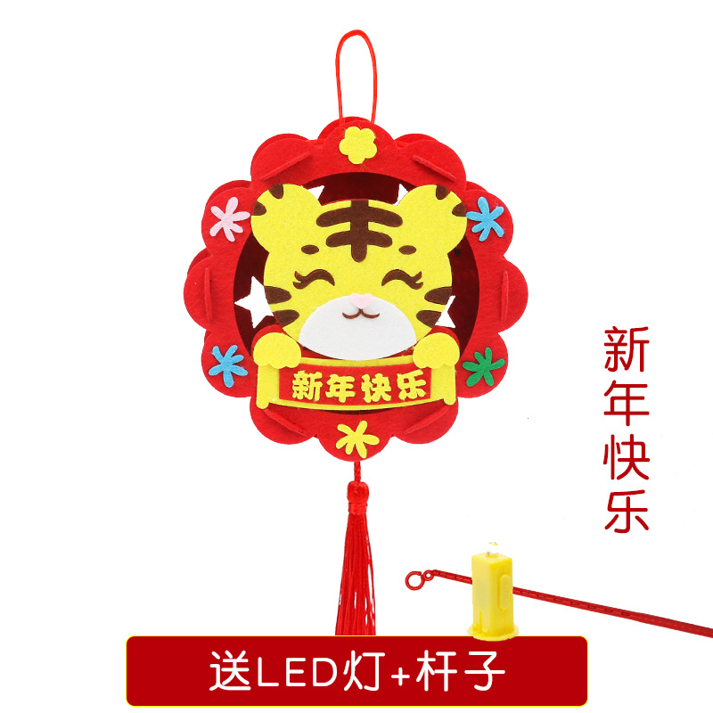 新年儿童卡通春节灯笼diy手工过年幼儿园元旦手提灯笼批发光花灯