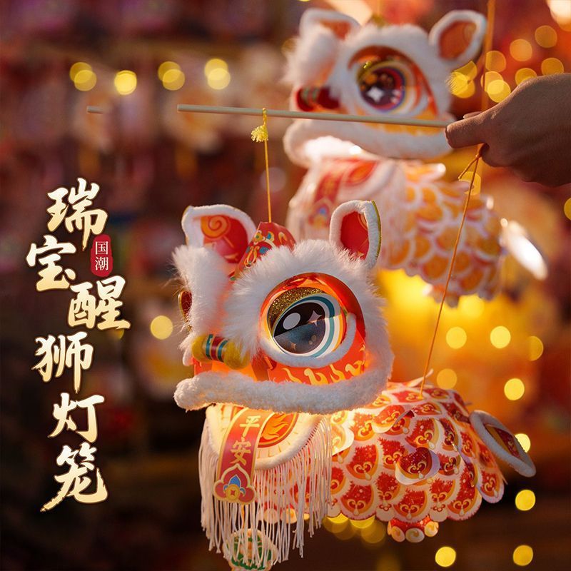 10个新款春节手工儿童发光花灯材料醒狮手提灯笼舞狮冬瓜形简约风