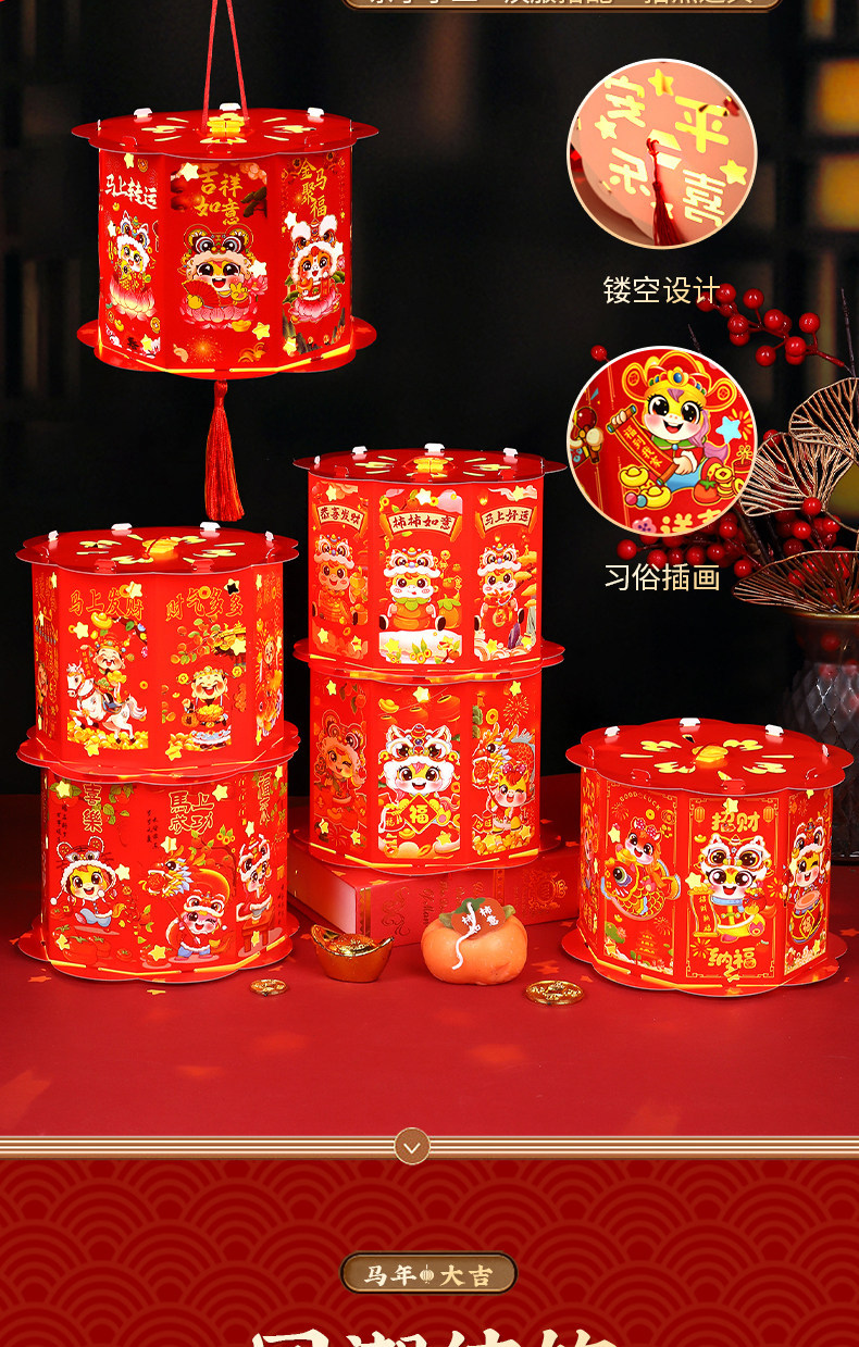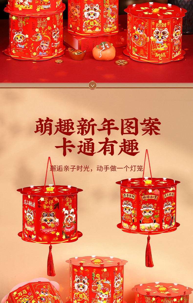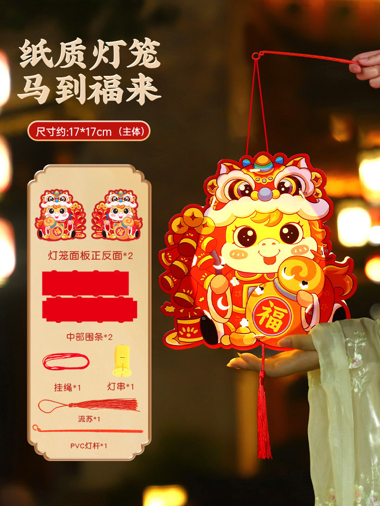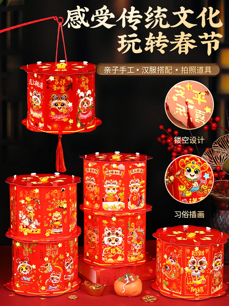 新年灯笼手工diy材料包儿童手提发光2026新款走马灯挂饰马年春节