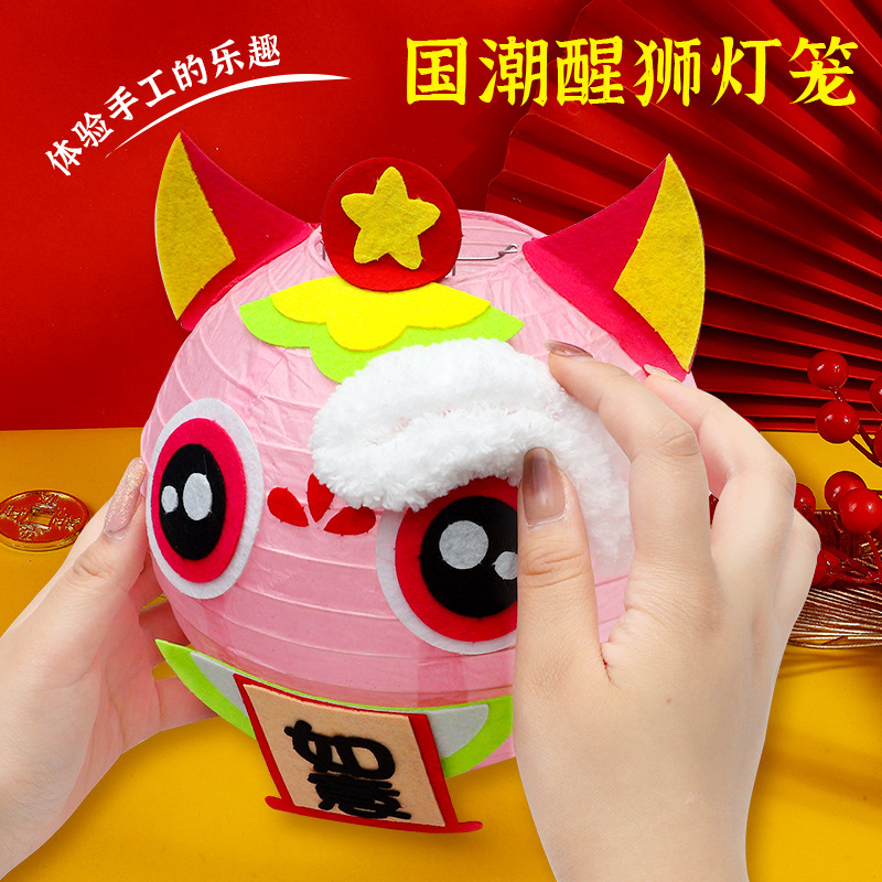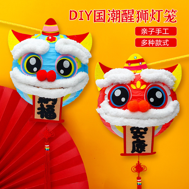 龙年灯笼diy手工材料包醒狮制作幼儿园元旦节儿童手提小花灯自制