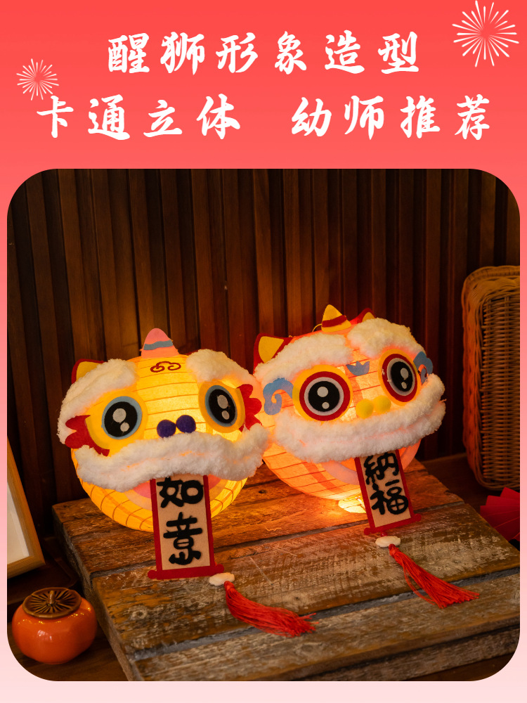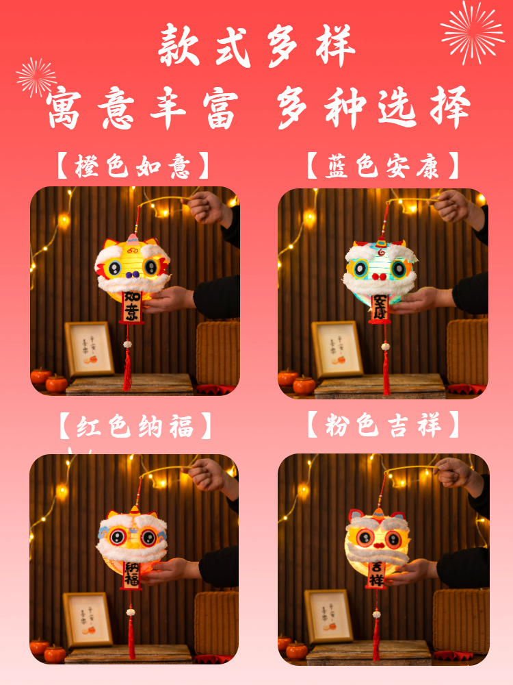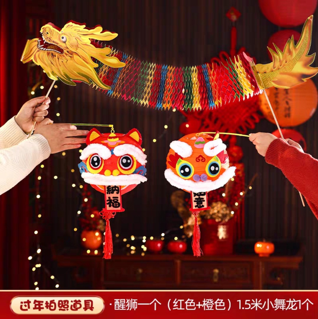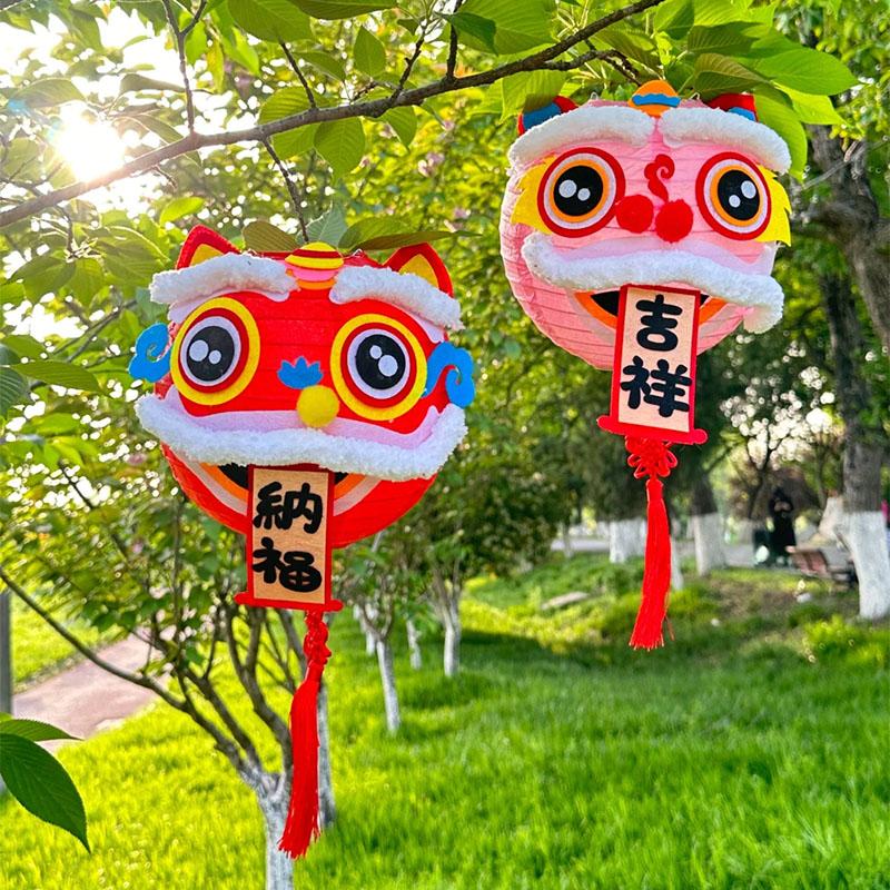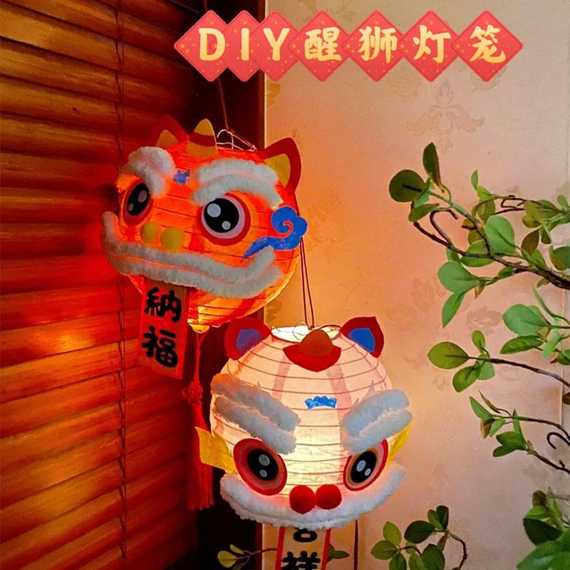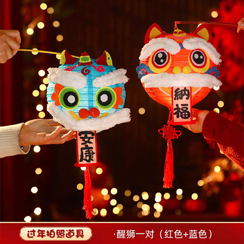 6新年新小灯笼手diy马年照道具醒狮儿童手提装饰氛围纸冬瓜形其他