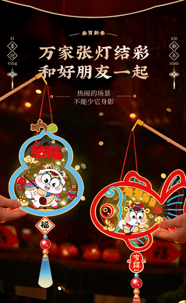 2026新年灯笼儿童手提花灯元宵新年发光diy灯笼新款透明发光灯笼