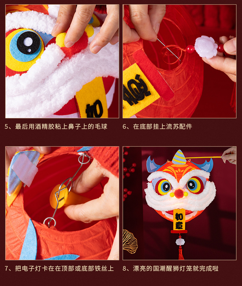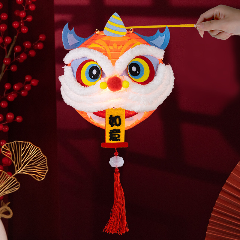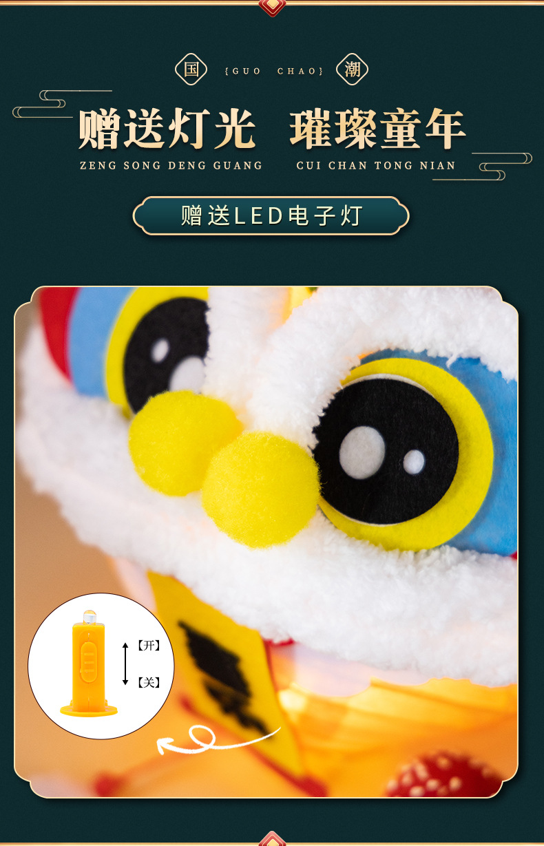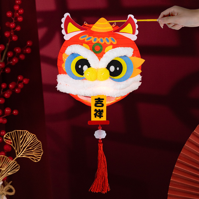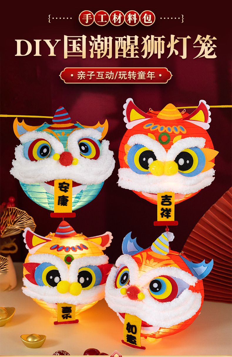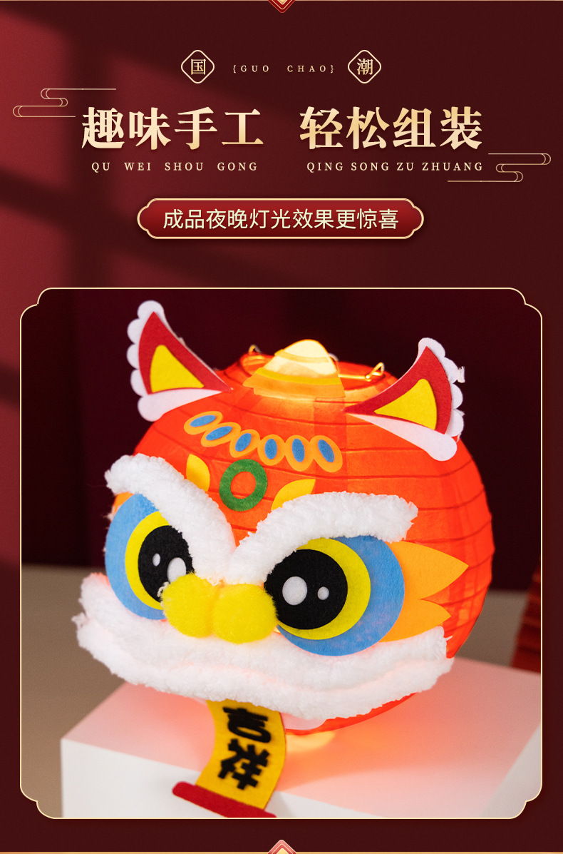 春节醒狮灯笼diy制作材料儿童创意亲子手工新年发光舞狮灯笼