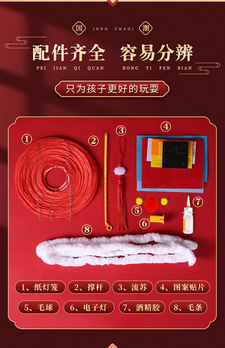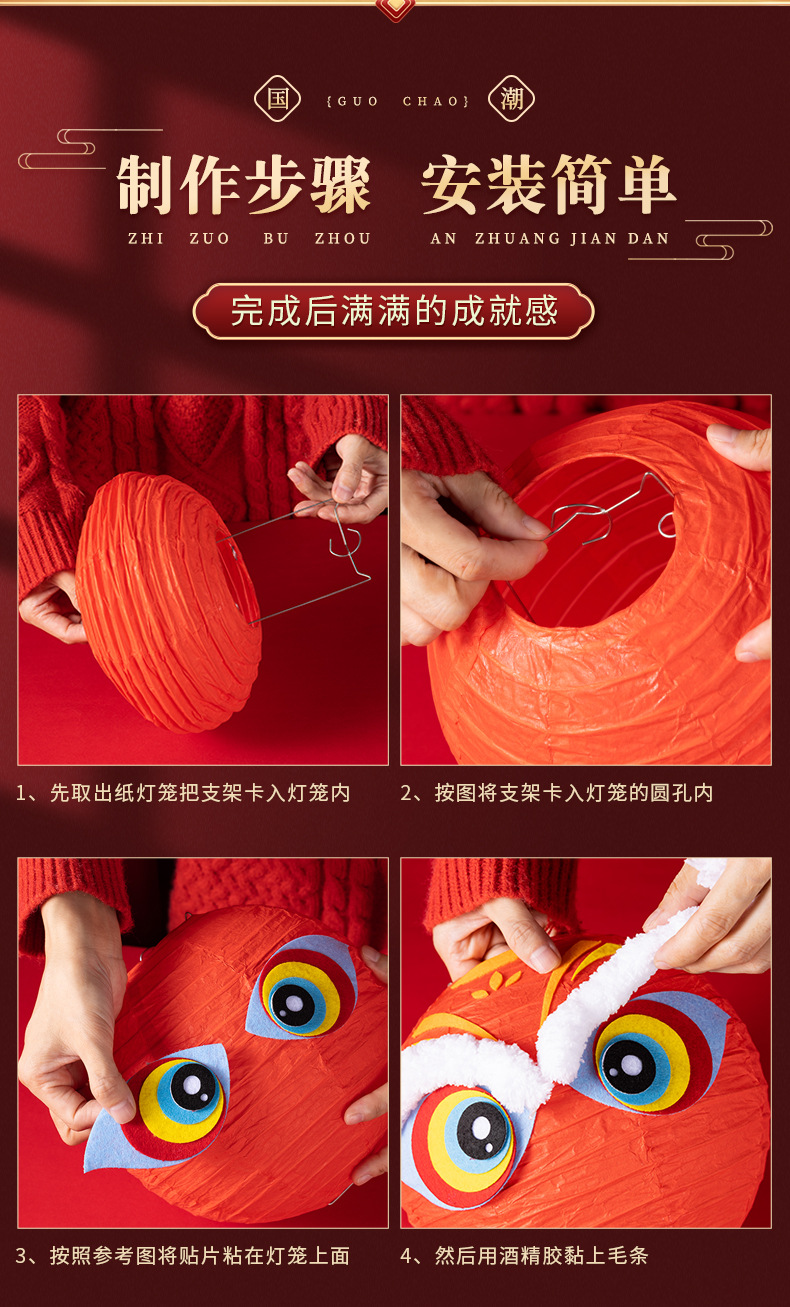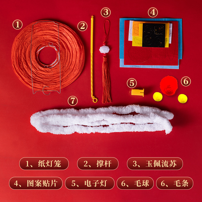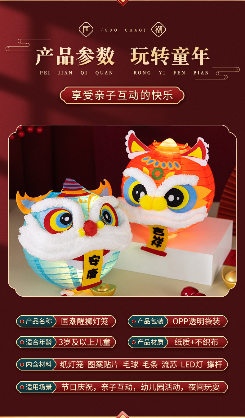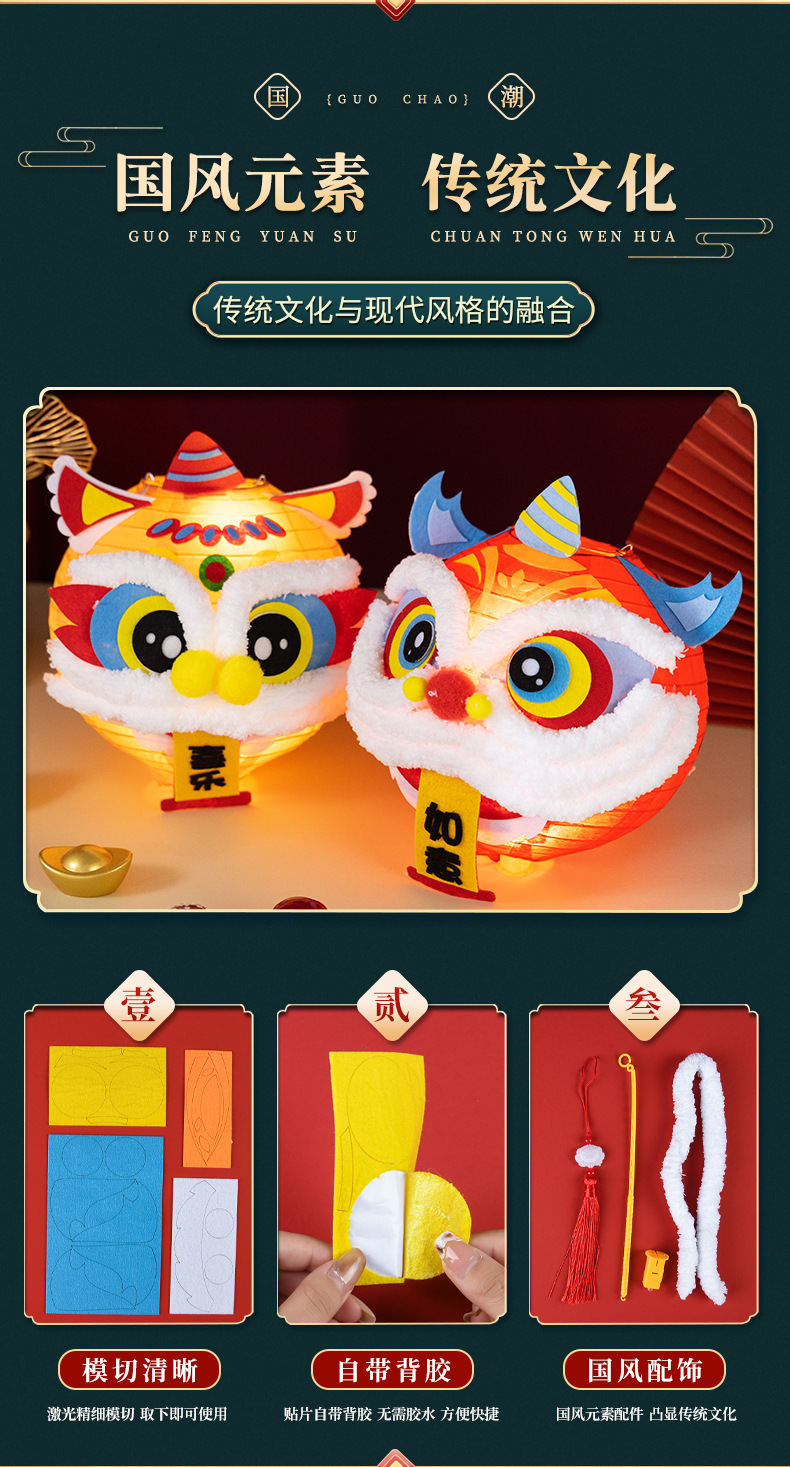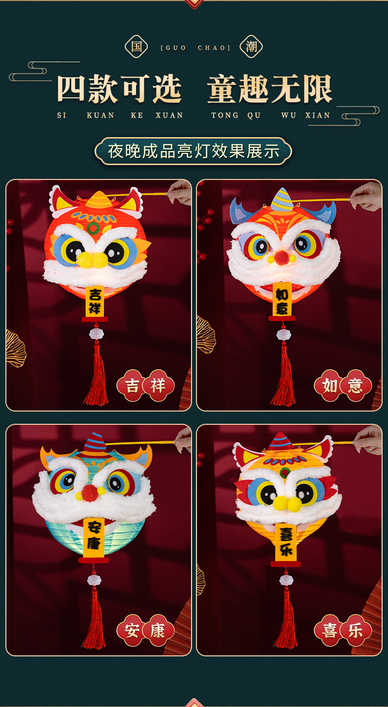 春节醒狮灯笼diy制作材料儿童创意亲子手工新年发光舞狮灯笼