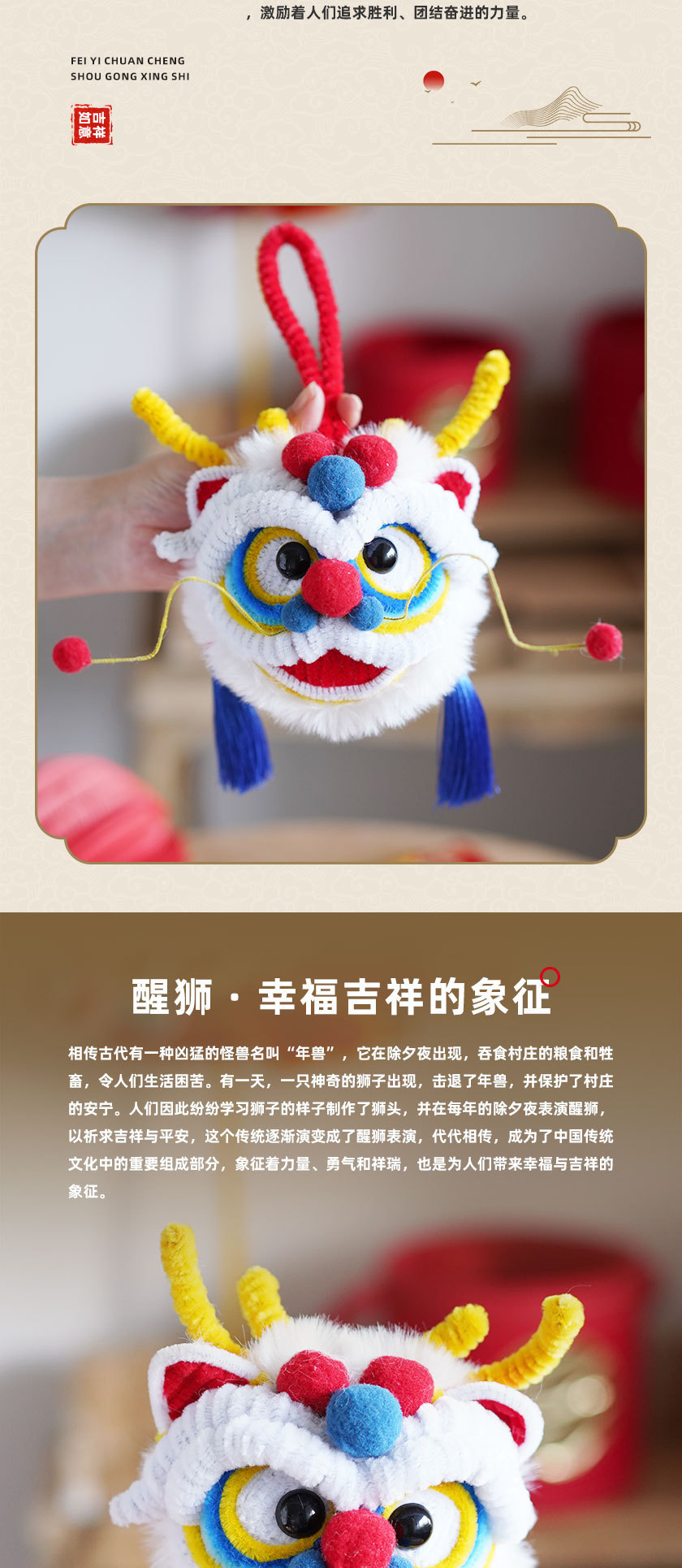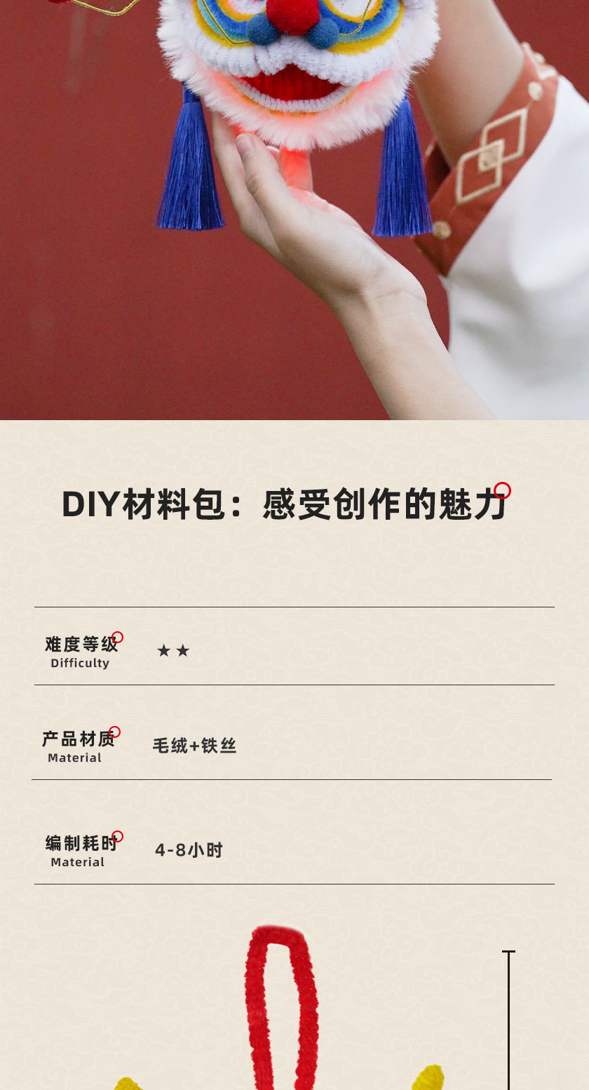 扭扭棒醒狮灯diy材料包手工自制手提灯笼新年礼物摆件