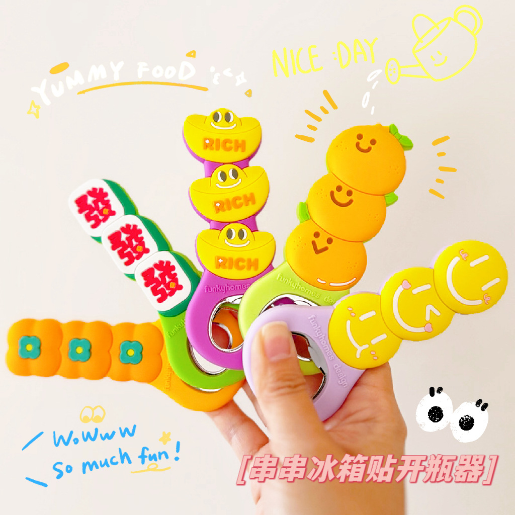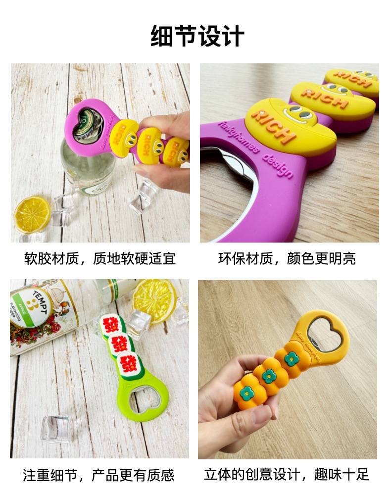 硅胶软胶冰箱贴啤酒开瓶器两用新年好物厨房磁力如意元宝发财跨境