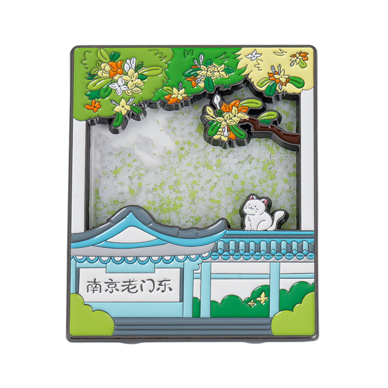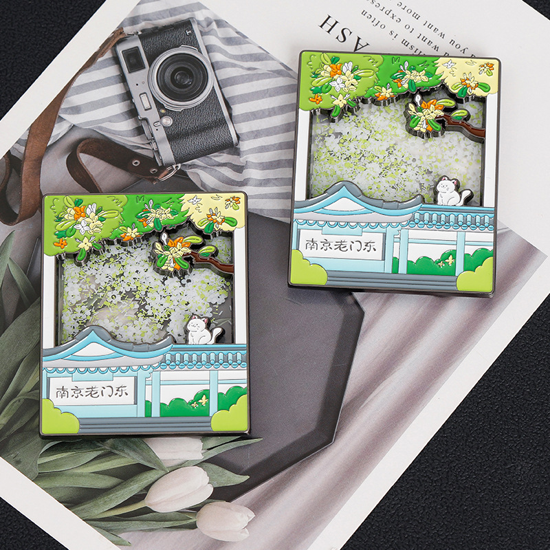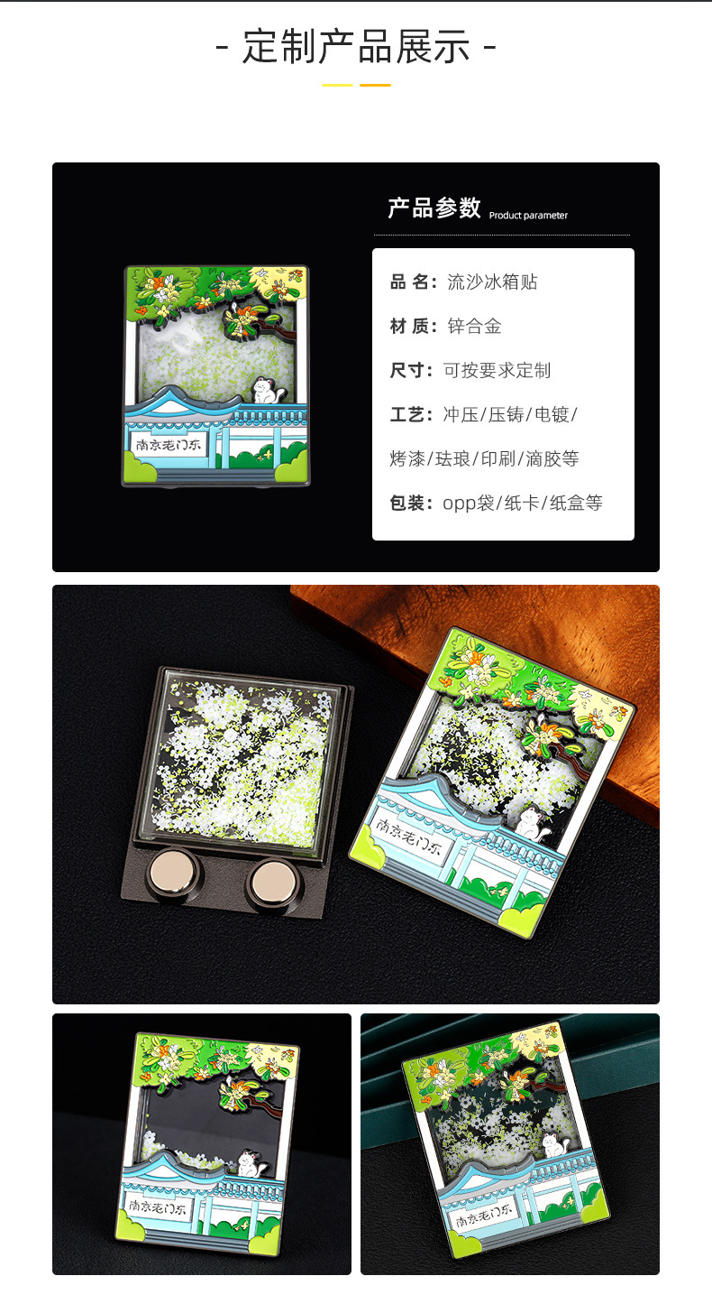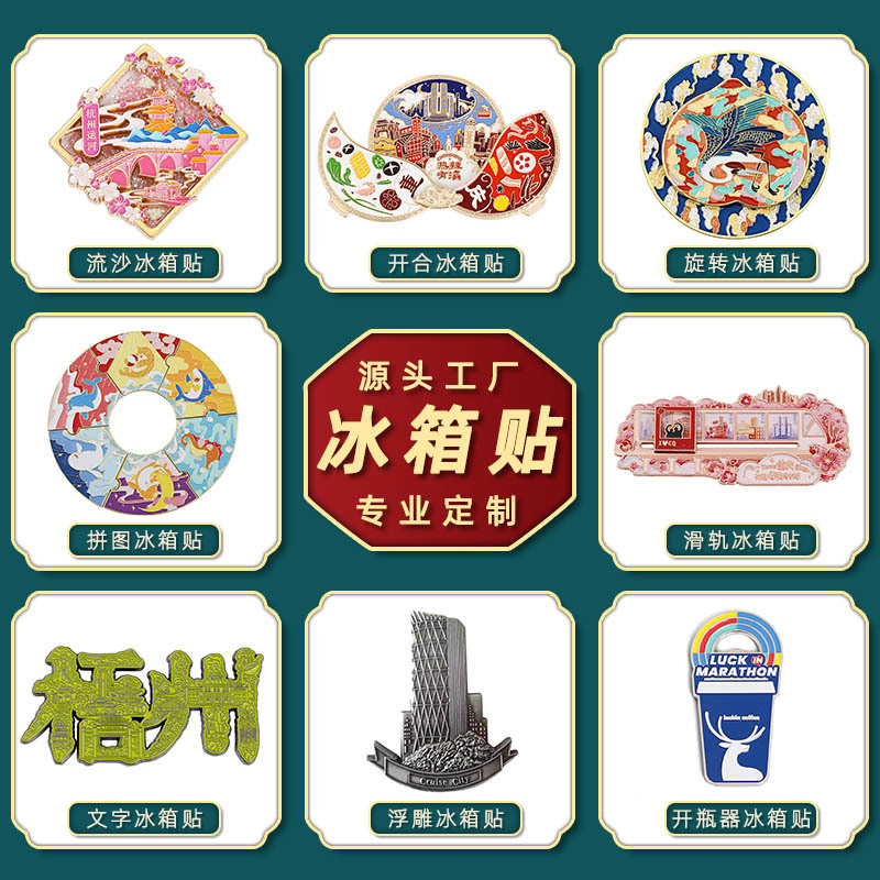 金属流沙冰箱贴定制城市地标烤漆浮雕冰箱贴定做景区旅游文创礼品