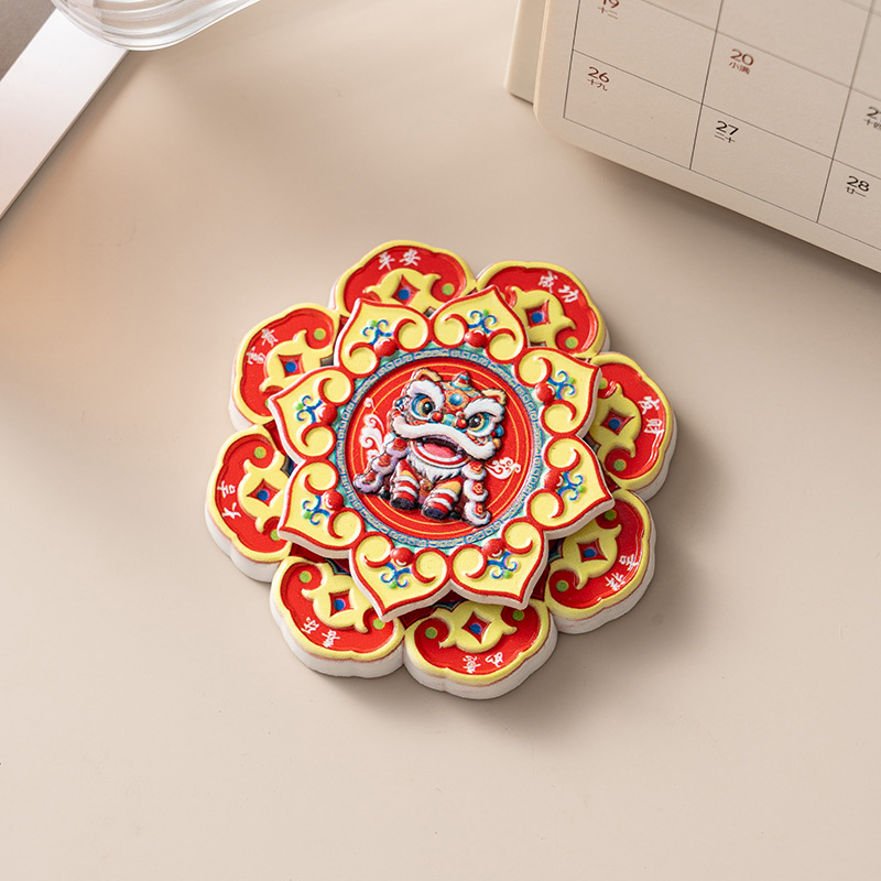 旋转马年冰箱贴可爱国潮新年卡通醒狮磁吸贴创意立体财神爷磁力贴