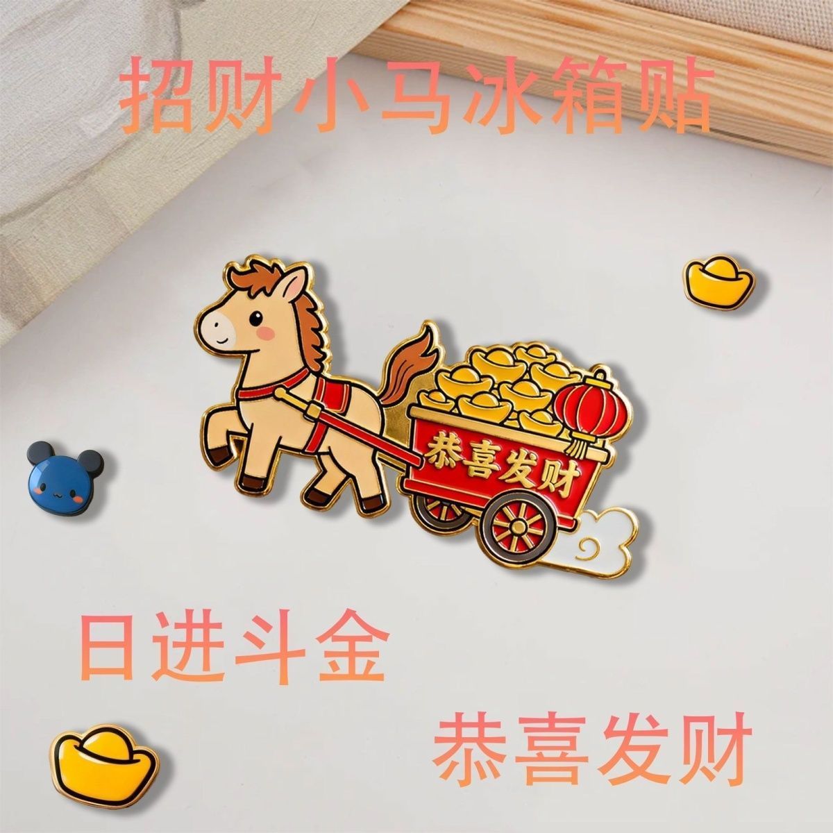 马年本命年创意可爱新年喜庆磁吸冰箱贴4cm亚克力磁力贴DIY饰品
