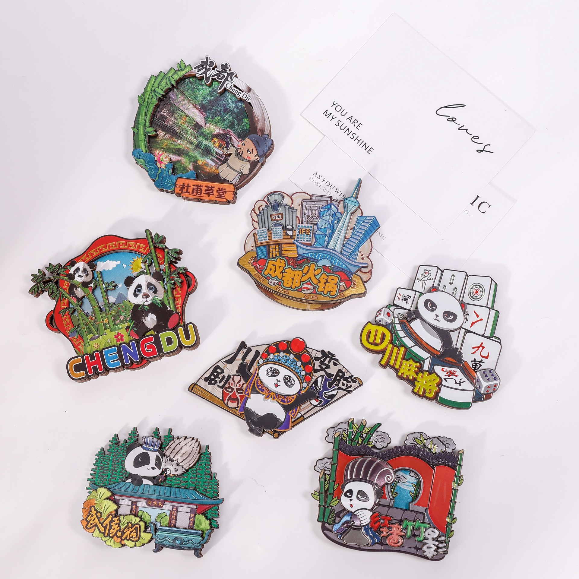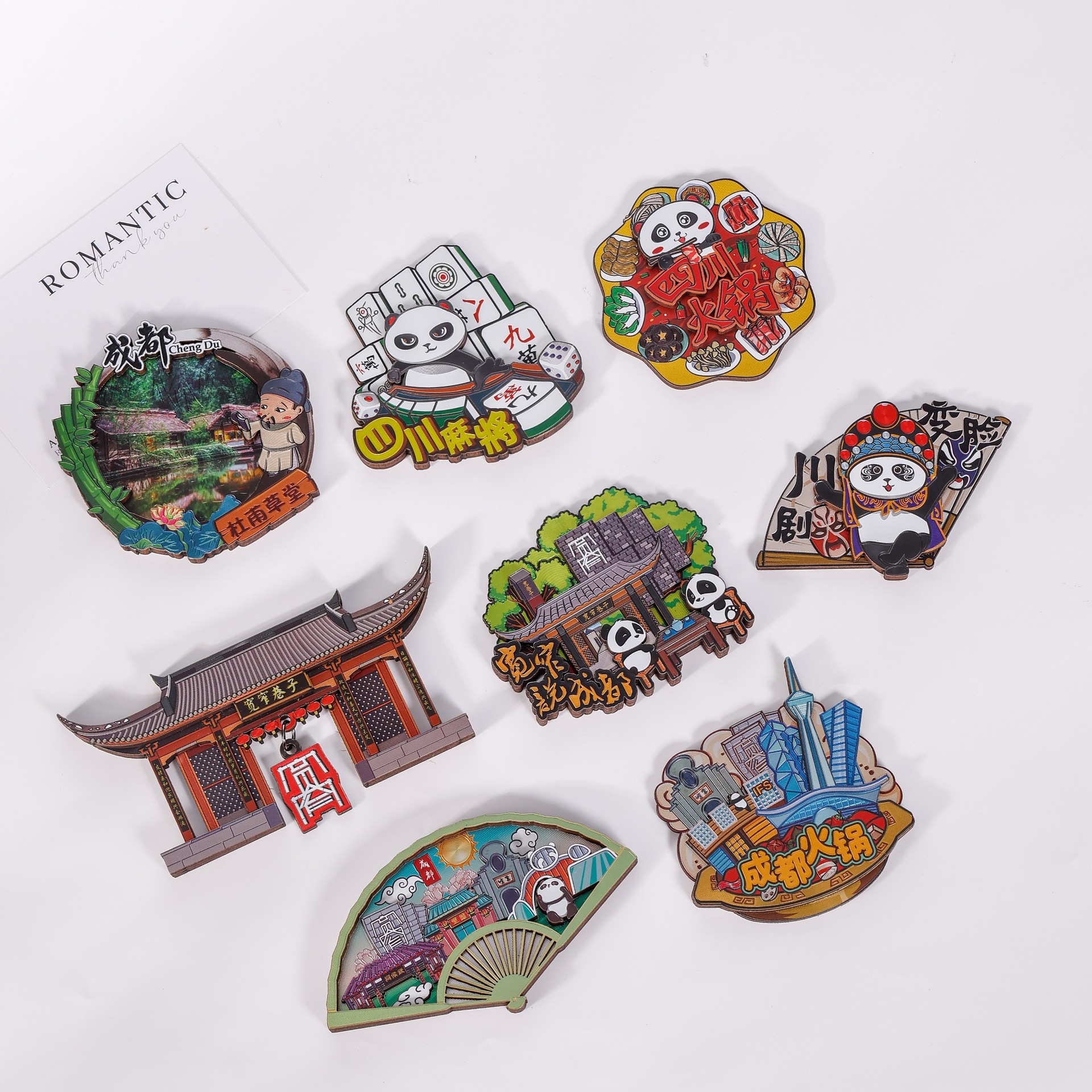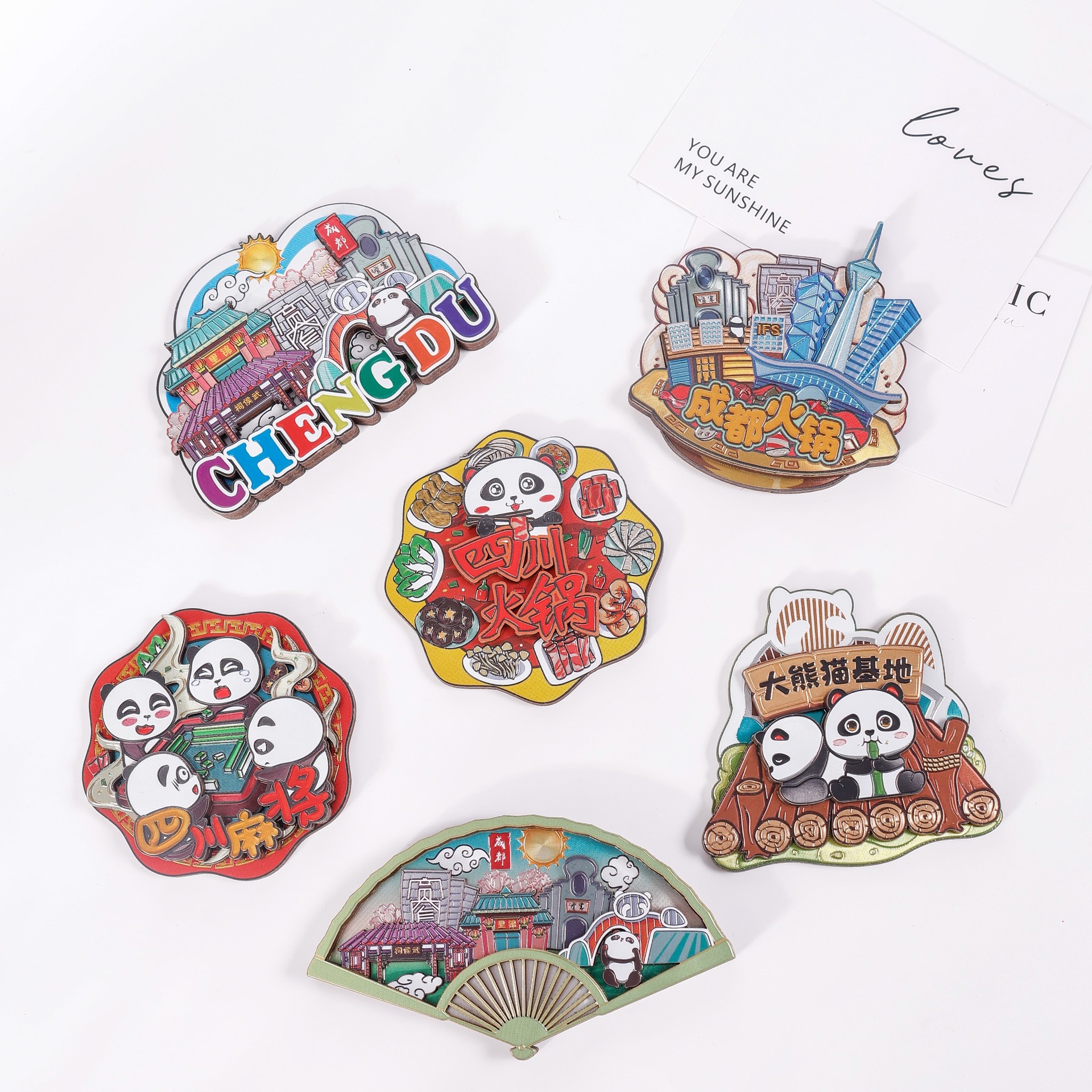木质银箔成都文化元素冰箱贴卡通熊猫伴手礼成都城市旅行纪念品