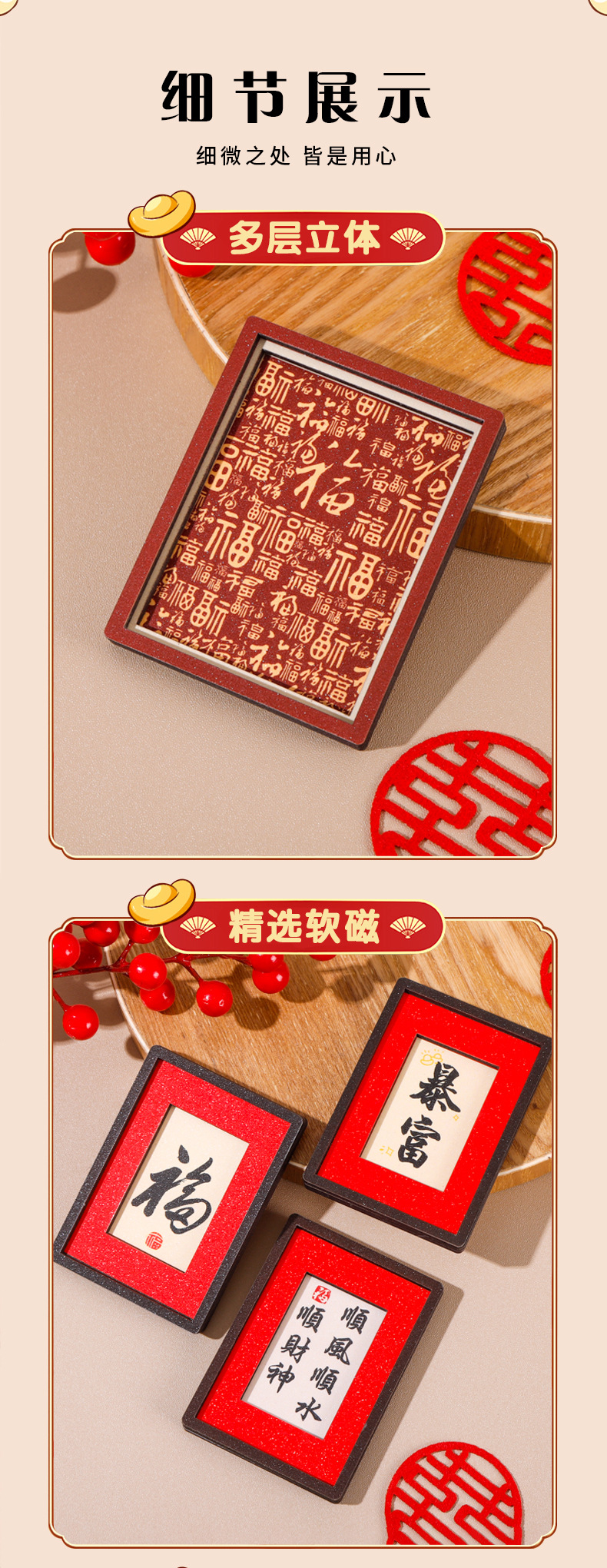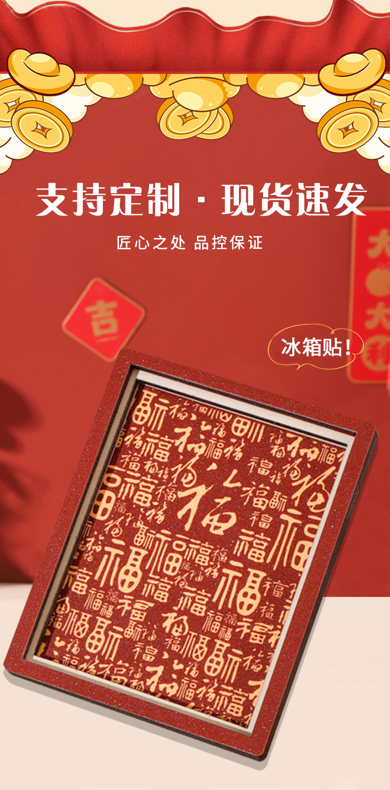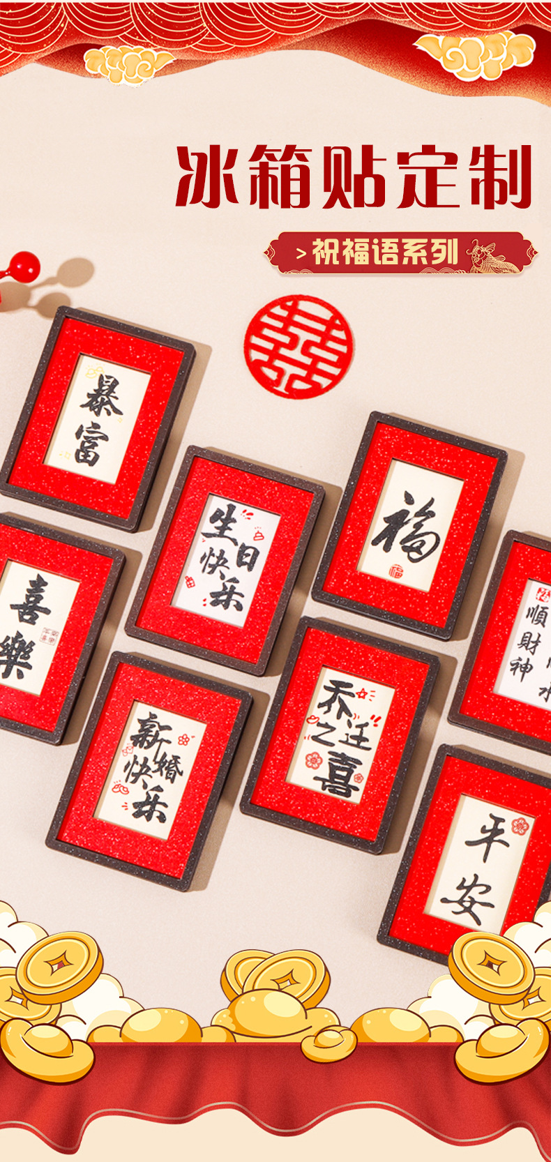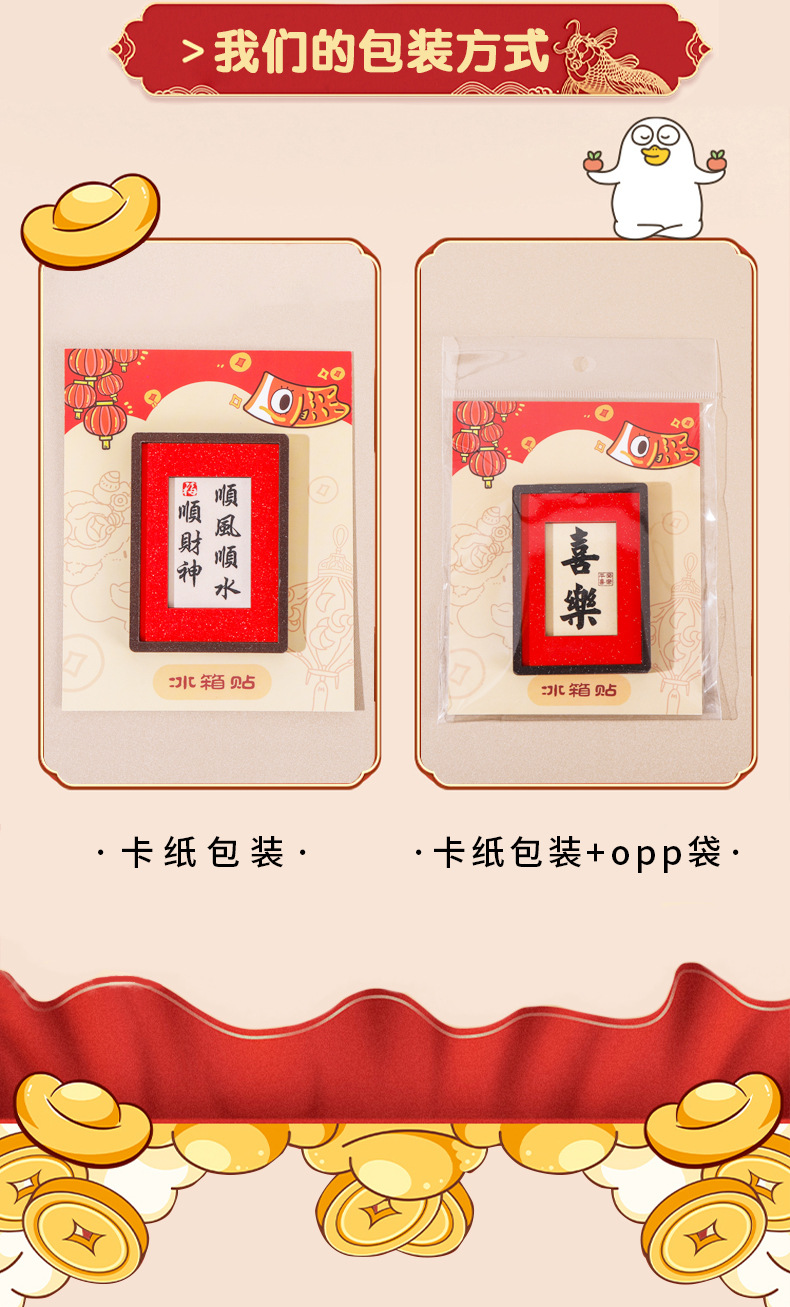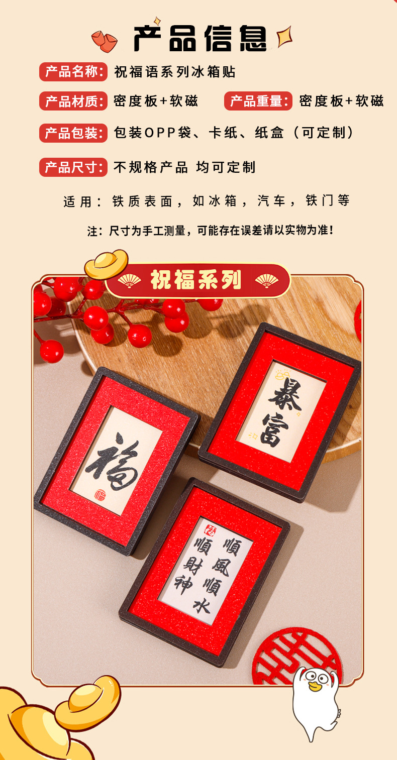 2026马年祝福语冰箱贴新款创意喜庆冰箱磁贴卡通财神爷冰箱装饰贴