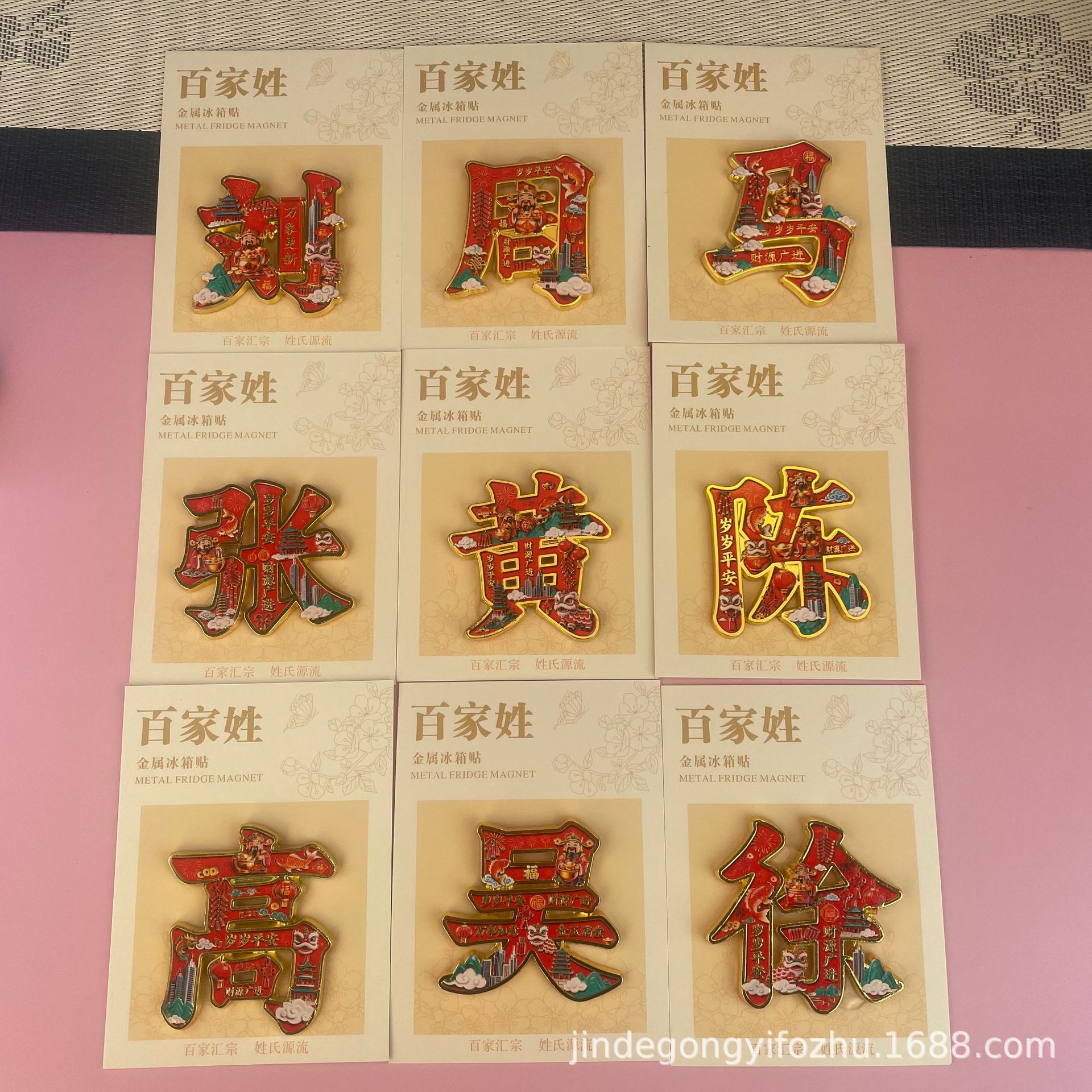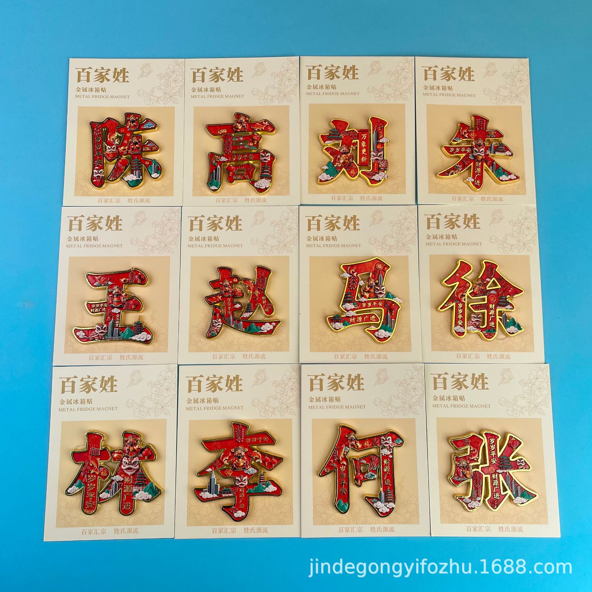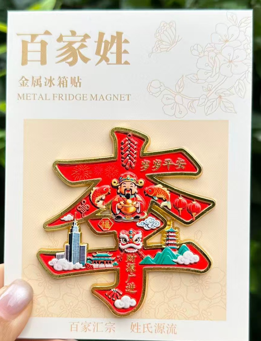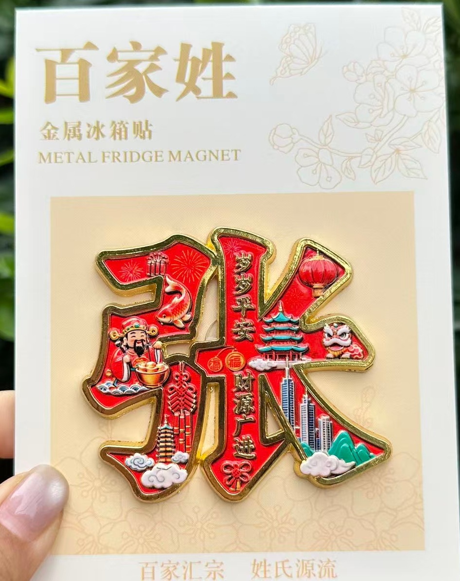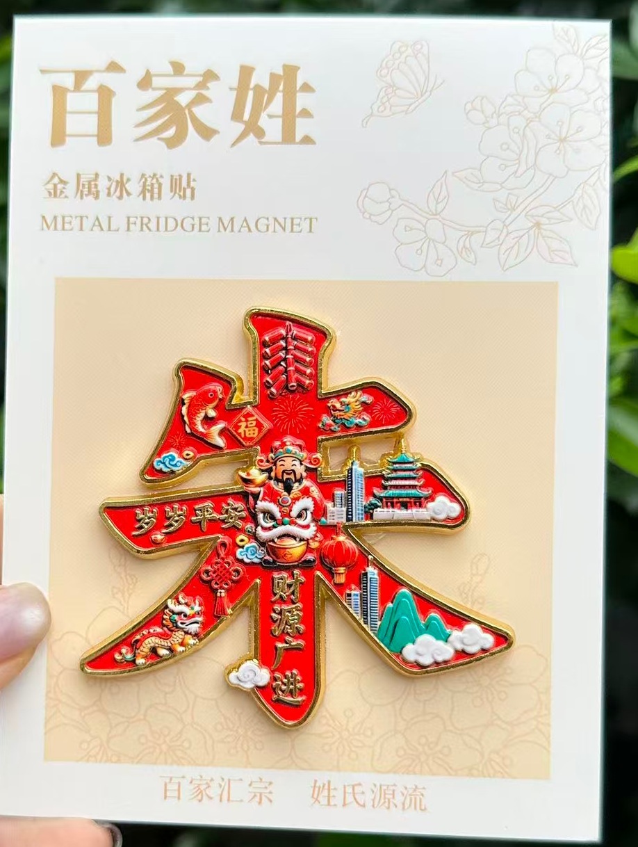 爆款百家姓姓氏文字金属磁吸冰箱贴文化创意收藏纪念批发姓氏磁贴
