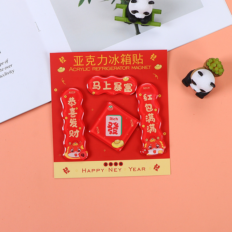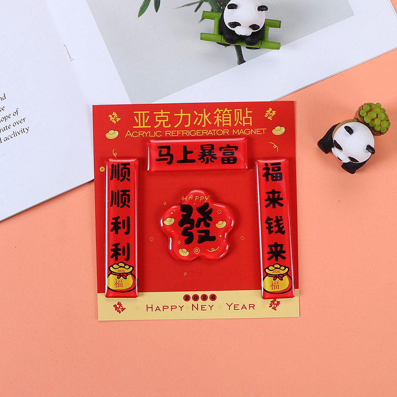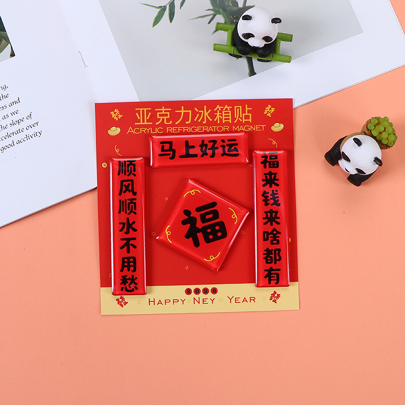现货春节对联冰箱贴定制马年春联磁铁冰箱装饰贴亚克力祝福文字贴