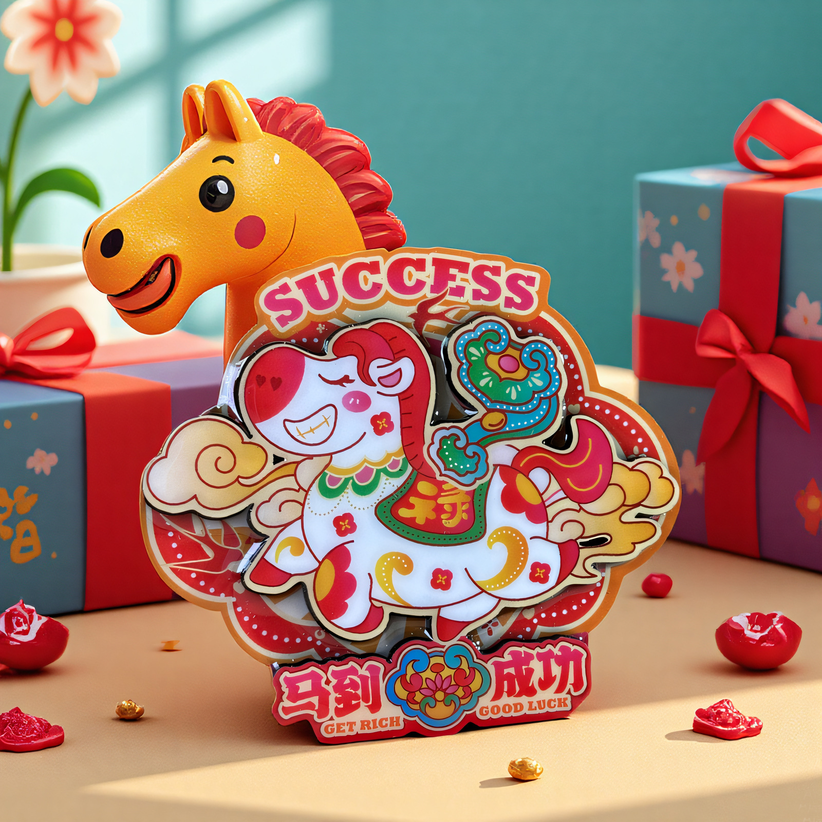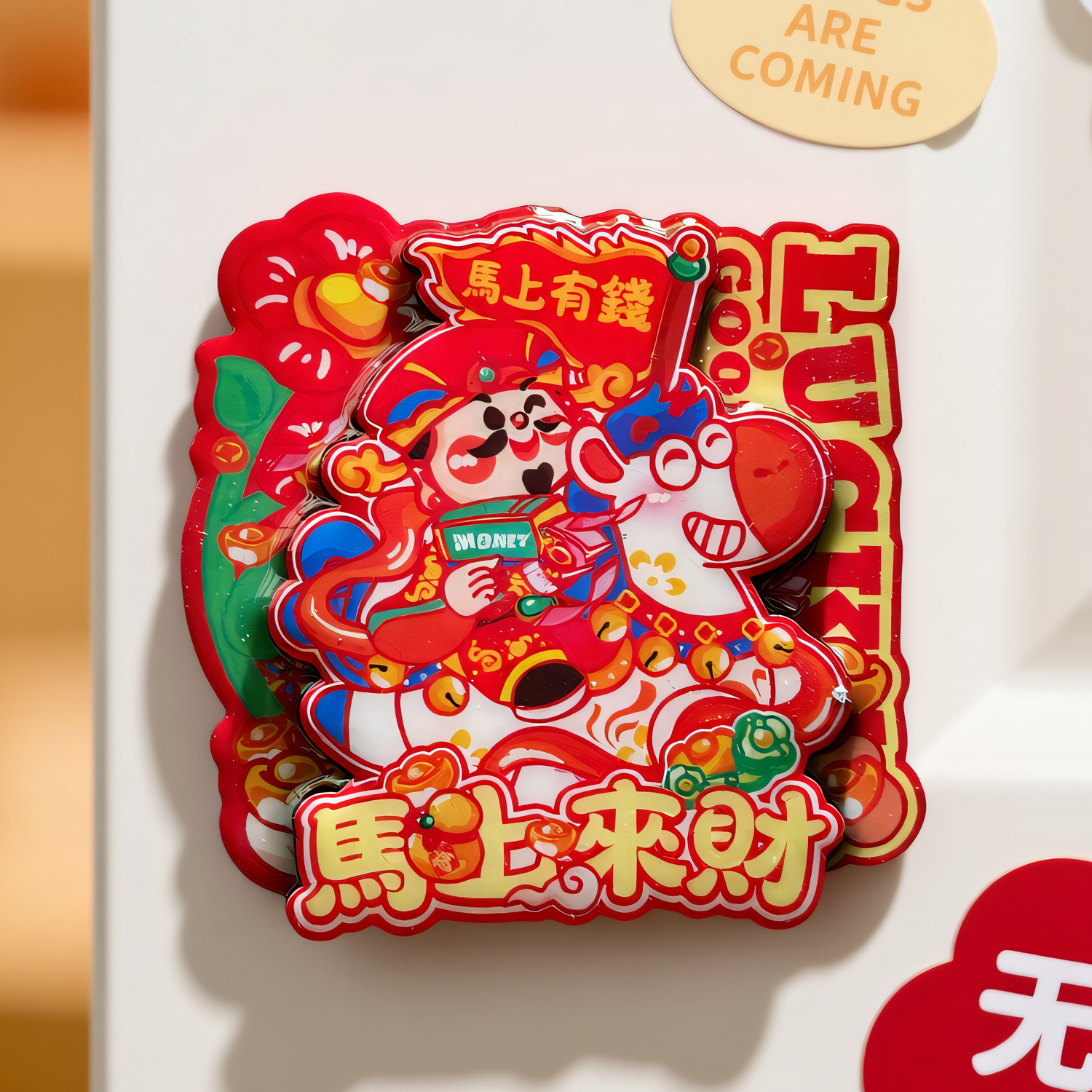 2026新年创意马年冰箱贴财神爷五路财神春节卡通可爱磁贴木质现货