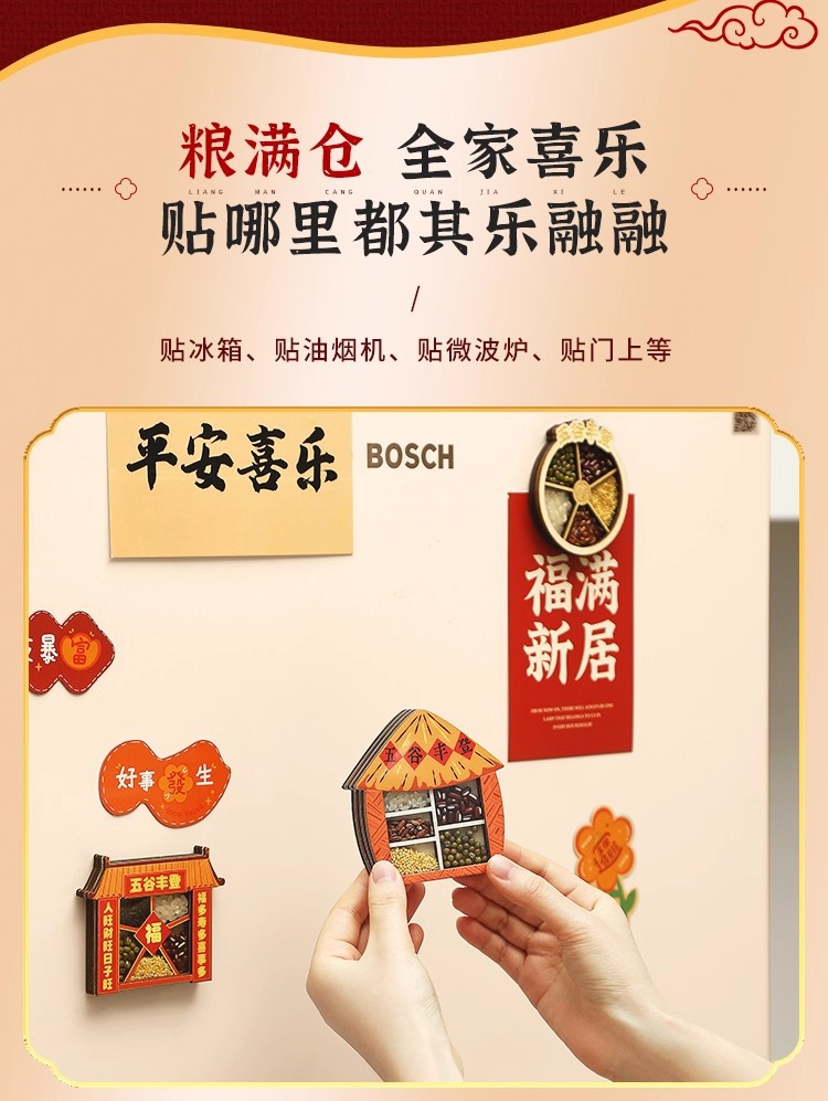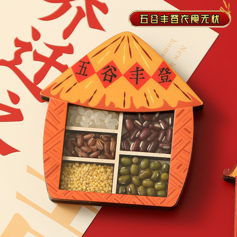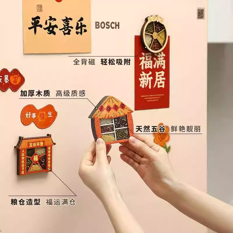 五谷丰登冰箱贴磁贴个性创意乔迁之喜新居装饰国风文创木质高级感