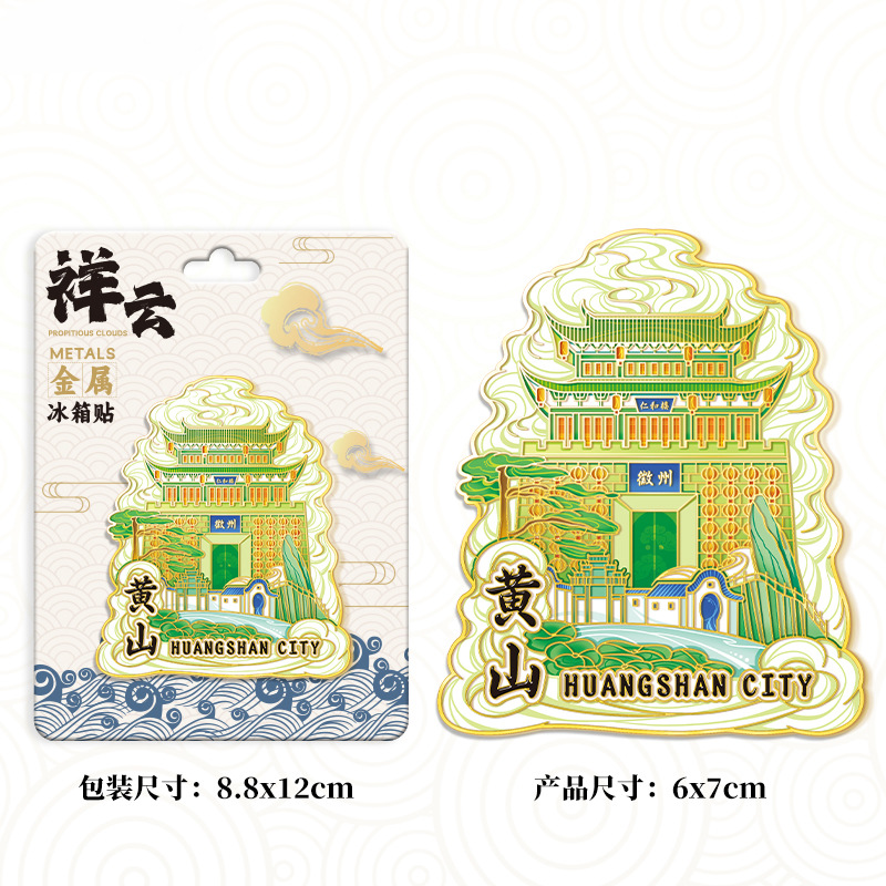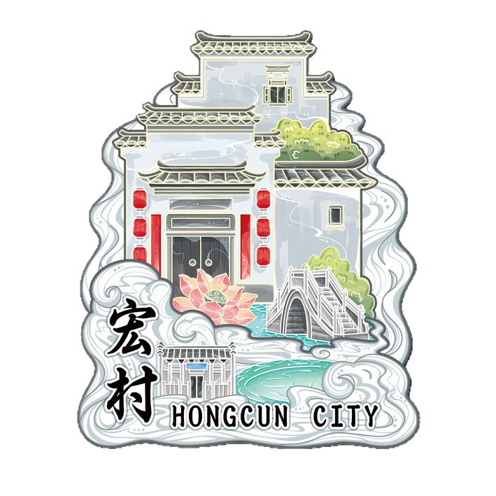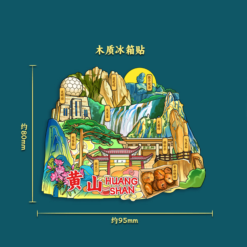安徽黄山宏村风景区木质文创磁吸创意立体城市地标建筑景点冰箱贴