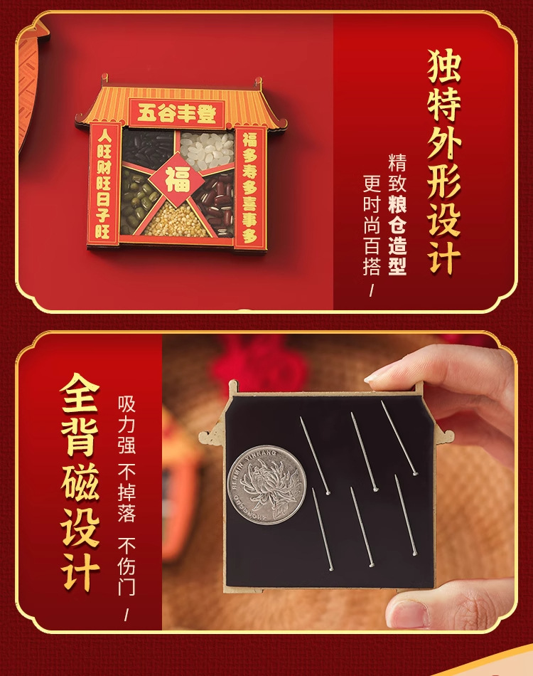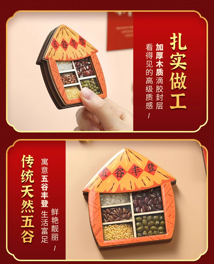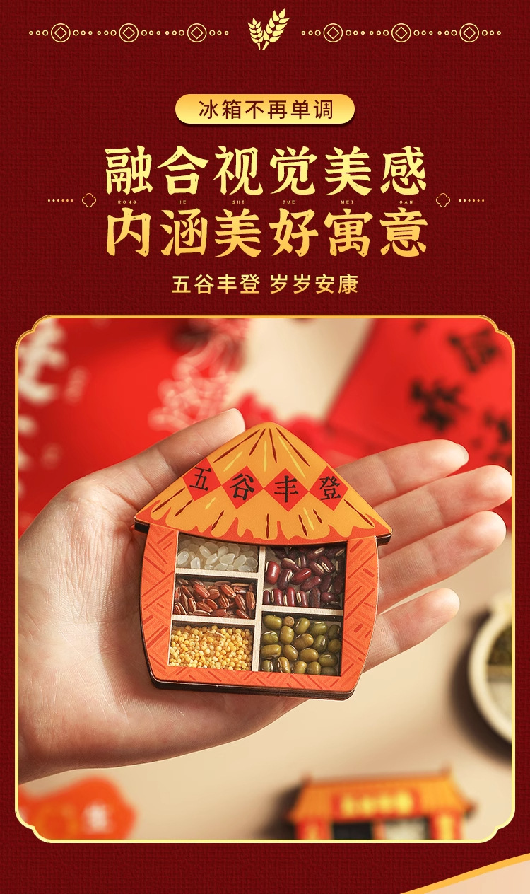 五谷丰登冰箱贴磁贴个性创意乔迁之喜新居装饰国风文创木质高级感