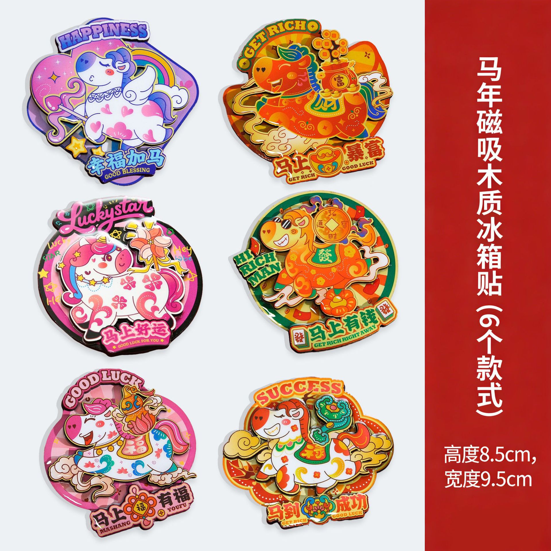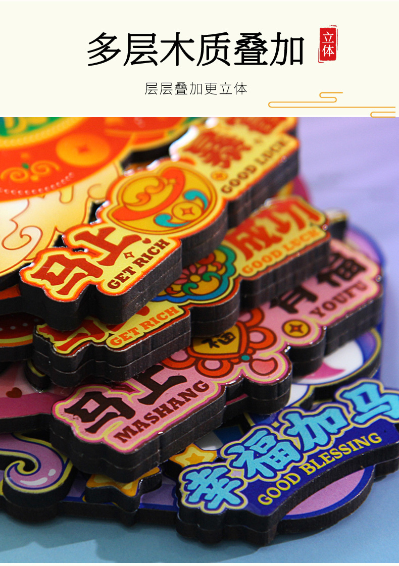 2026马年新款马上暴富有钱好运有福冰箱贴卡通可爱文创木质3D立体