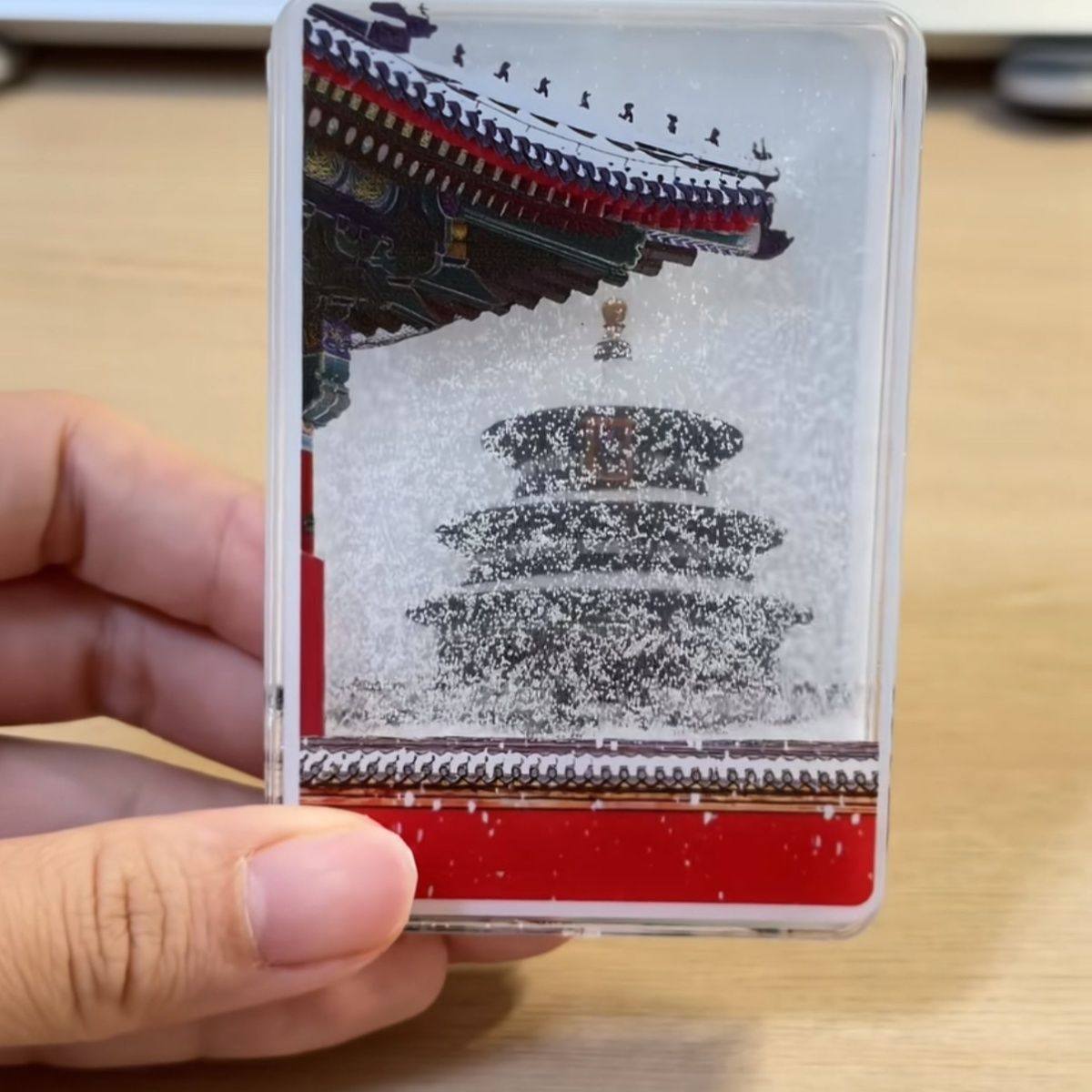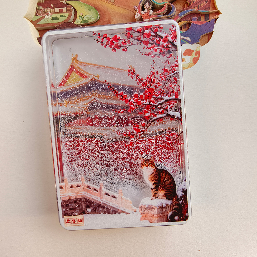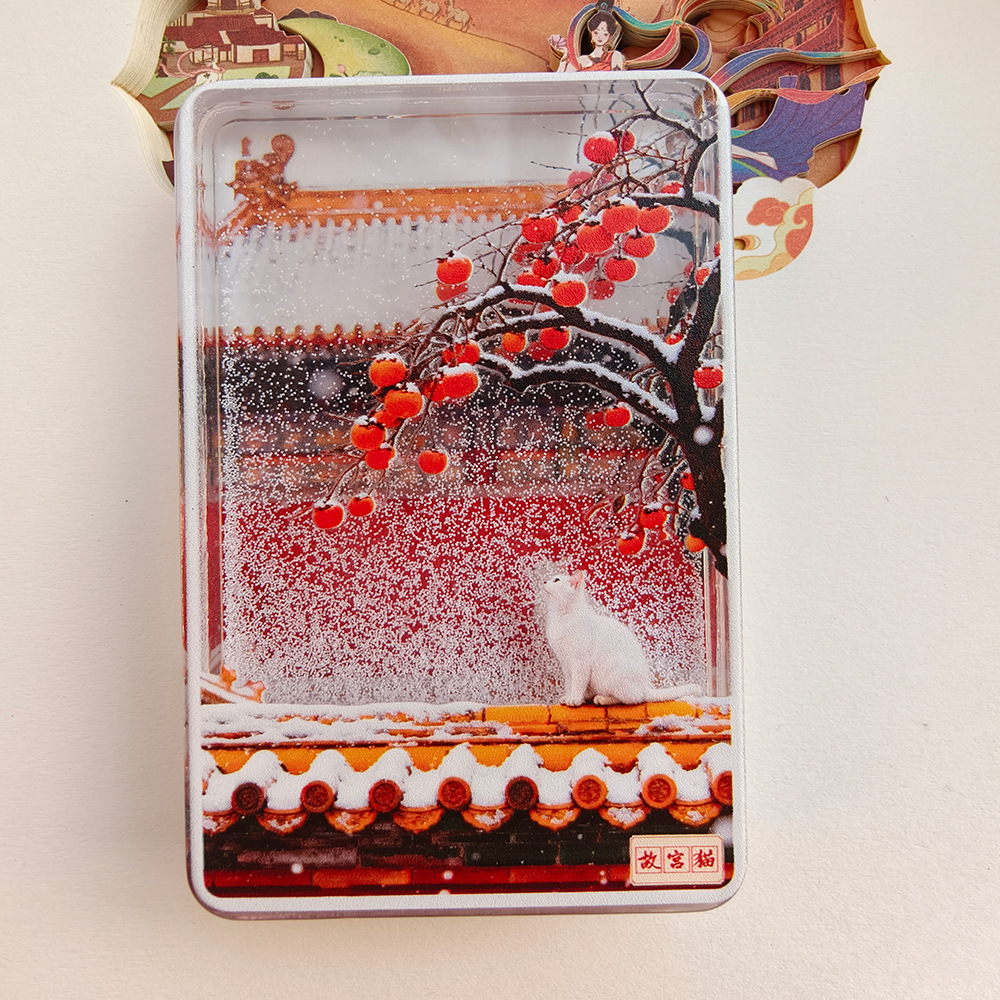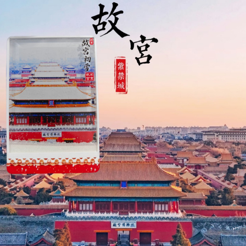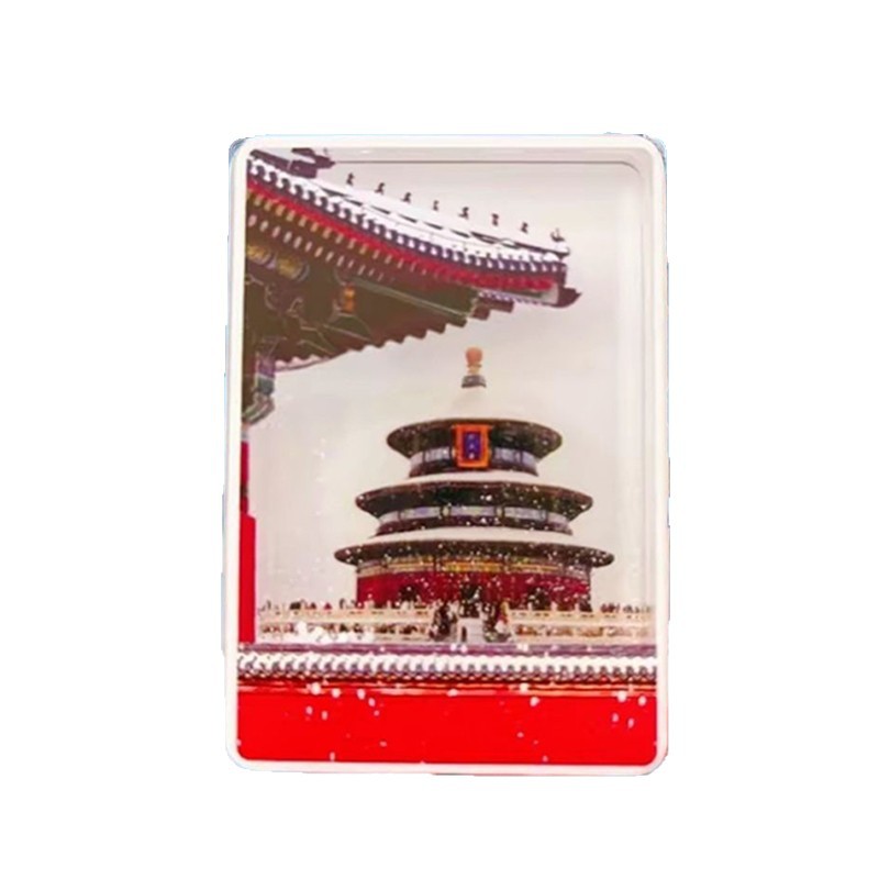 雪景冰箱贴文创北京故宫天坛飘雪流沙亚克力磁吸旅游纪念景点文创