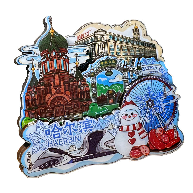 城市冰箱贴哈尔滨沈阳大连长春延吉长白山内蒙古呼伦贝尔文创纪念