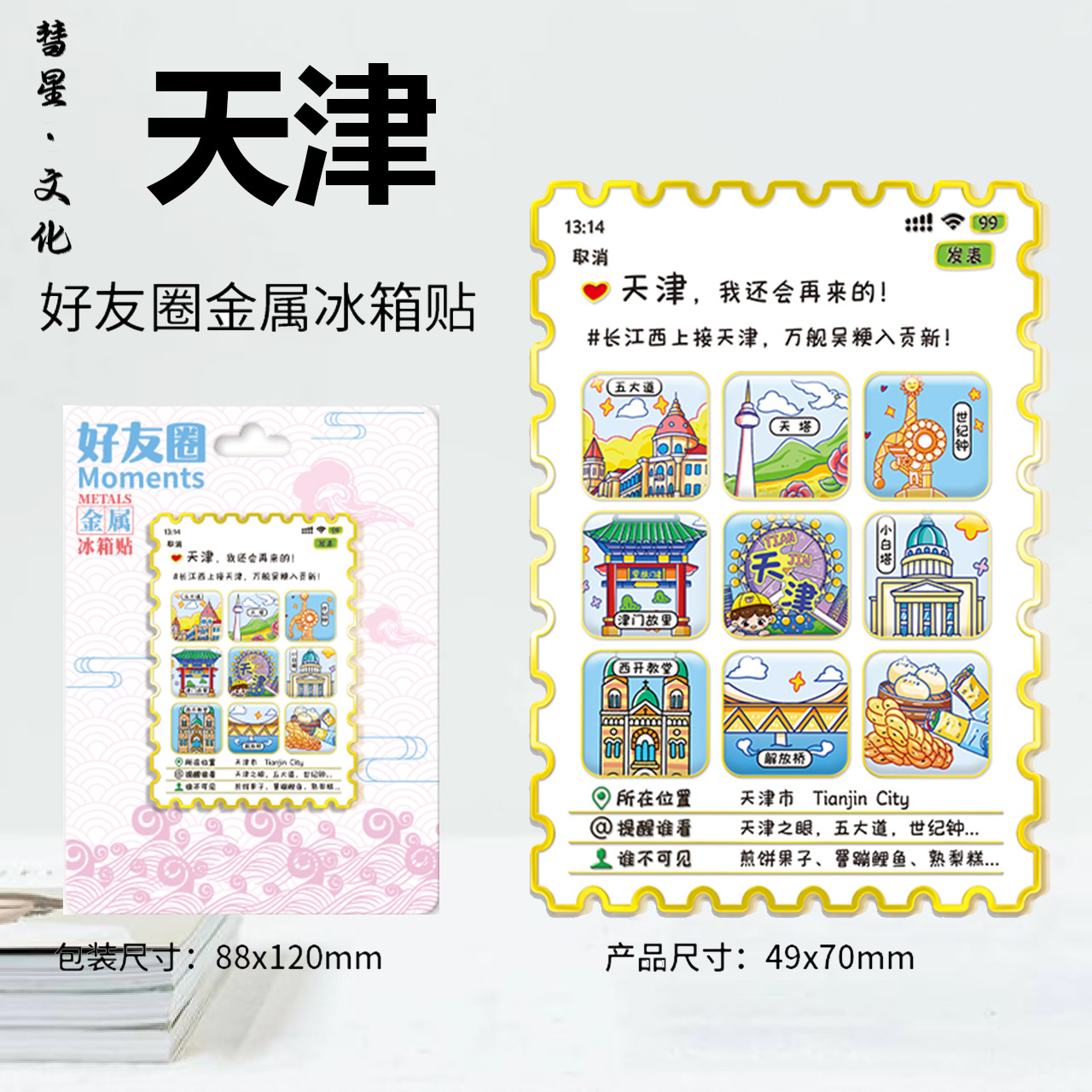 天津之眼立体多层木质金属城市文创创意性礼品旅游景点冰箱贴盲盒