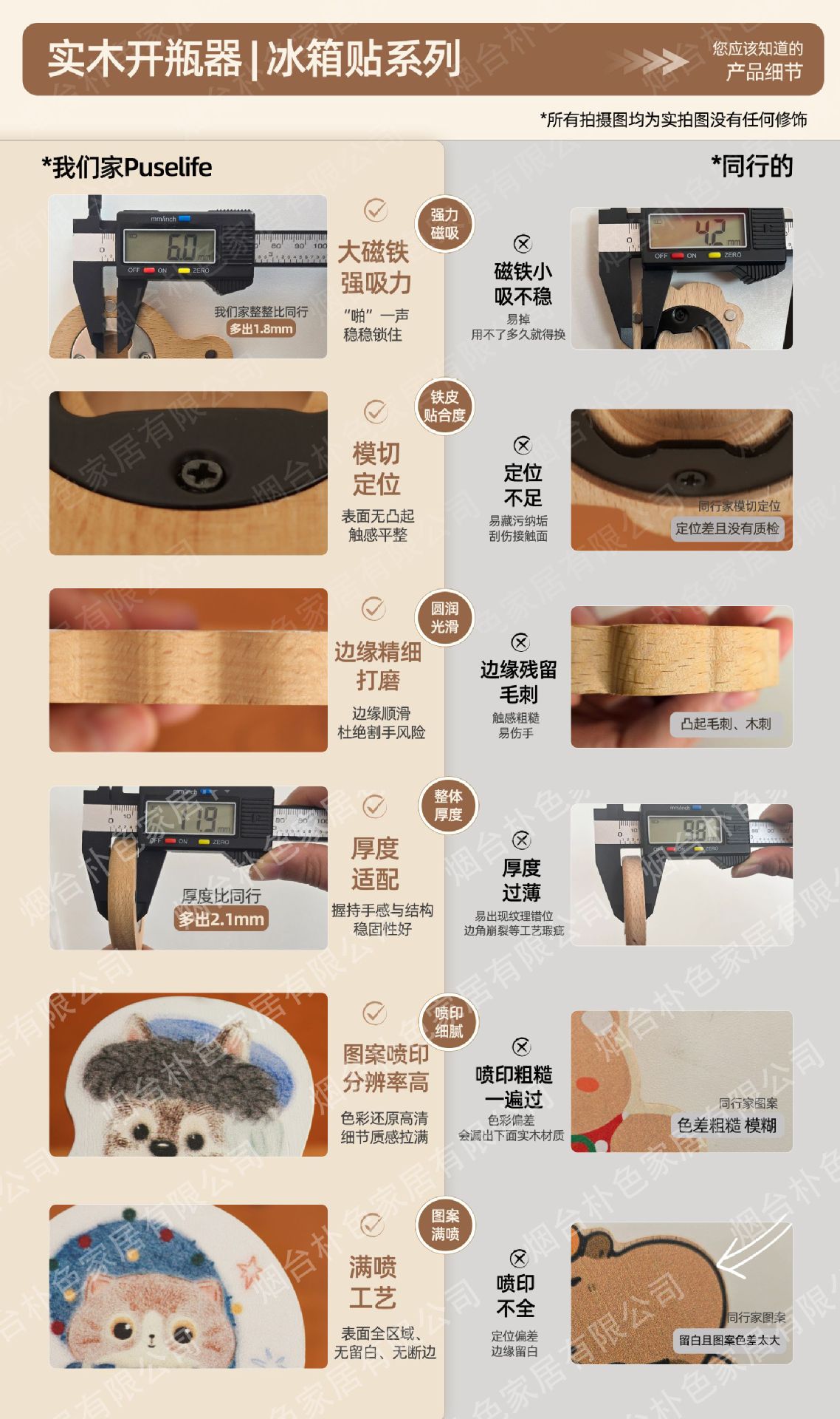 可定制图案创意实木磁吸冰箱贴便携多功能啤酒开瓶器纪念品礼品