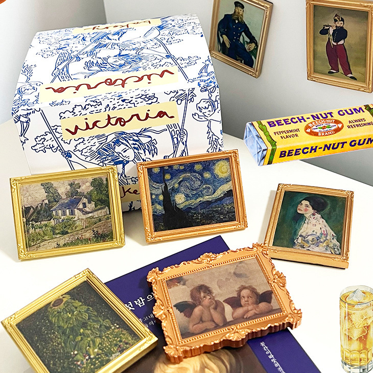 原创版权世界名画金色相框冰箱贴博物馆故宫书店本心如荷文创梵高