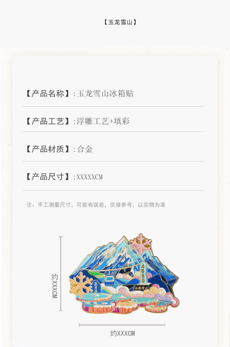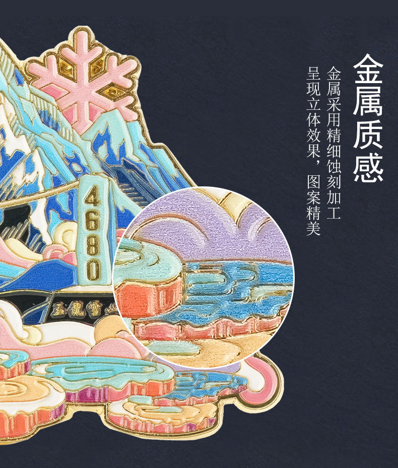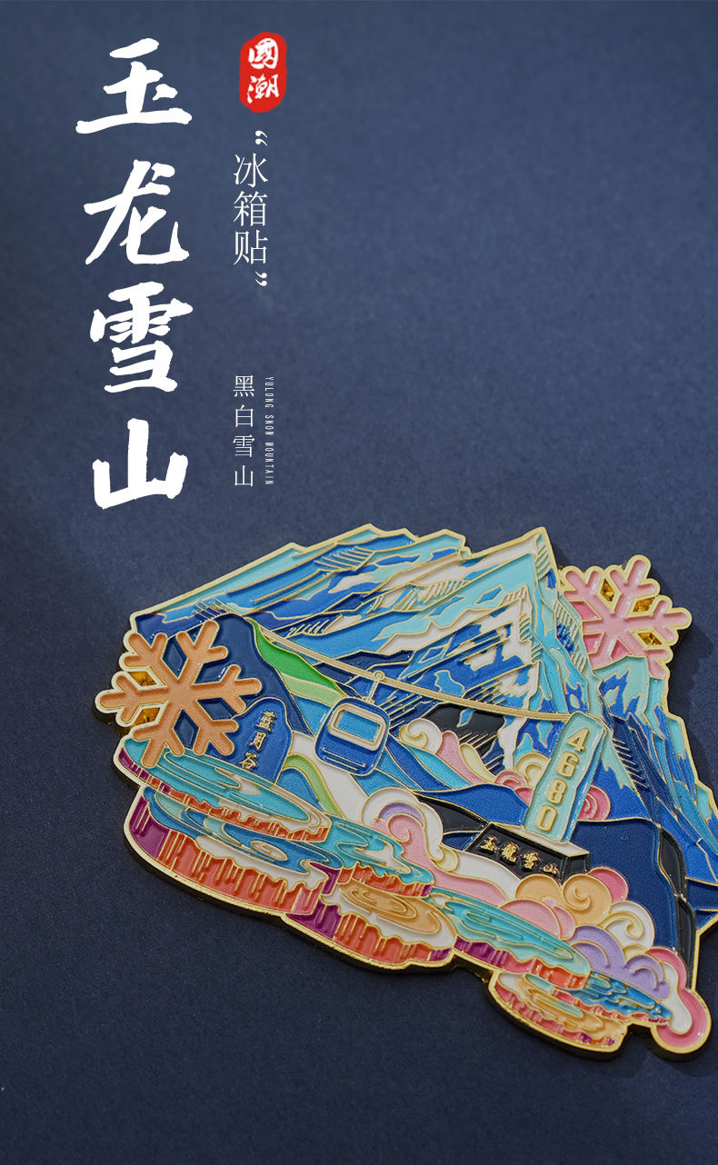 【原创】云南冰箱贴文创金属磁吸玉龙雪山蓝月谷旅游景点纪念品