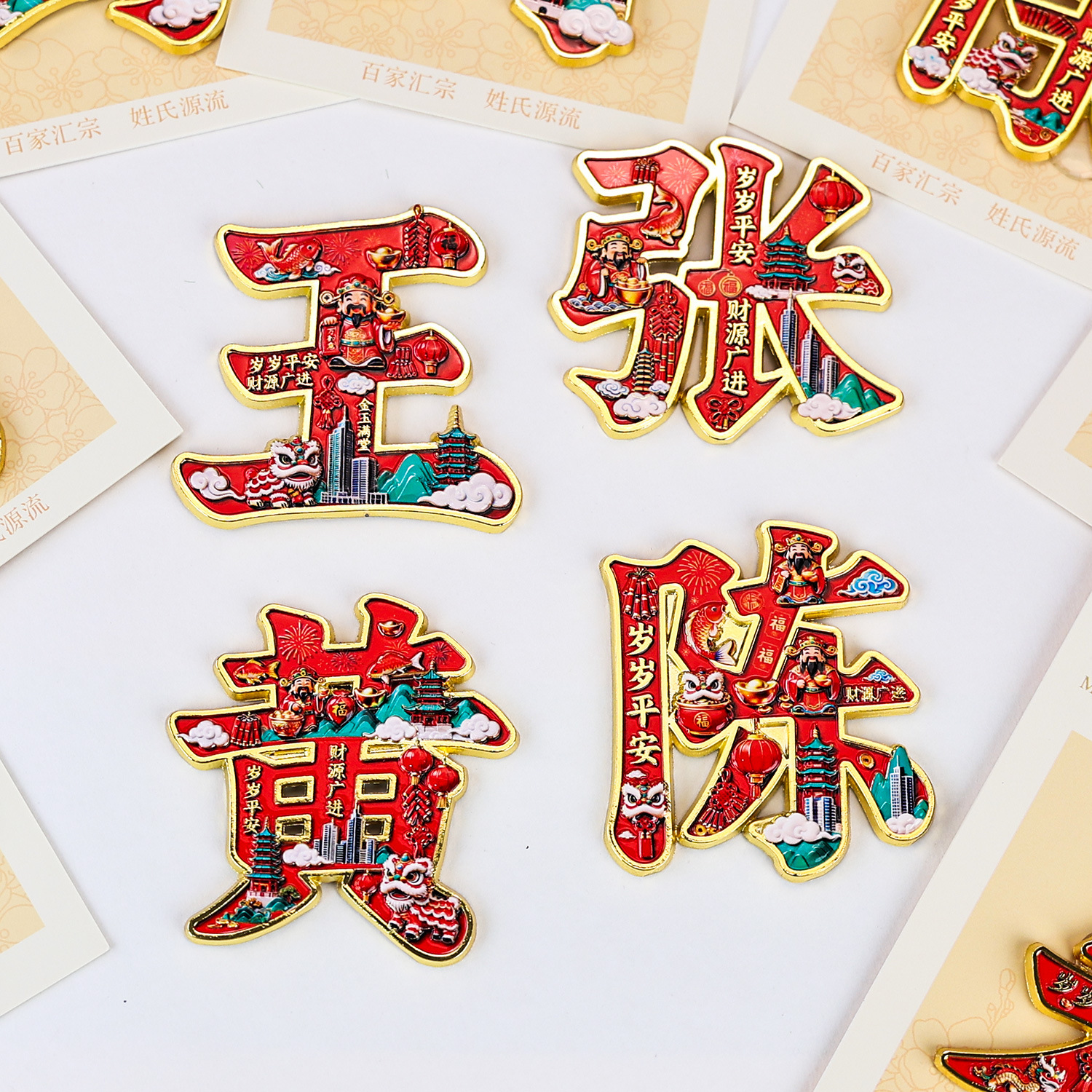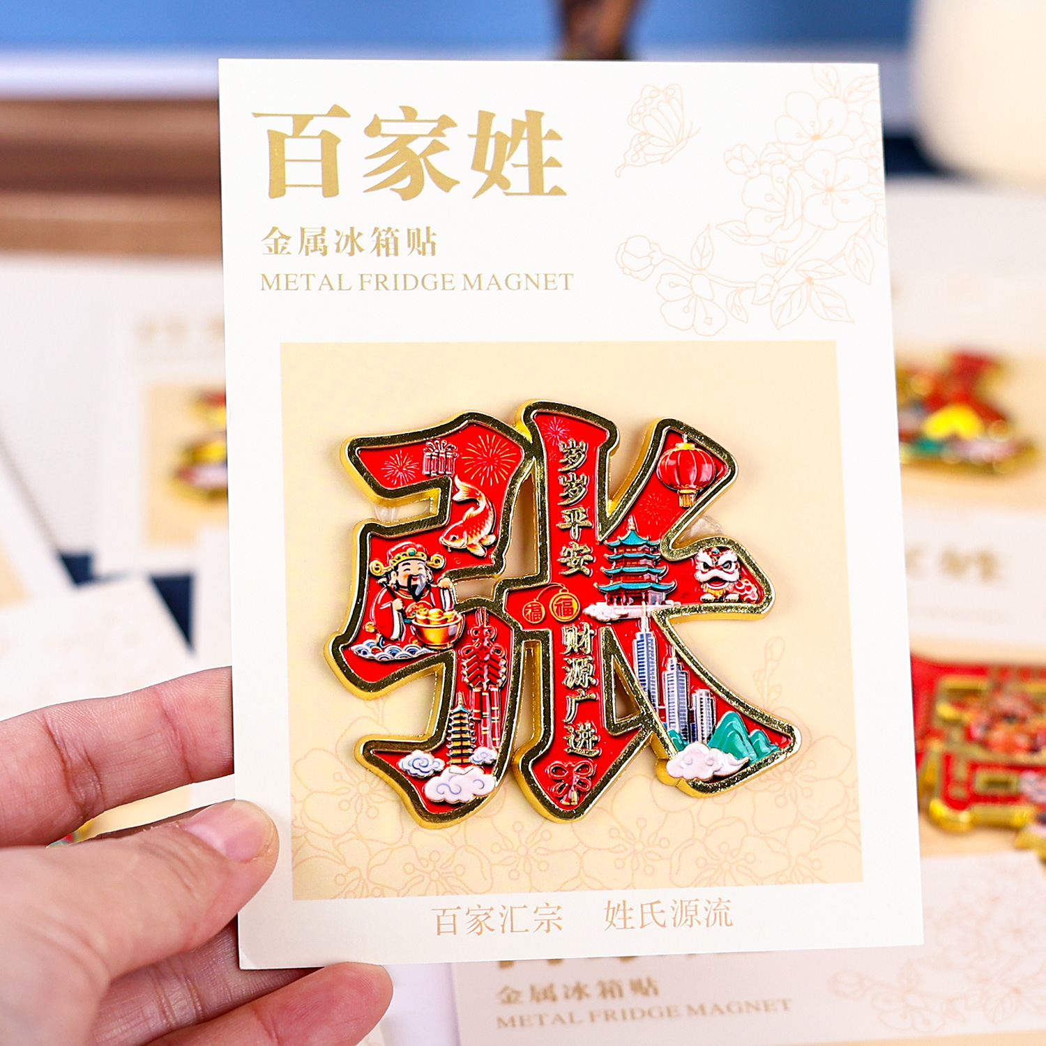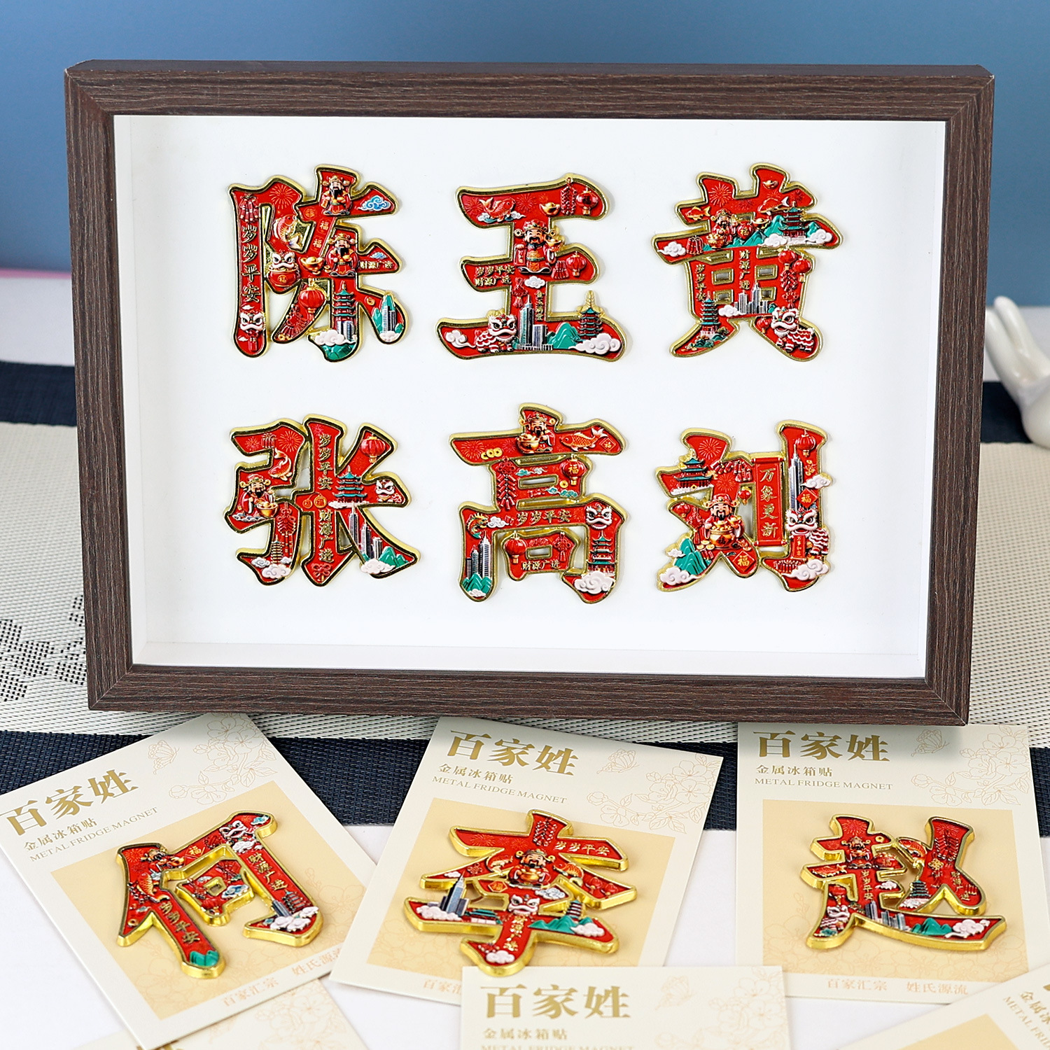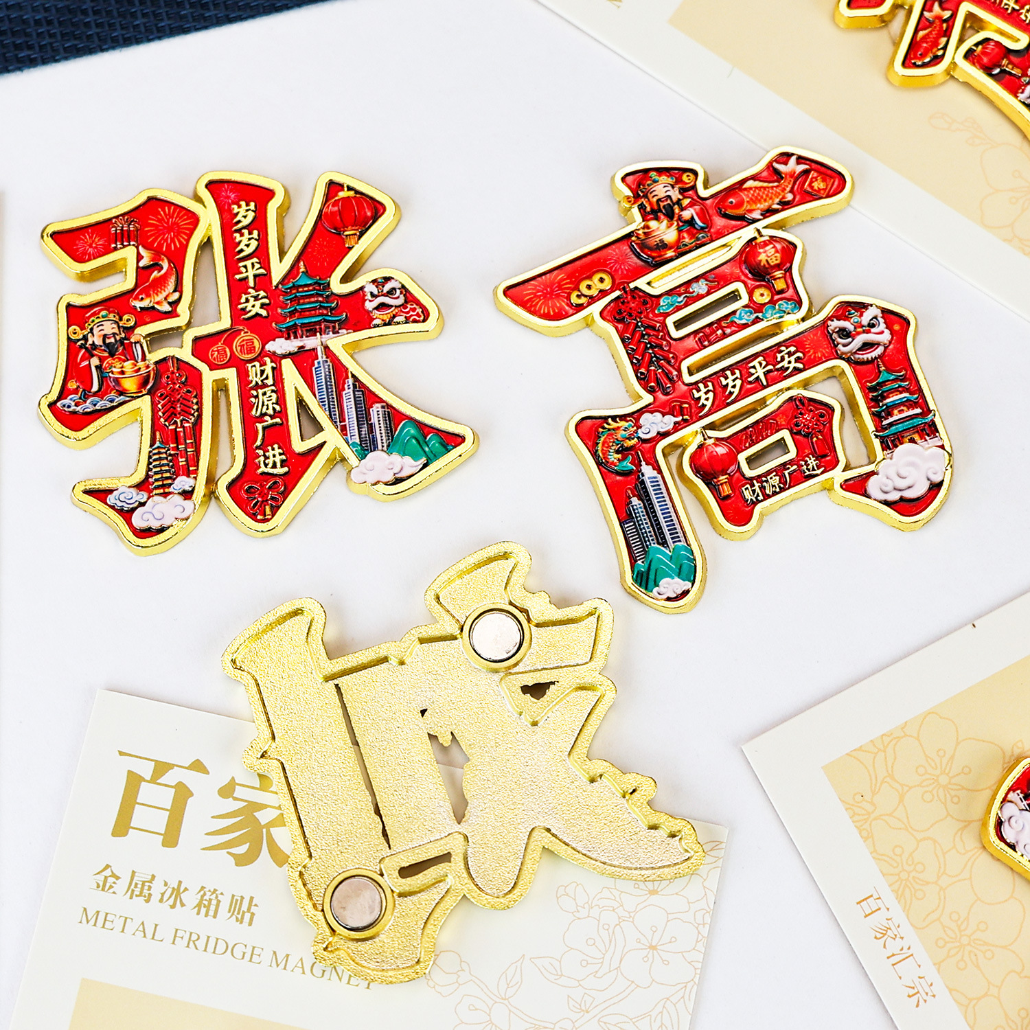 金属百家姓冰箱贴中国风创意姓氏磁吸装饰家居厨房个性文字贴