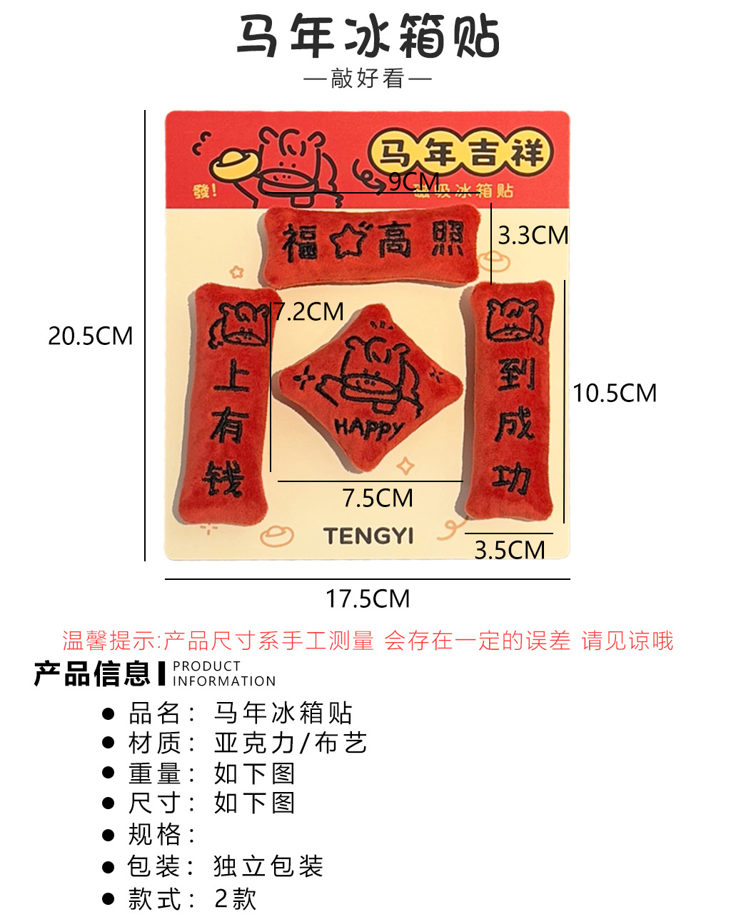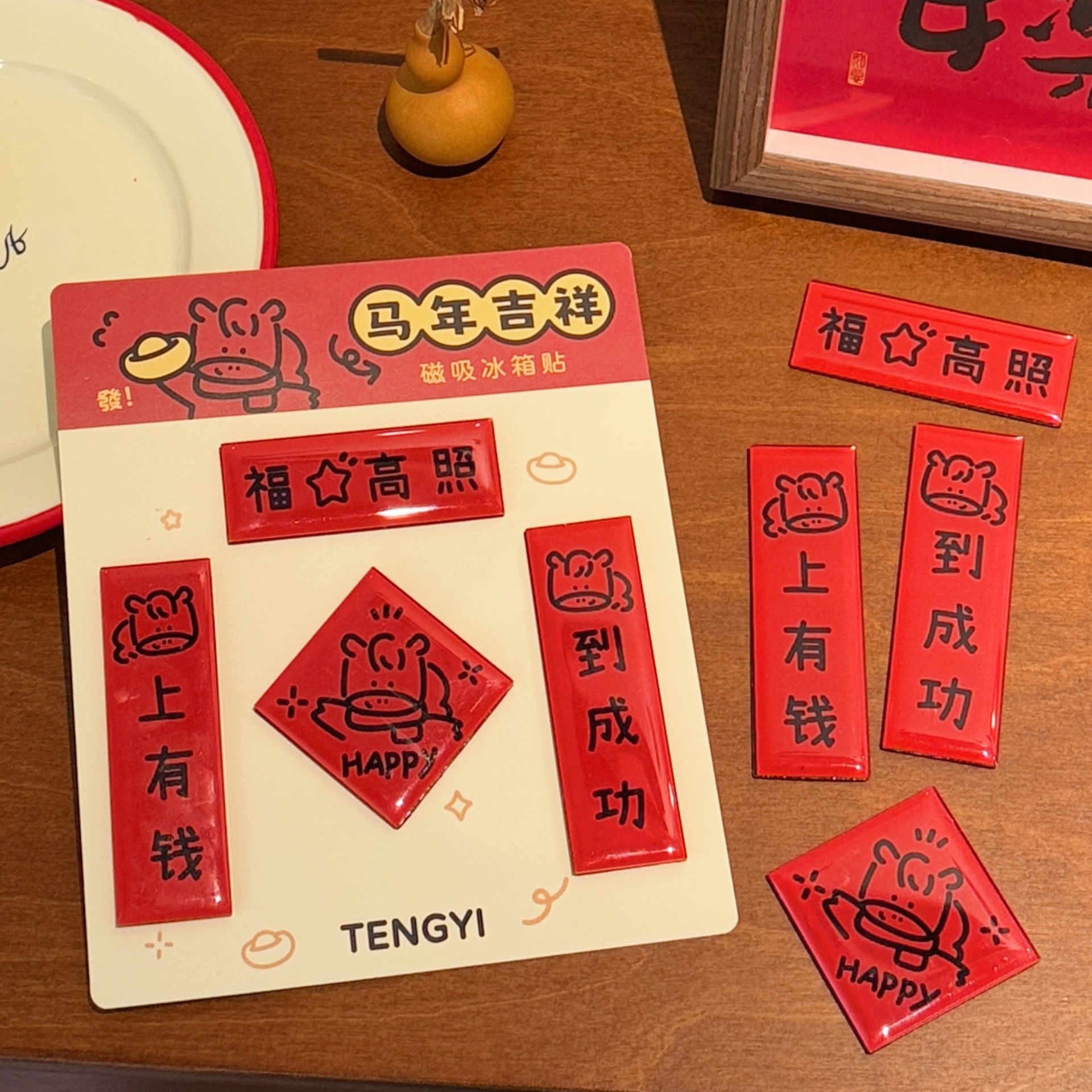 腾亿原创2026年马年迷你对联冰箱贴新年氛围创意玩偶磁吸贴小礼品