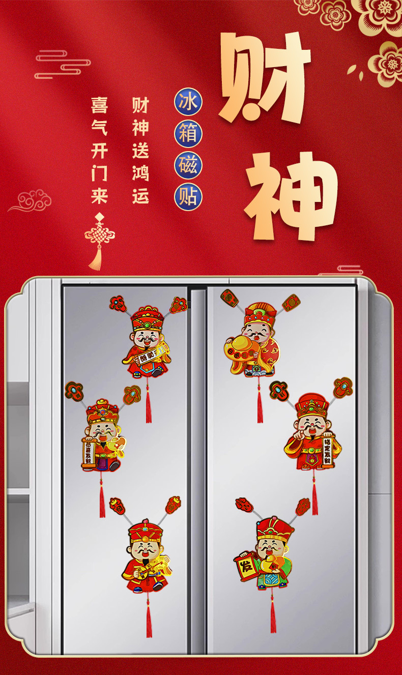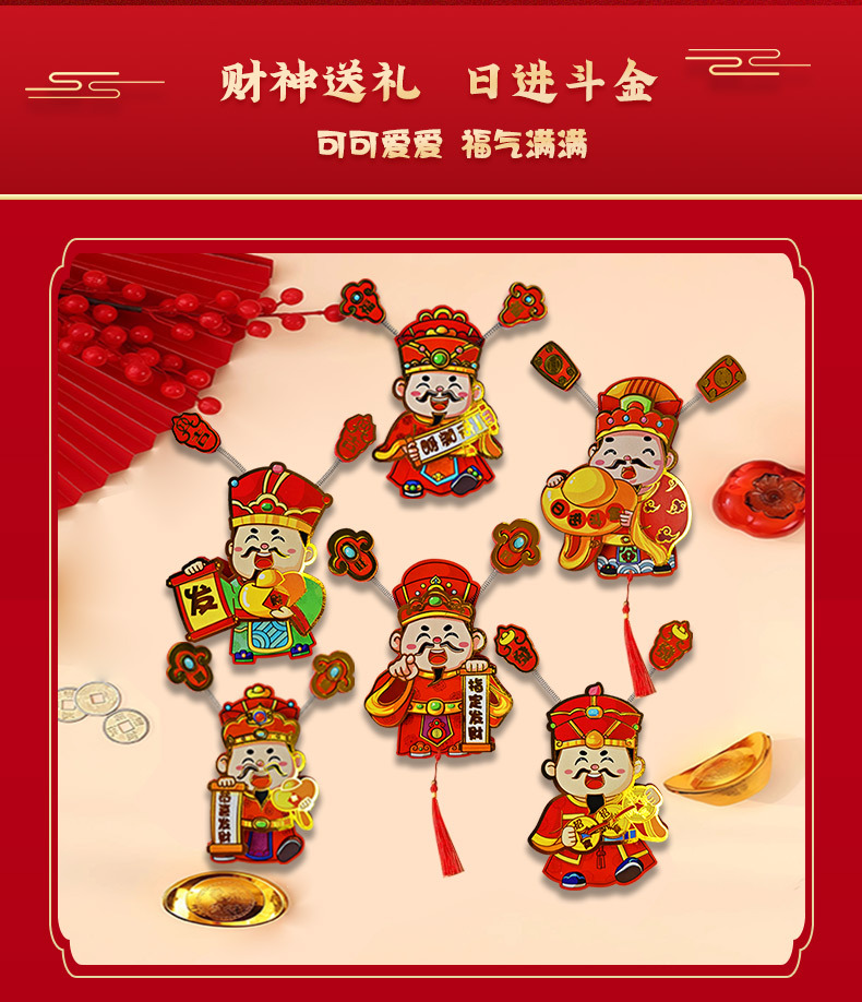 卡通财神磁吸冰箱贴中国风创意挂件装饰用品冰箱贴饰品厂家直销