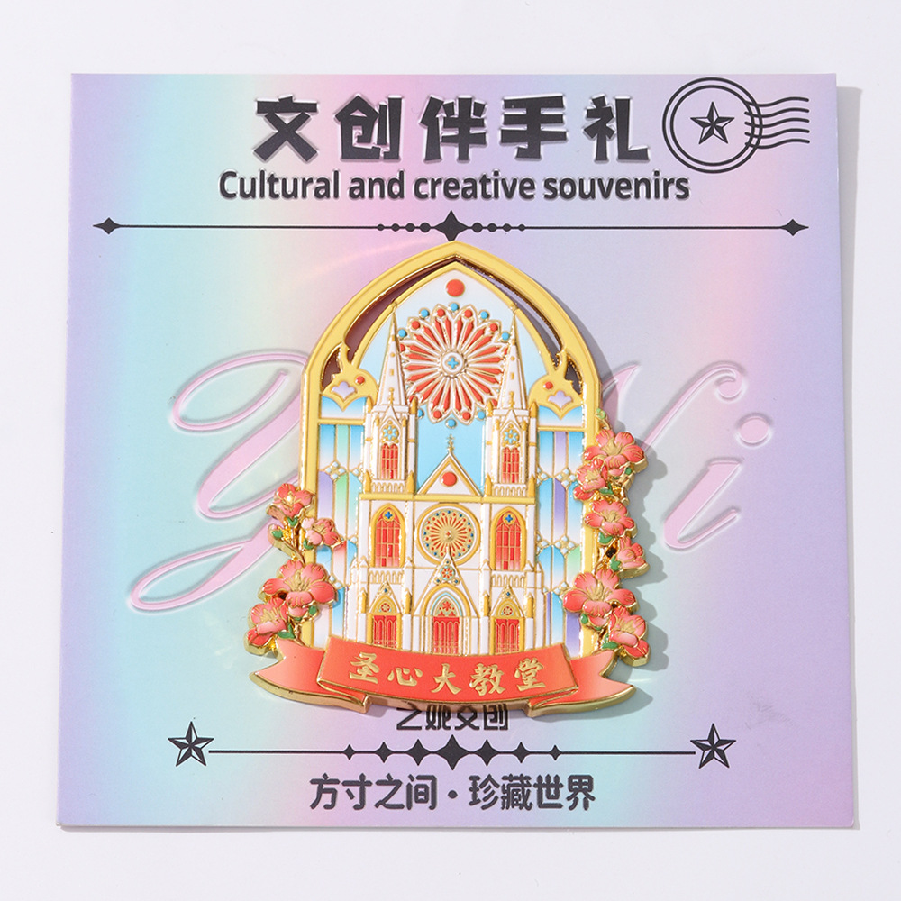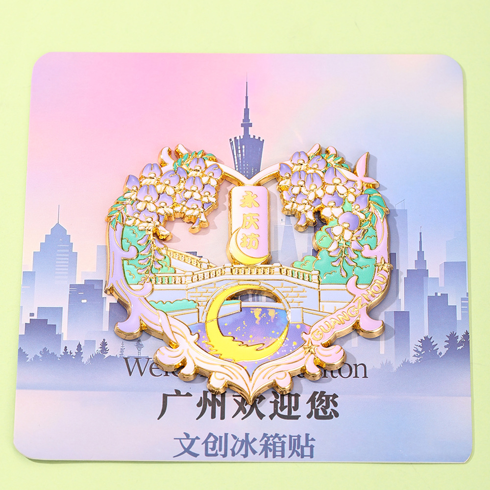 广州文创小蛮腰中国风磁吸冰箱贴3D立体金属浮雕花瓣旅游纪念品