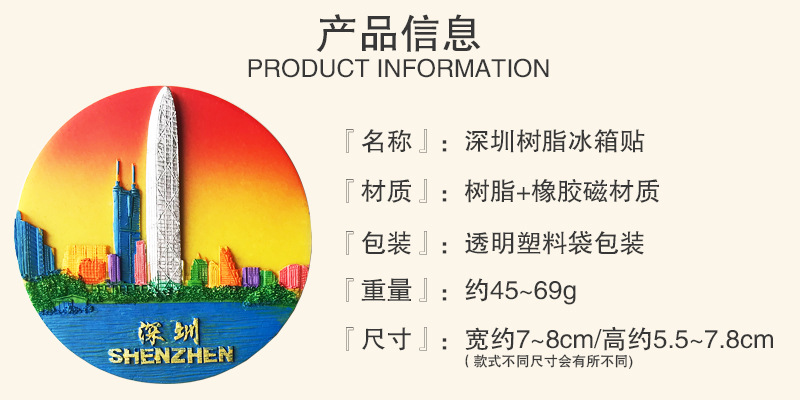 深圳景区树脂冰箱贴旅游纪念礼品热卖家居装饰工艺品广告促销创意