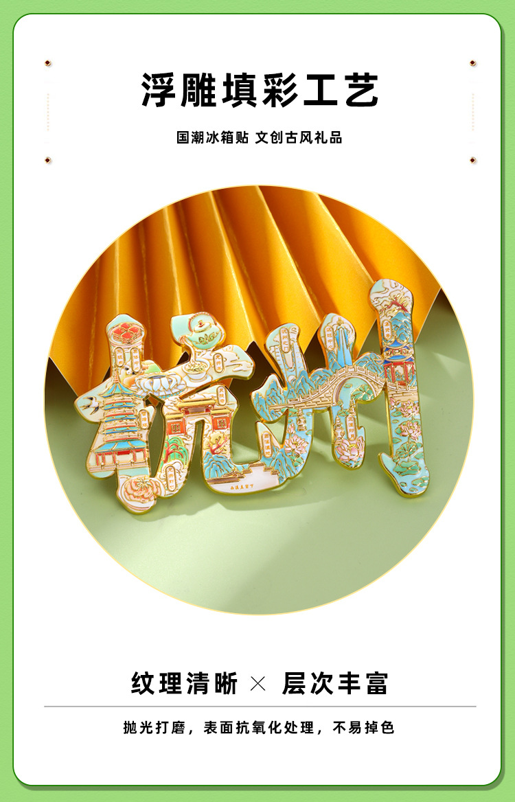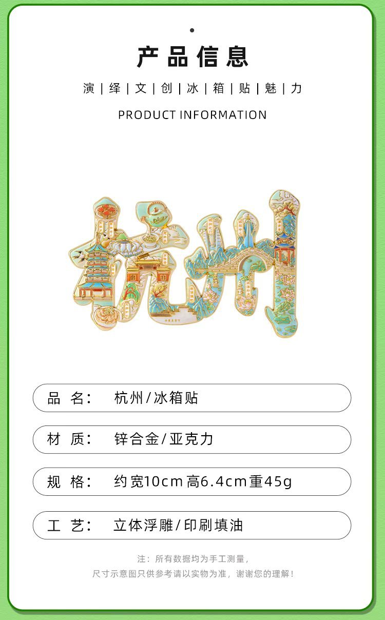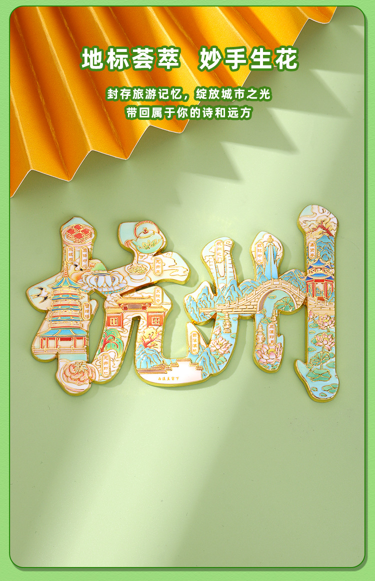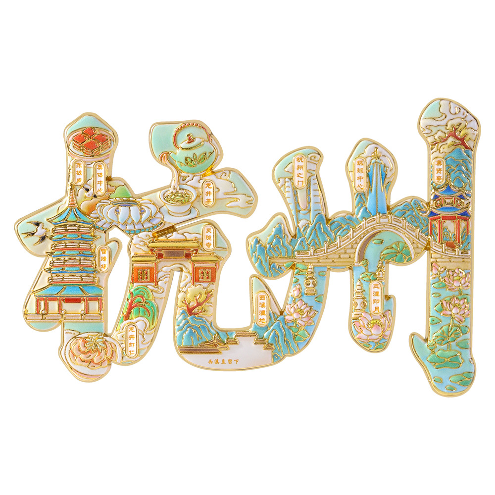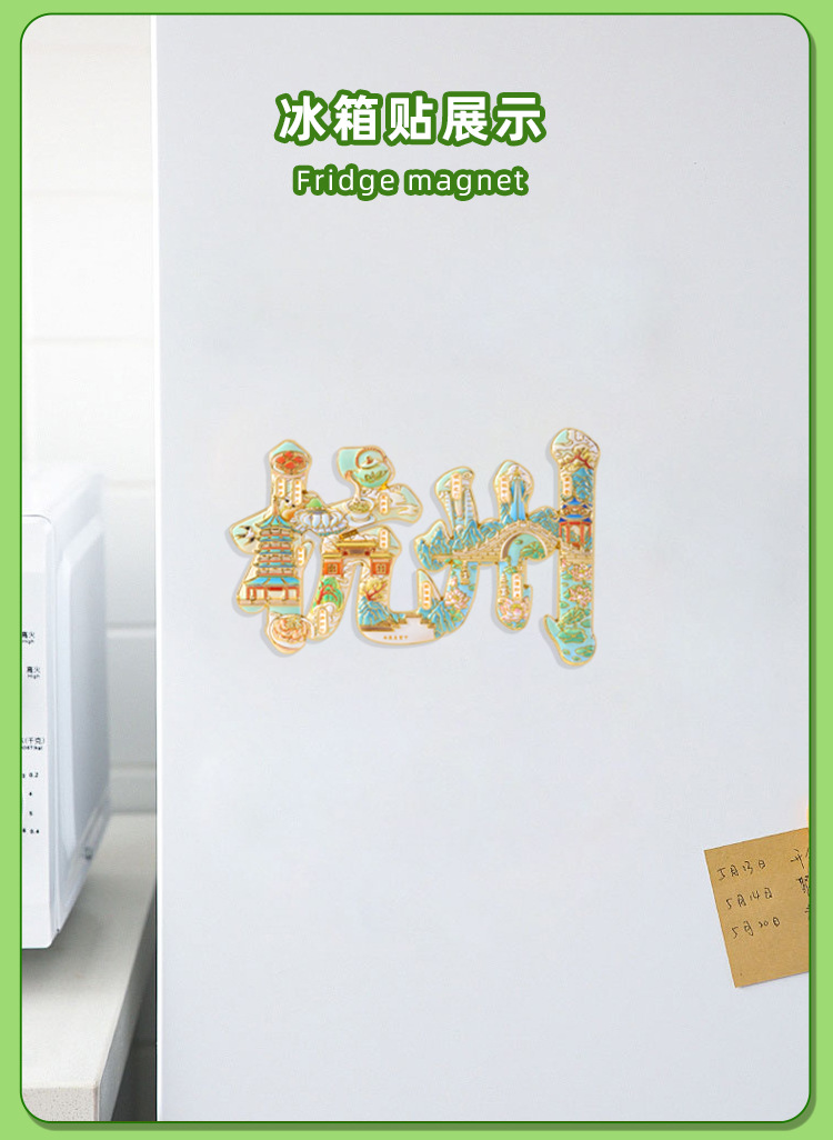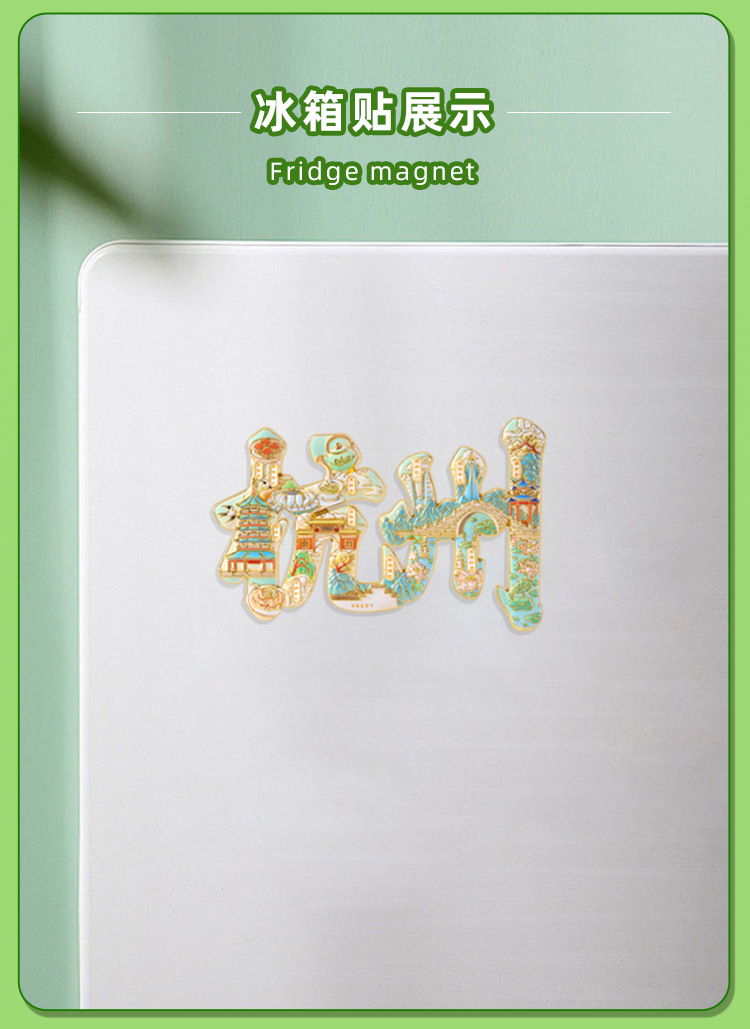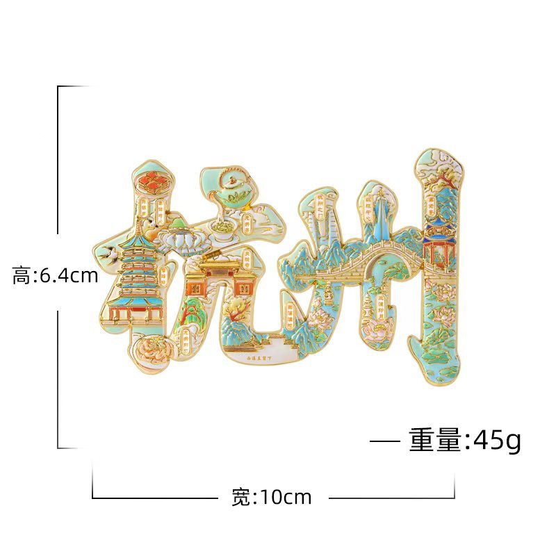 杭州文创文字金属冰箱贴景区文创现货批发中国城市旅游纪念品