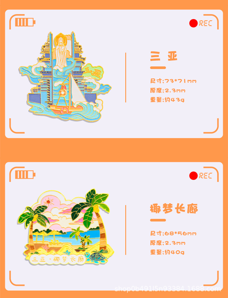 批发现货三亚市金属冰箱贴文创旅游纪念地标城市景点高颜值伴手礼
