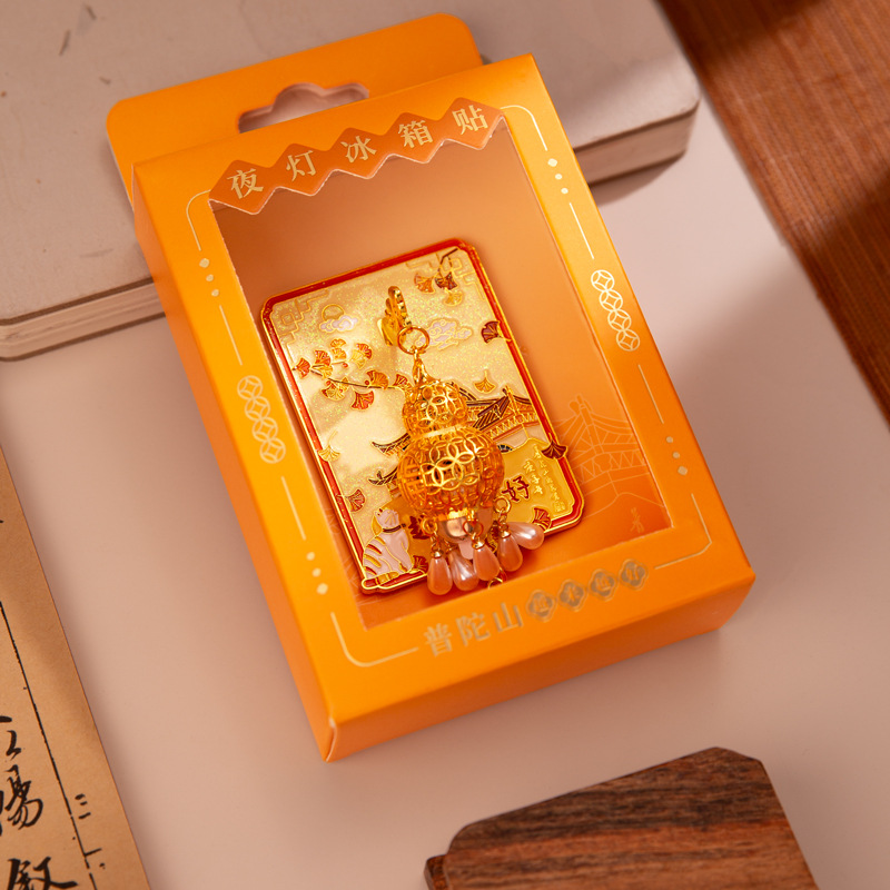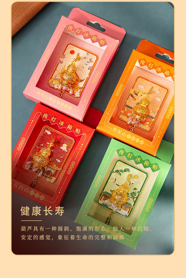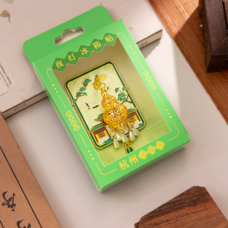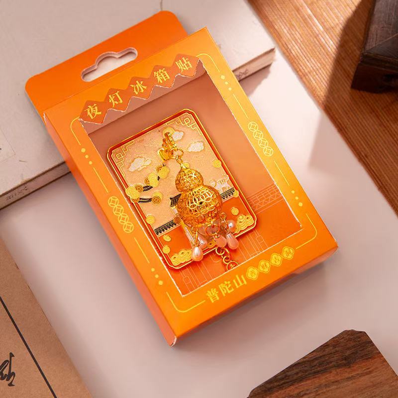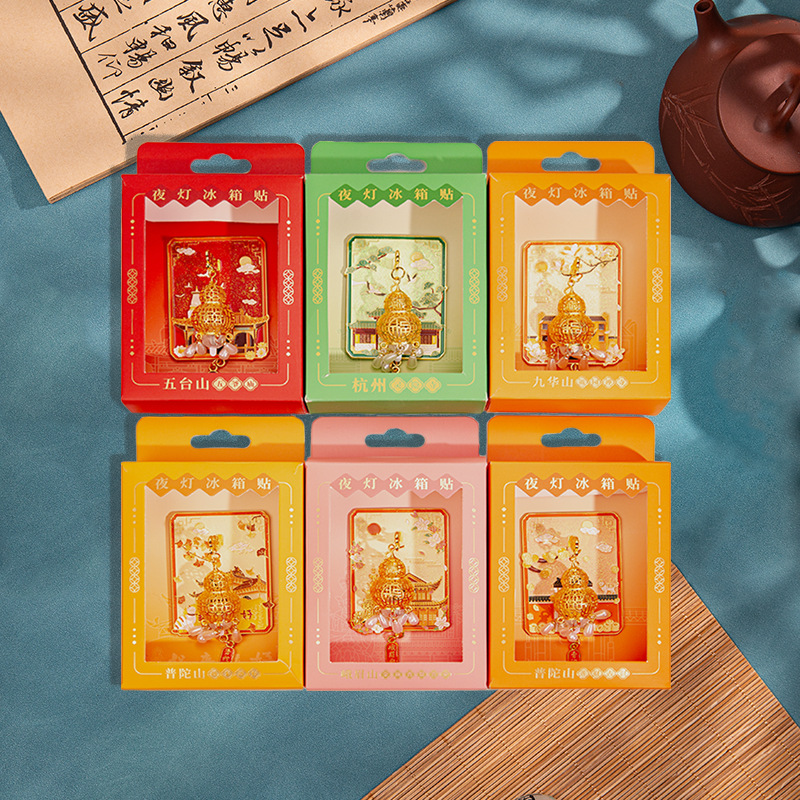 杭州灵隐寺普陀山夜灯冰箱贴文创发光金属夜光磁吸纪念工艺品批发