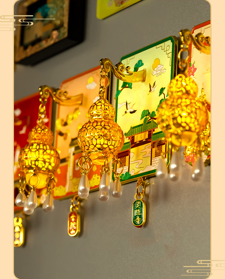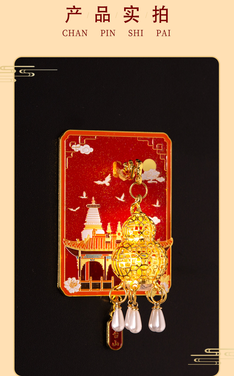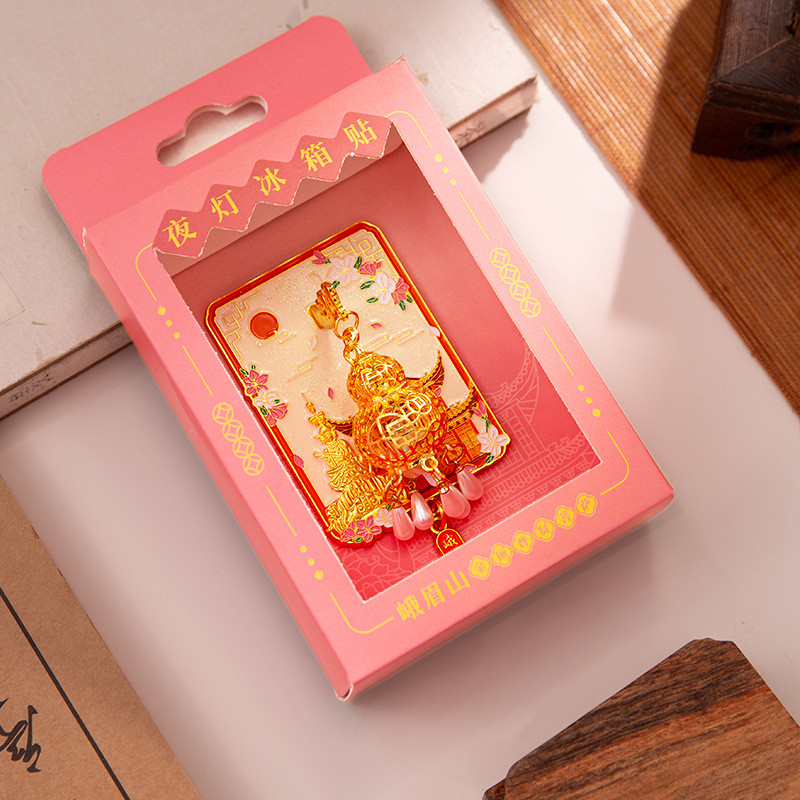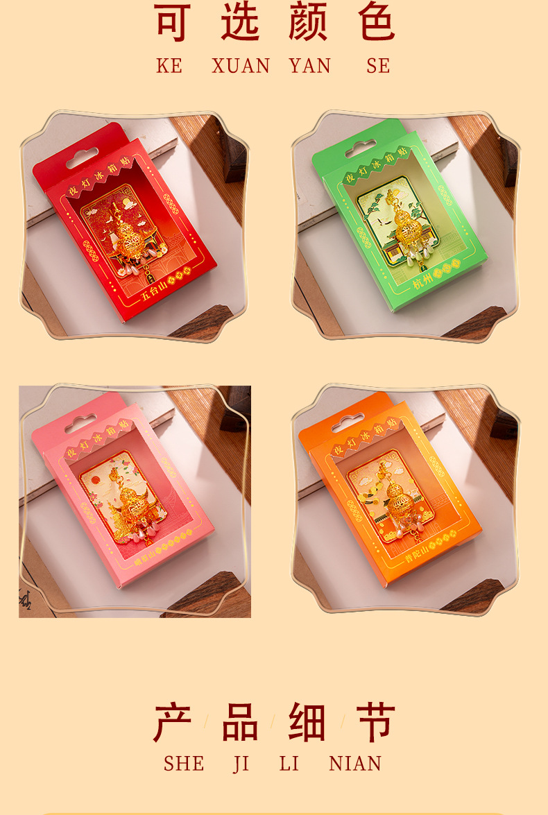 杭州灵隐寺普陀山夜灯冰箱贴文创发光金属夜光磁吸纪念工艺品批发
