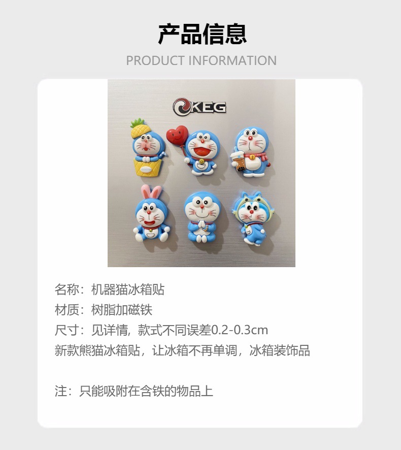 卡通机器猫冰箱磁吸贴装饰文创叮当猫蓝胖子可爱3D立体树脂冰箱贴