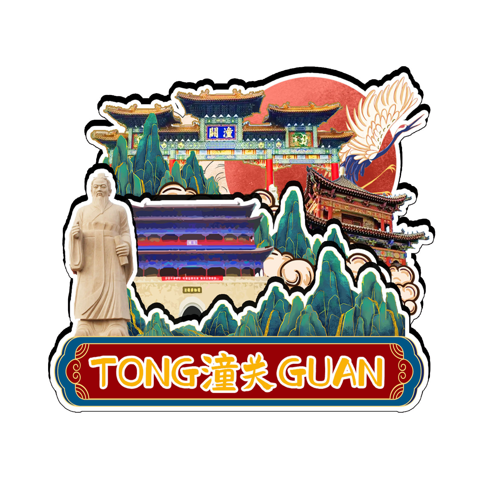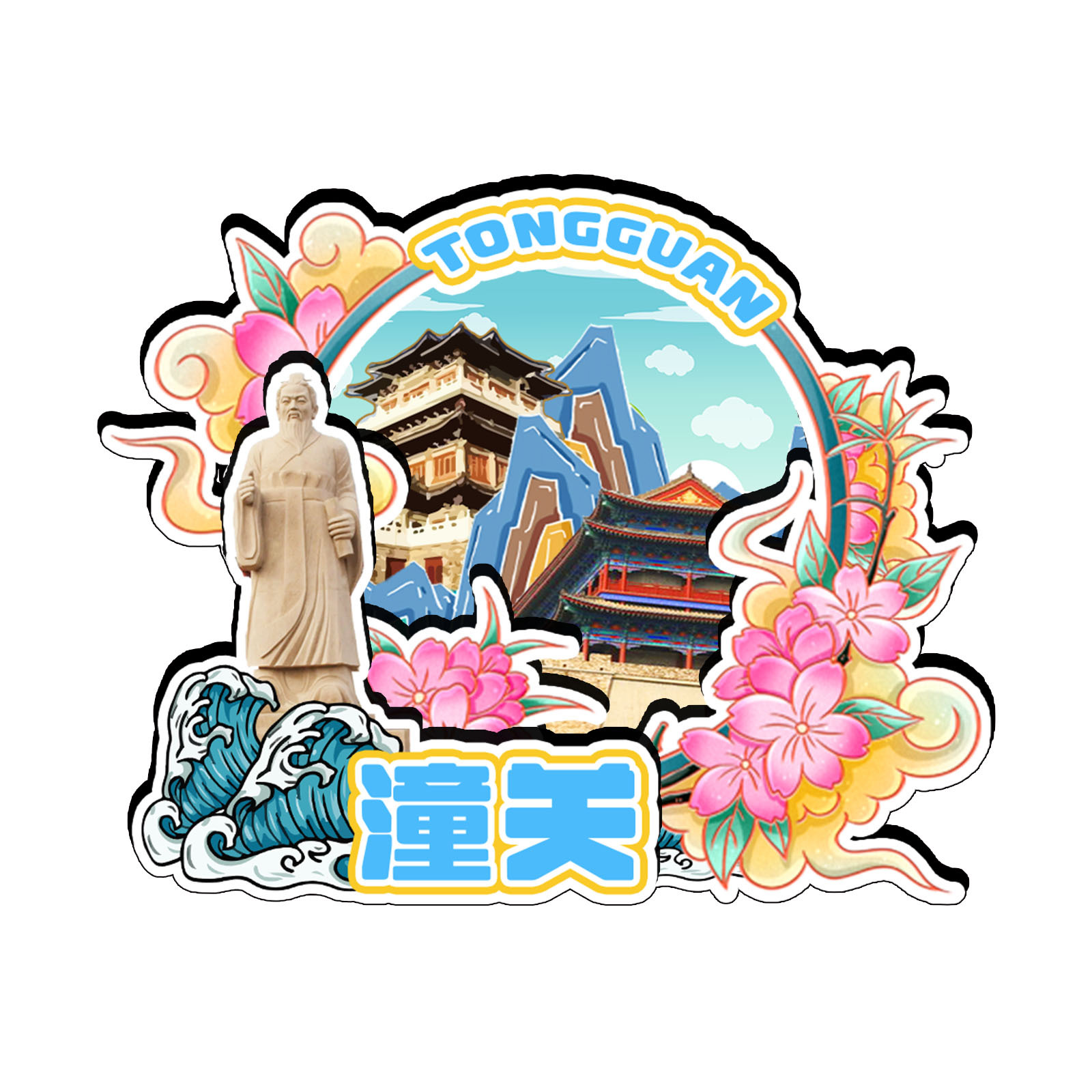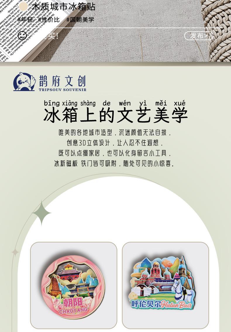原创陕西潼关古城岳渎古渡坊水坡巷冰箱贴纪念品木质文创礼赠工艺