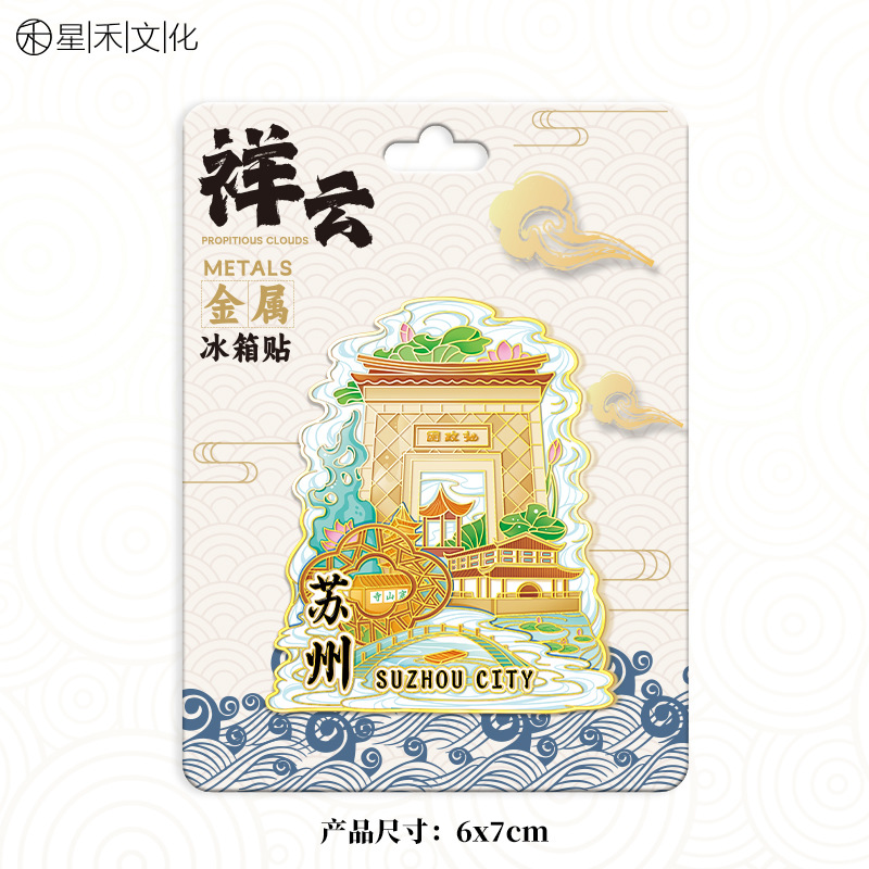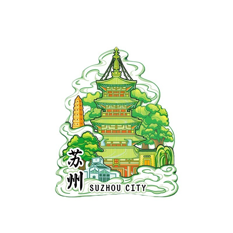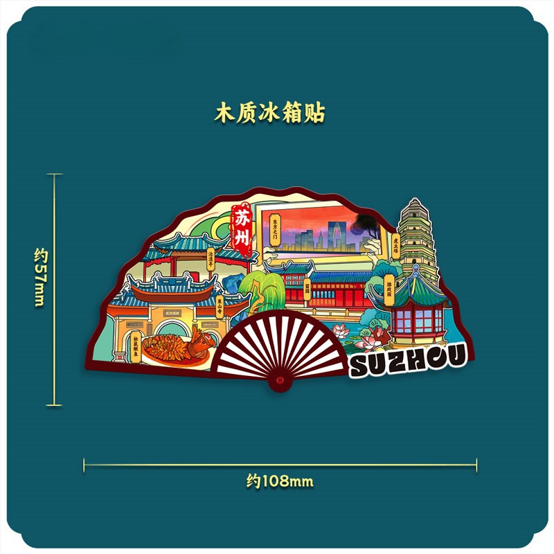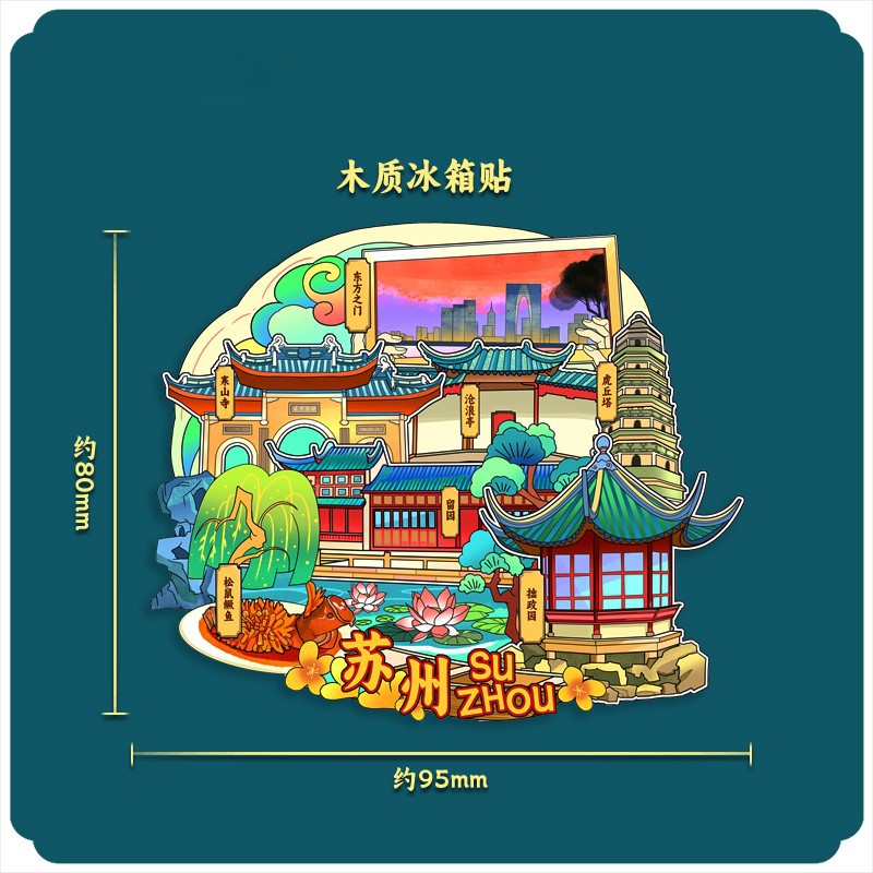 江苏苏州寒山寺木质文创磁吸创意立体旅游纪念地标建筑城市冰箱贴