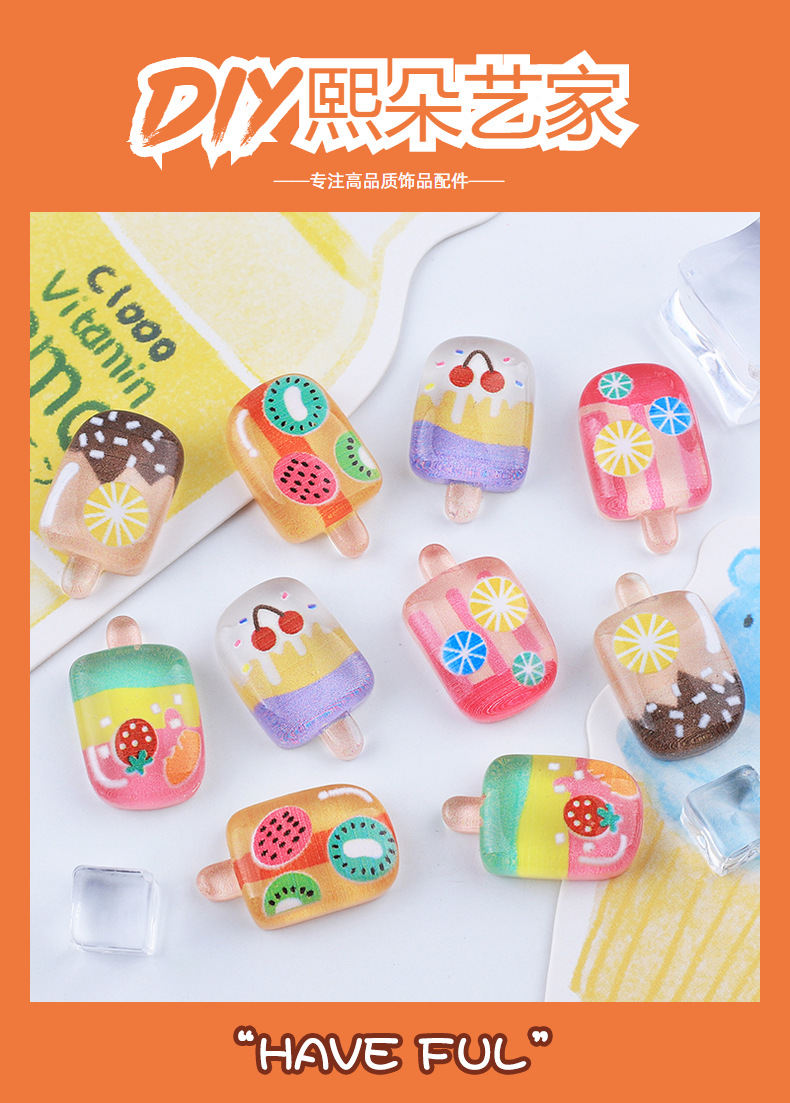 冰透水果冰淇淋 diy奶油胶自制手机壳冰箱贴发夹饰品树脂配件批发