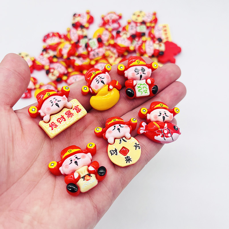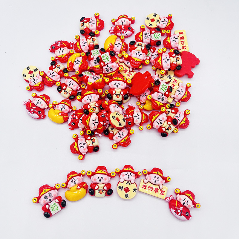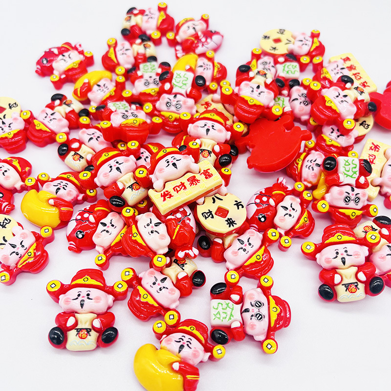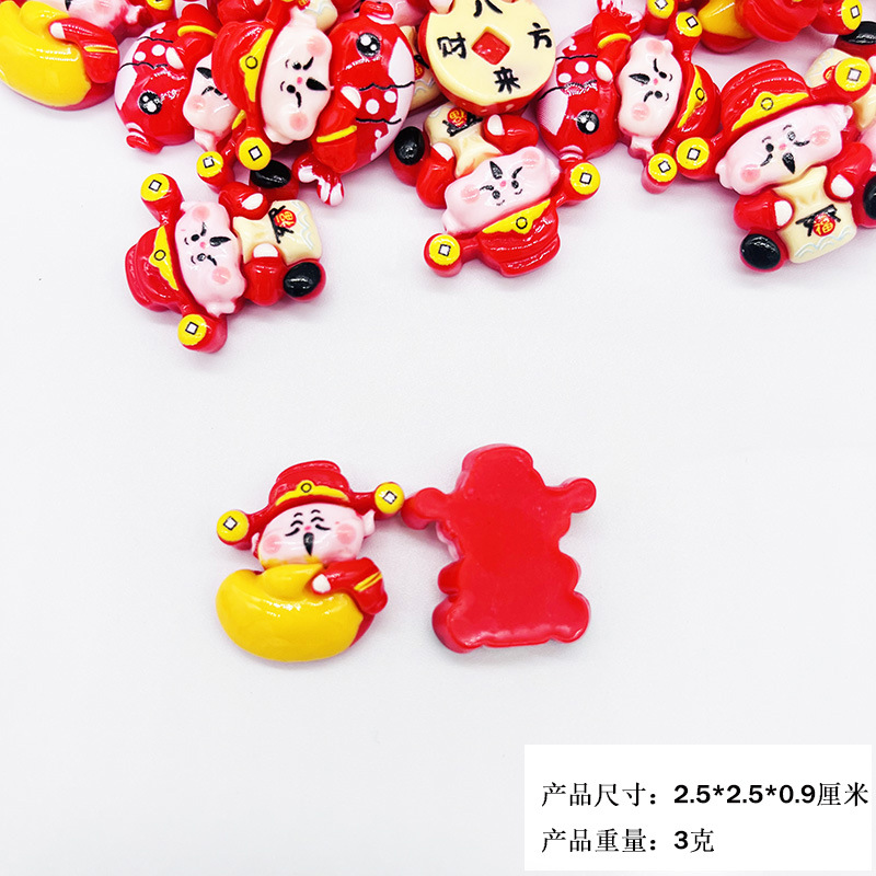 新年财神爷树脂小配件 diy发饰发夹冰箱贴钥匙扣车载饰装饰