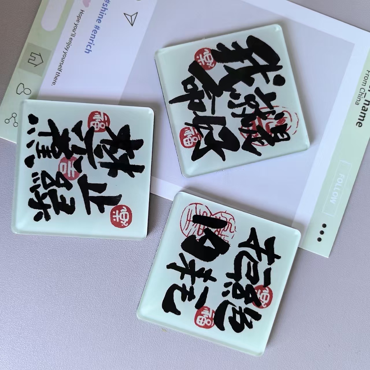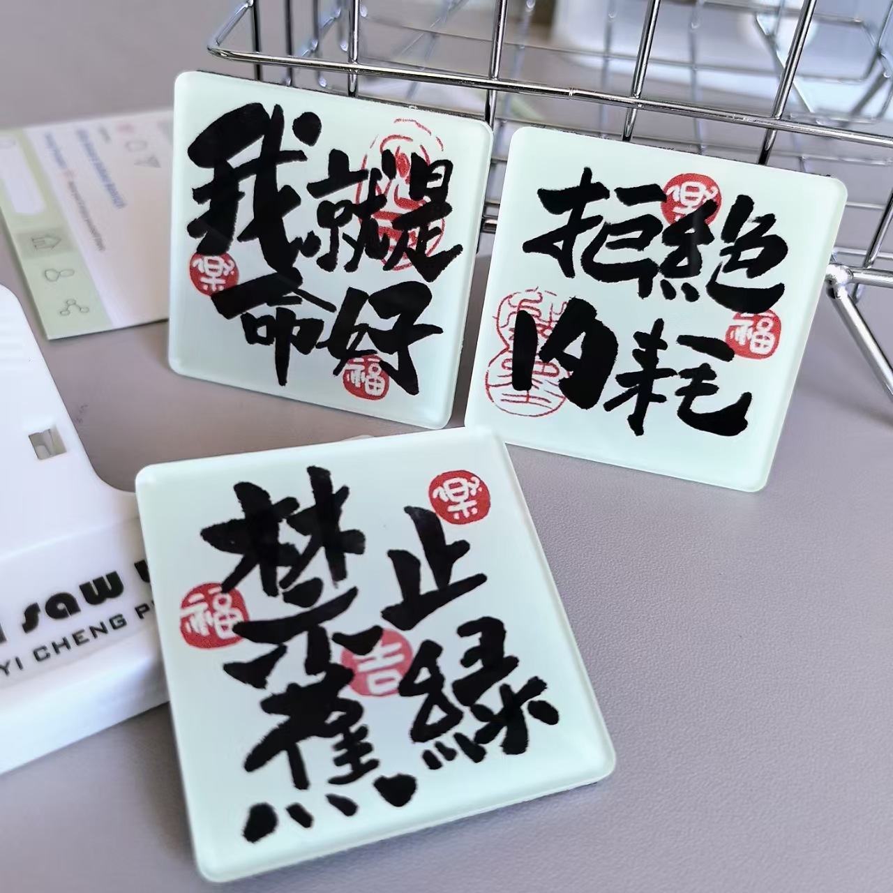 亚马逊新款磁吸亚克力ins风励志文字创意软磁冰箱贴手工DIY正方形