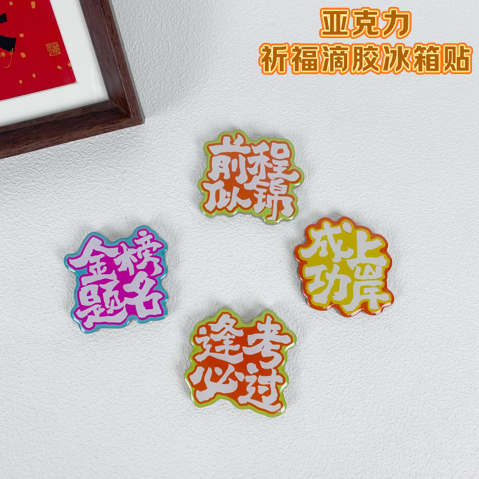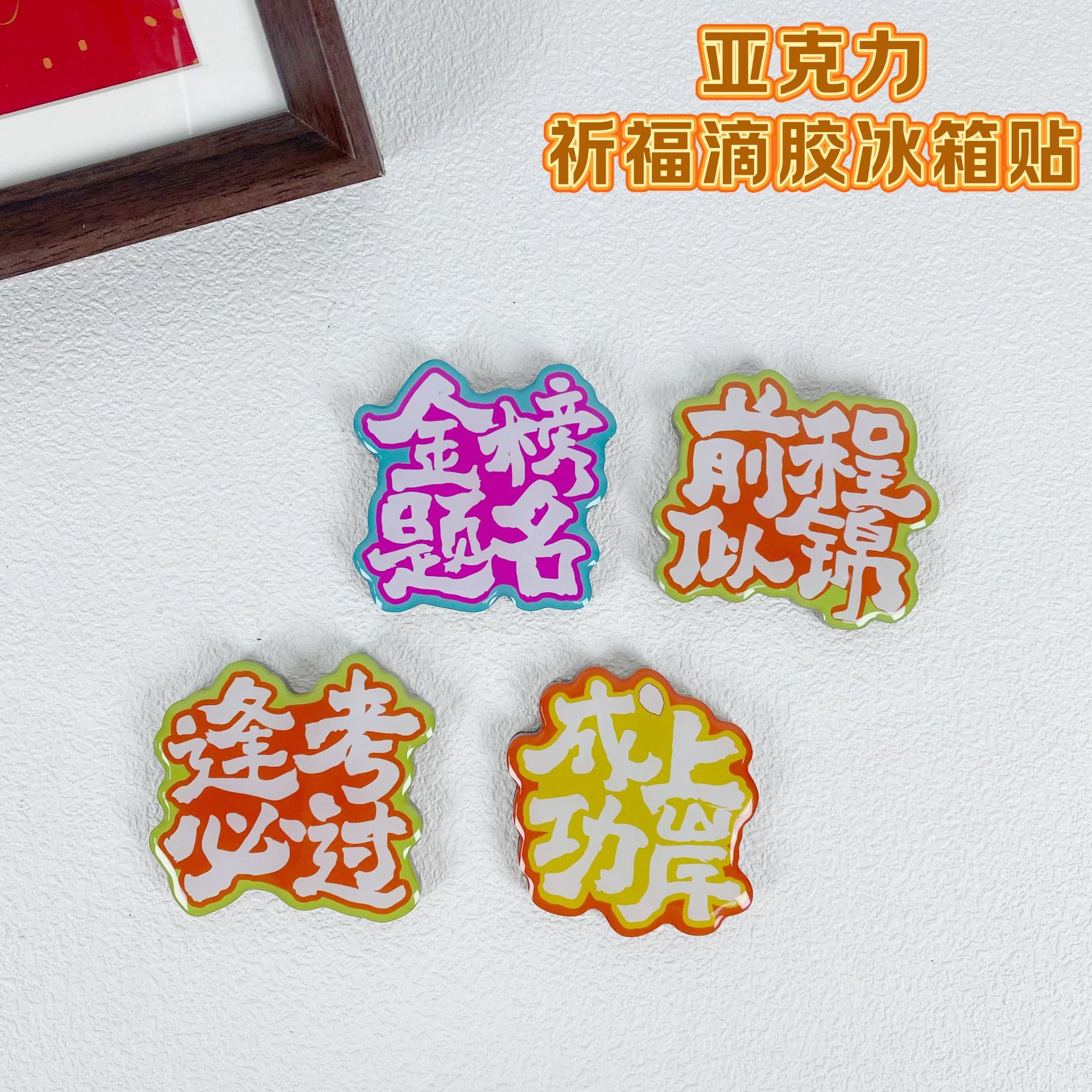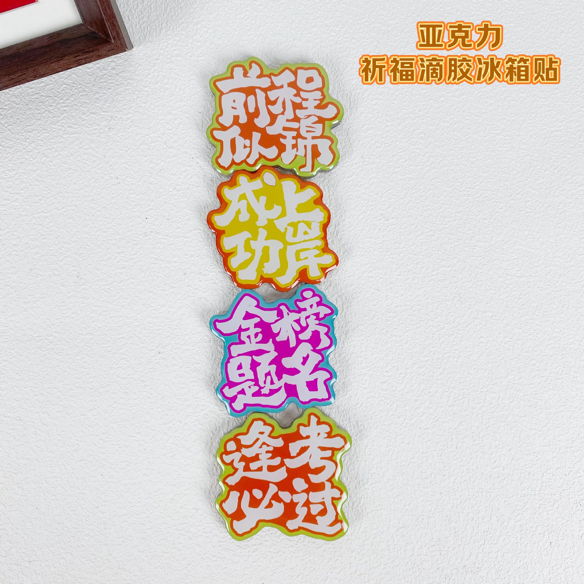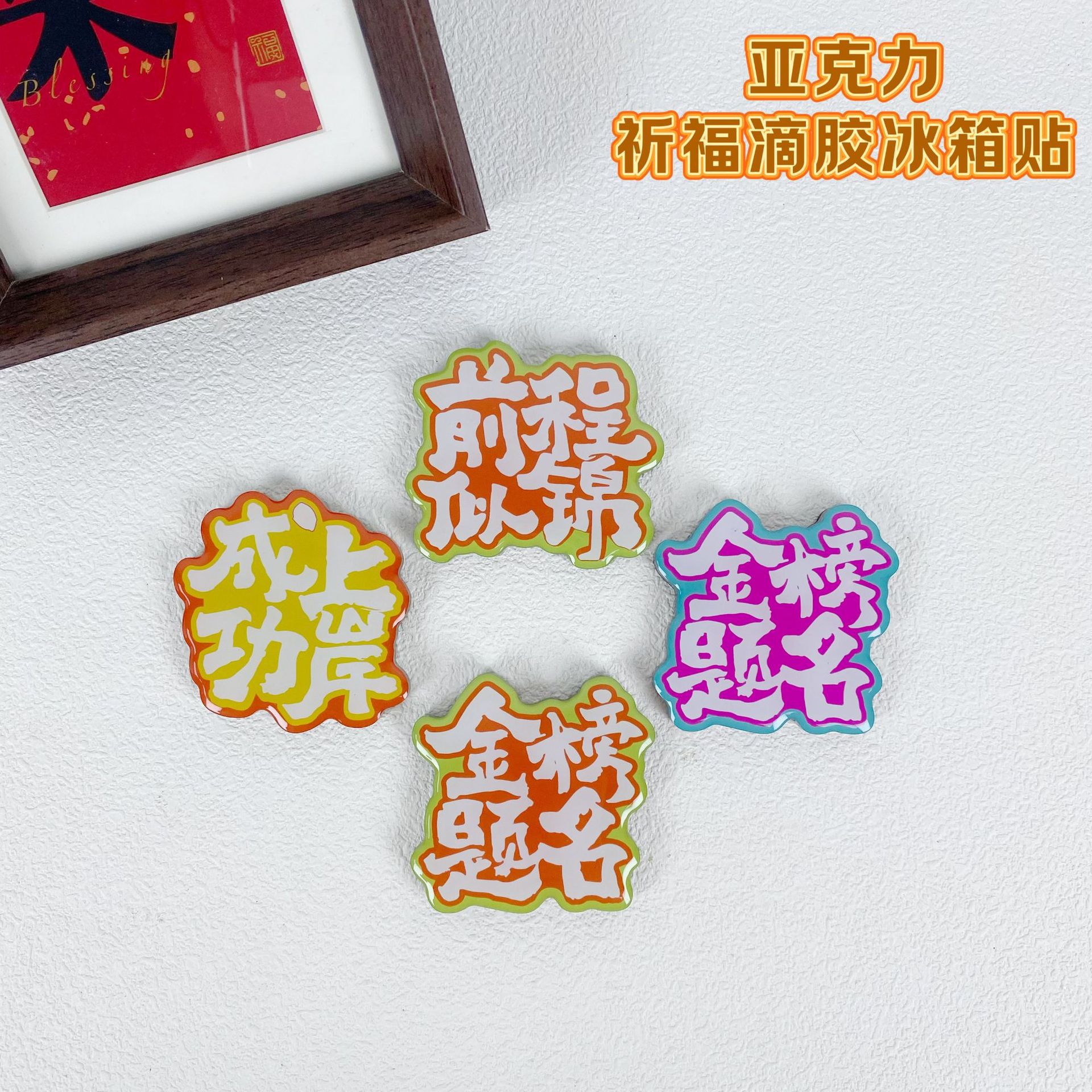 祈福系列亚克力冰箱贴四字祝福软磁滴胶金榜题名成功上岸定制款