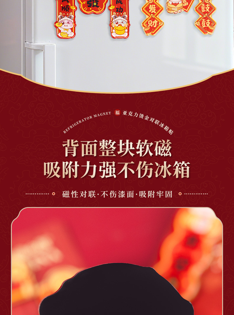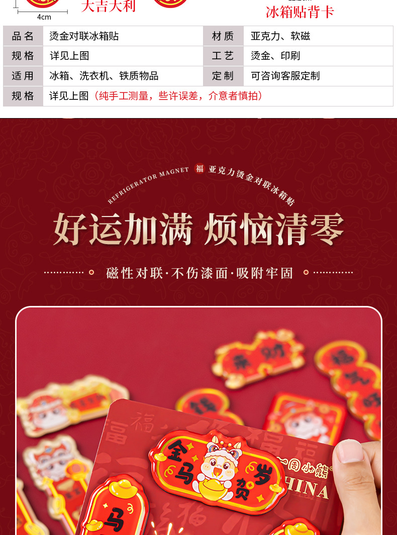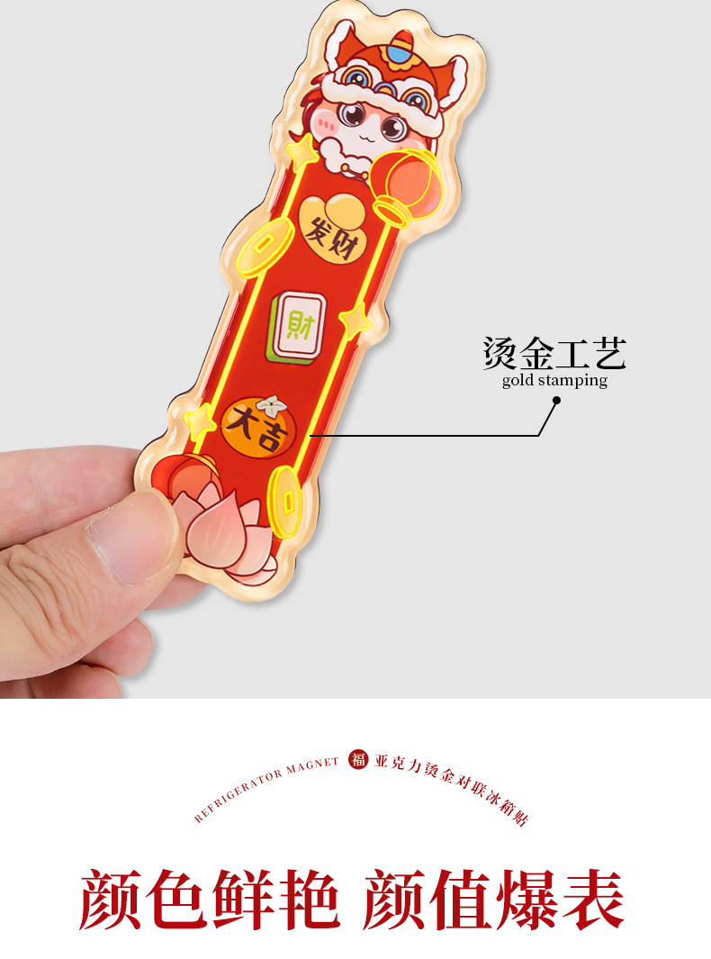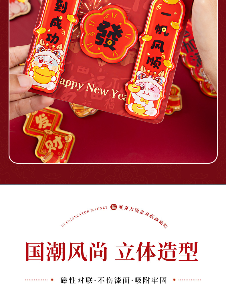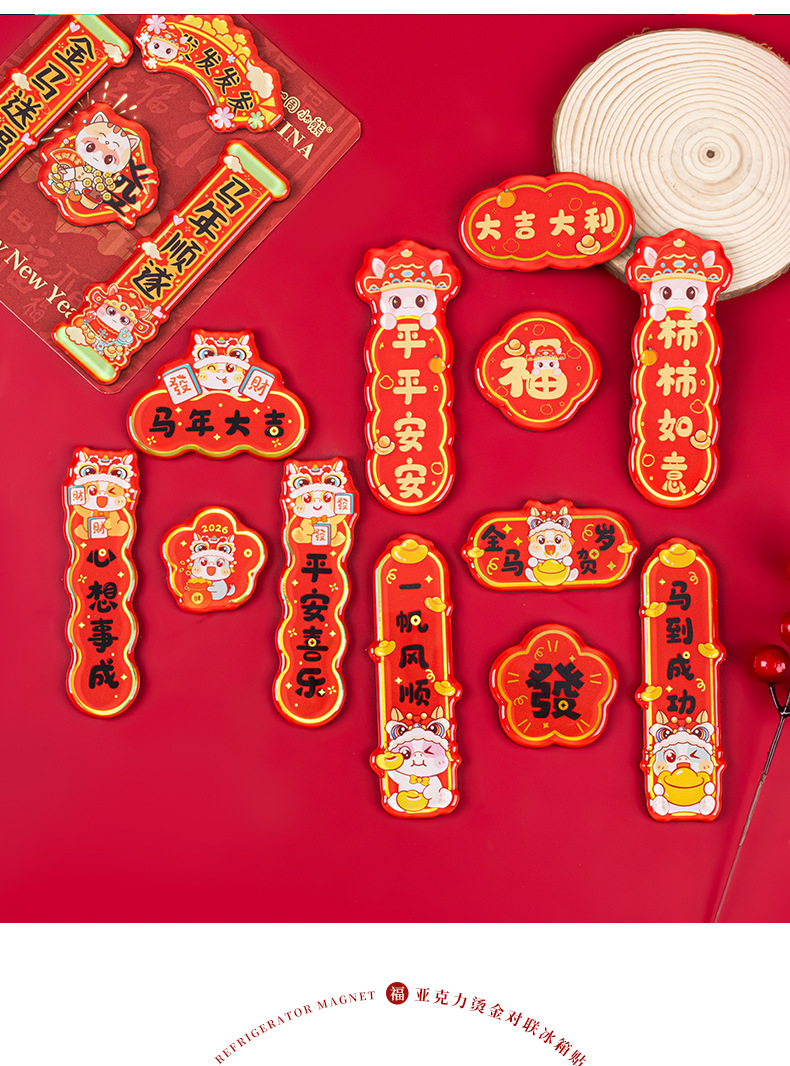 2026马年对联冰箱贴定制春节烫金国潮cnc精雕亚克力冰箱贴软磁贴
