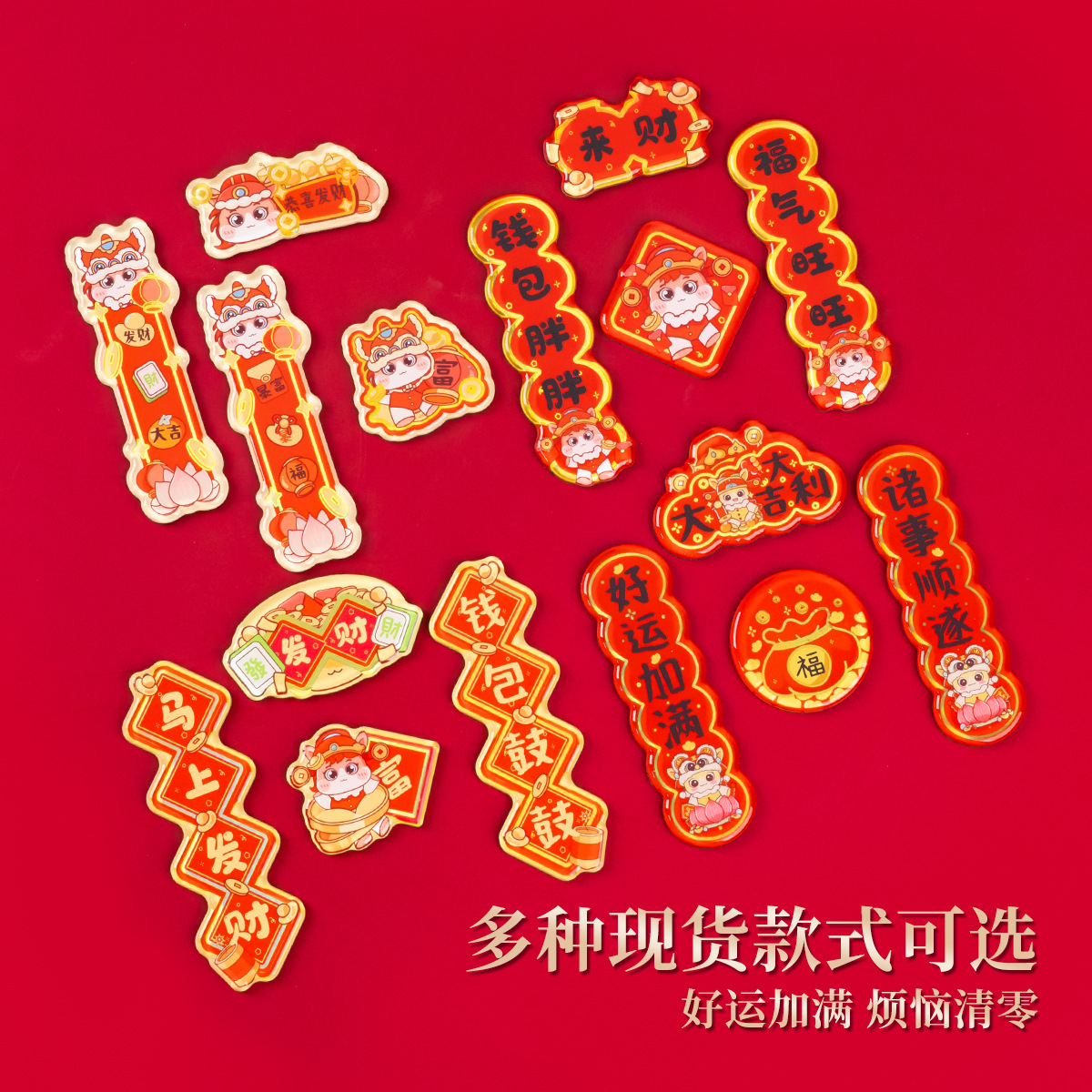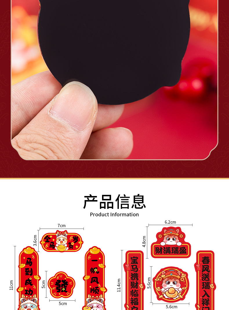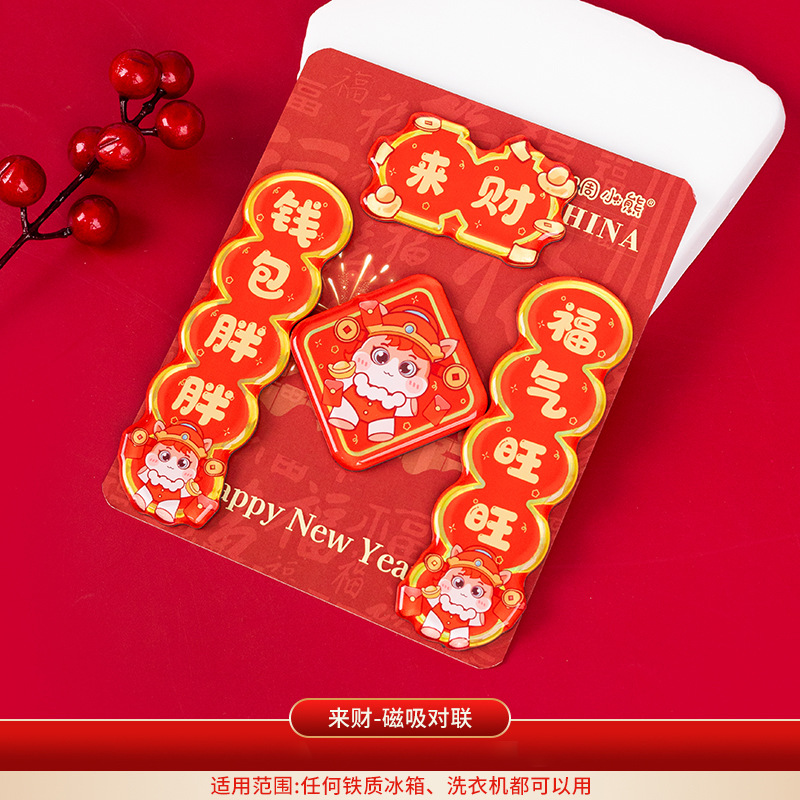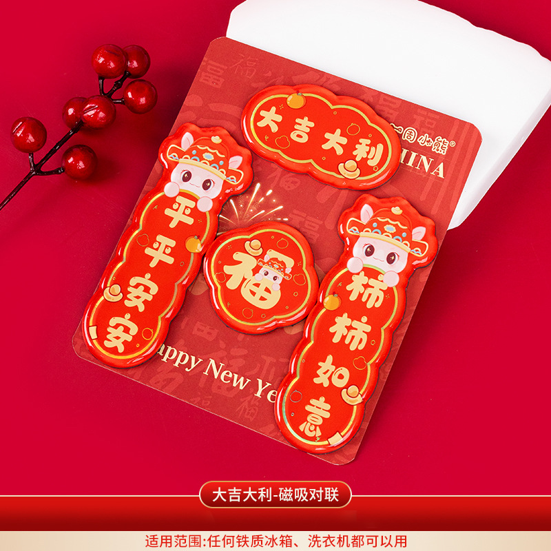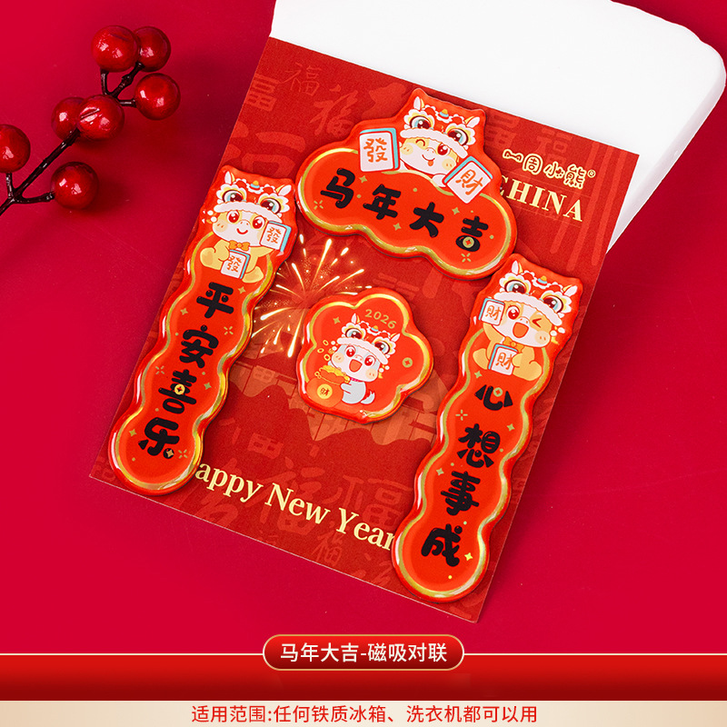 2026马年对联冰箱贴定制春节烫金国潮cnc精雕亚克力冰箱贴软磁贴