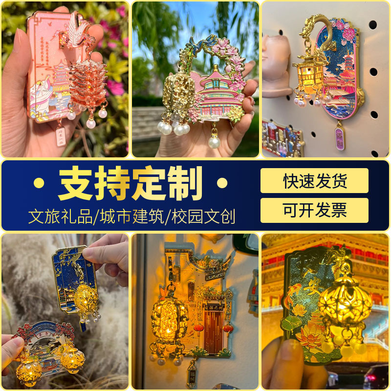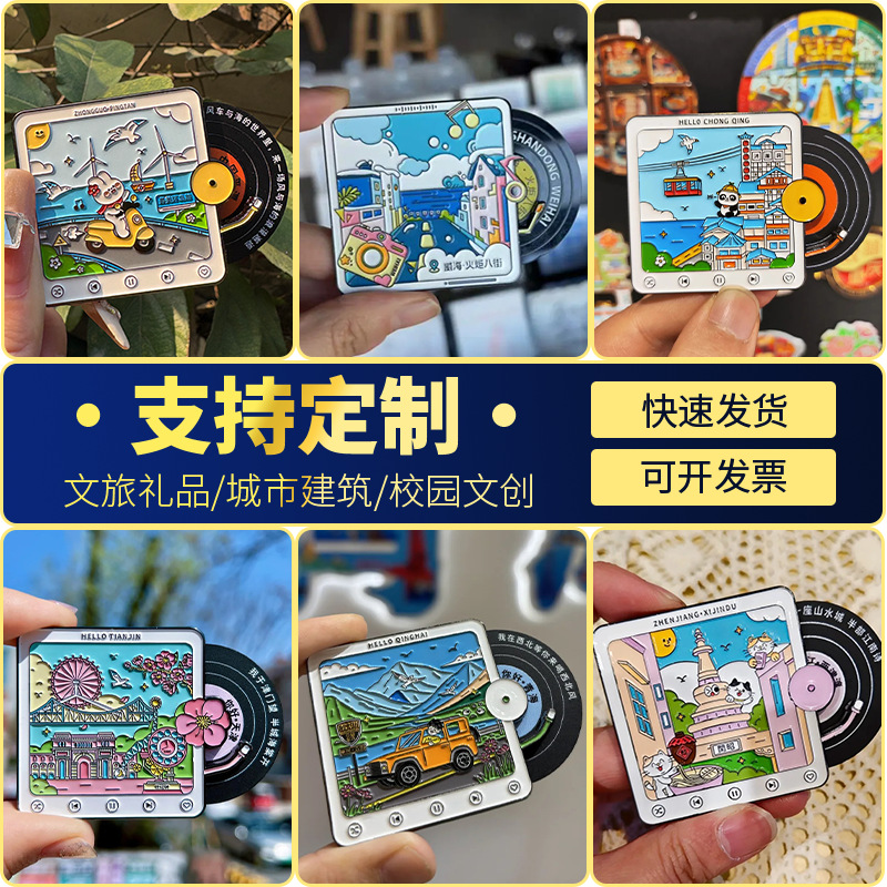 磁吸金属冰箱贴中国城市故宫文创小礼品diy创意高级感唱片定制